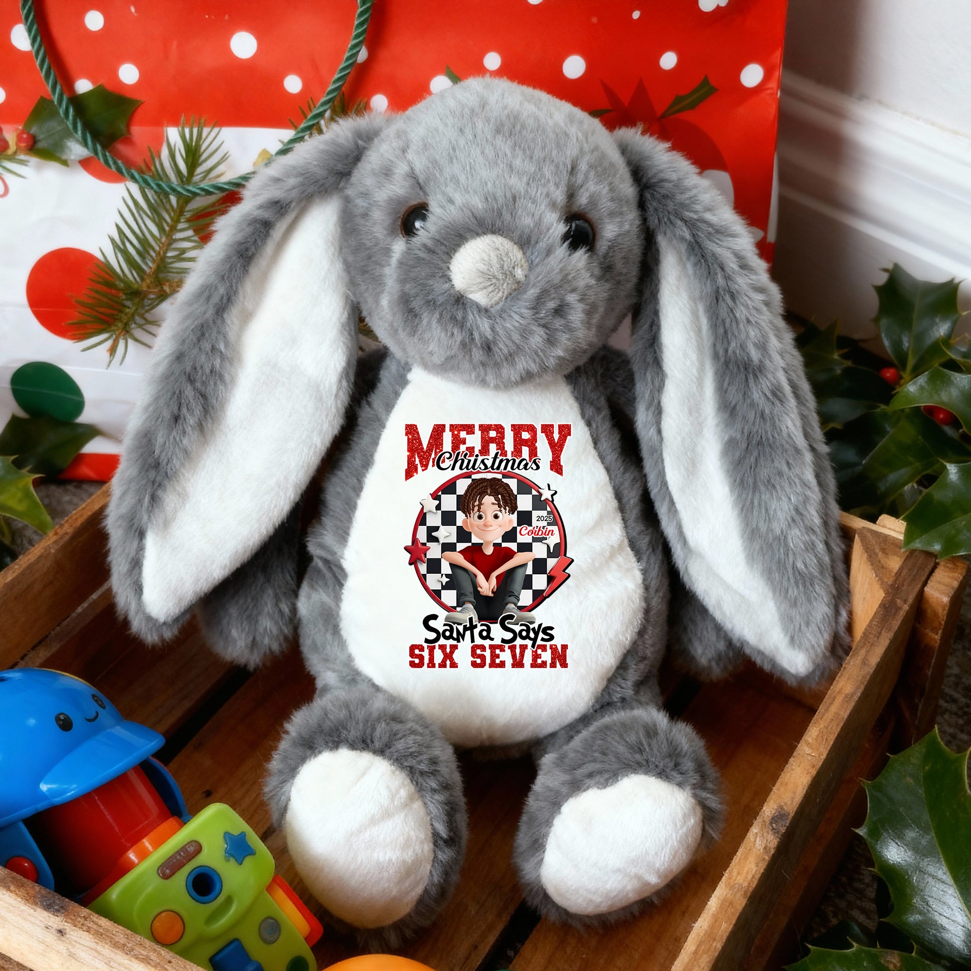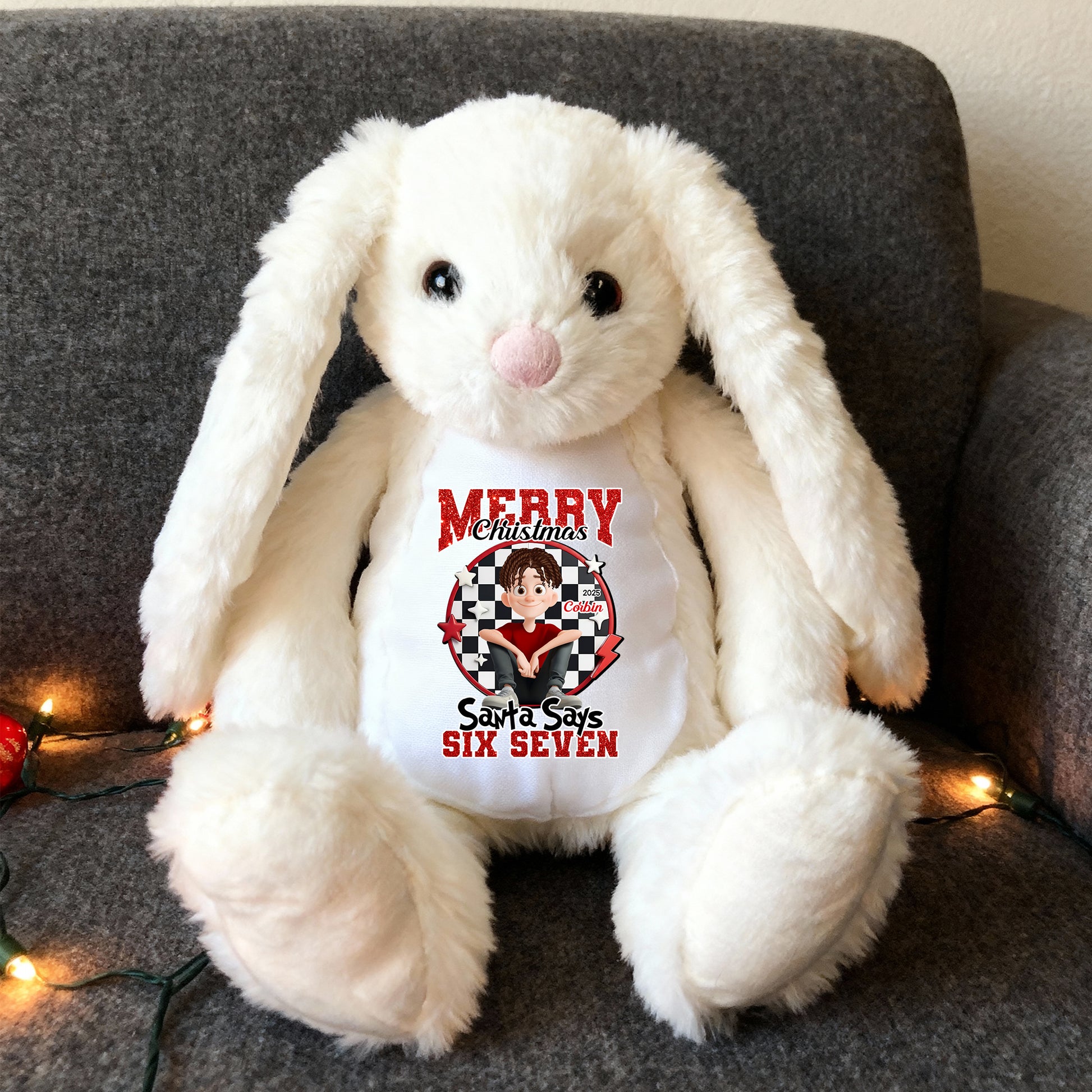 67 Santa Says Merry Christmas - Plush Stuffed Bunny Rabbit for Easter Christmas Birthday