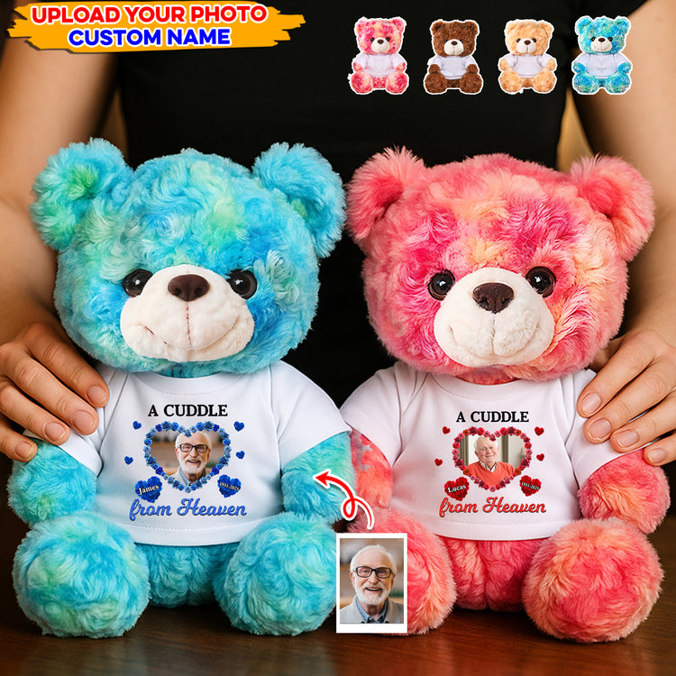 Keep the memory of a loved one close with this soft, customizable teddy bear. Add a photo, name, and dates to create a comforting keepsake that brings a little "cuddle from heaven" to anyone who needs it.
