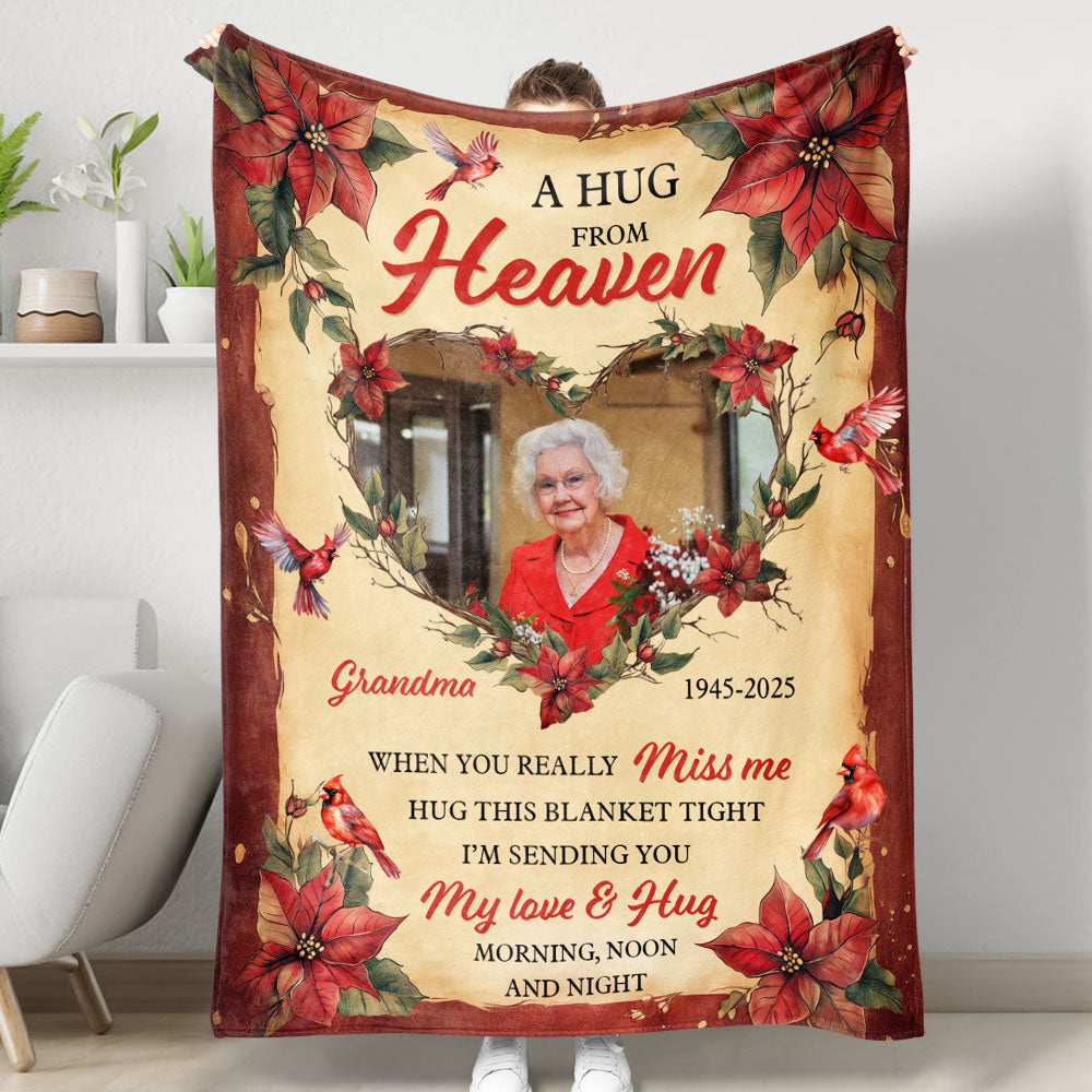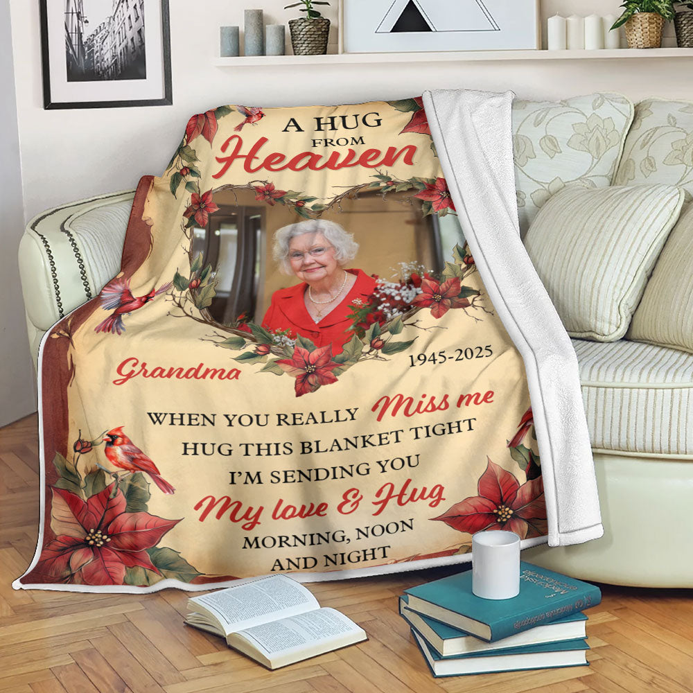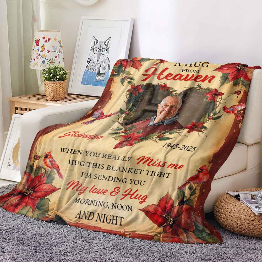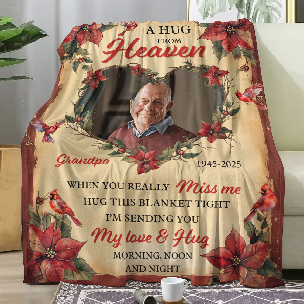 A Hug From Heaven Cardinal Flower - Memorial Personalized Custom Blanket - Sympathy Gift