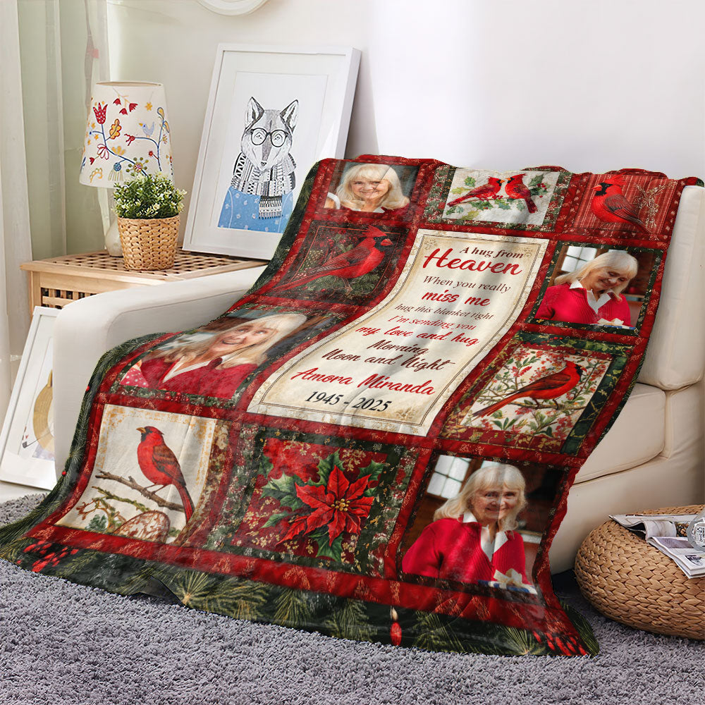A Hug From Heaven Cardinal - Memorial Personalized Custom Blanket - Sympathy Gift