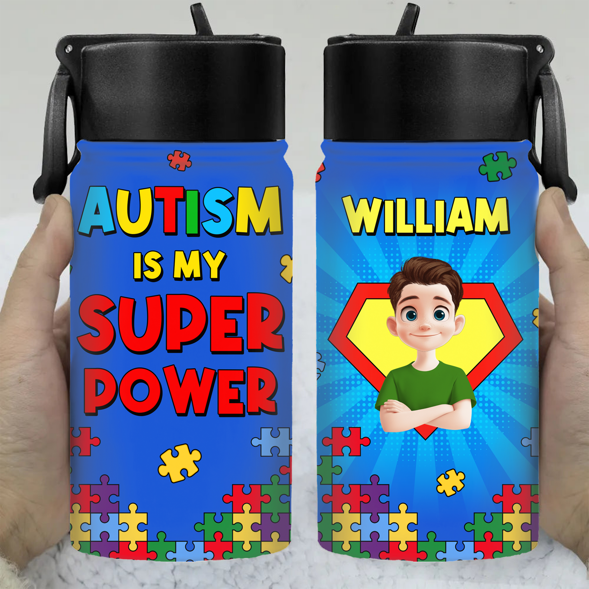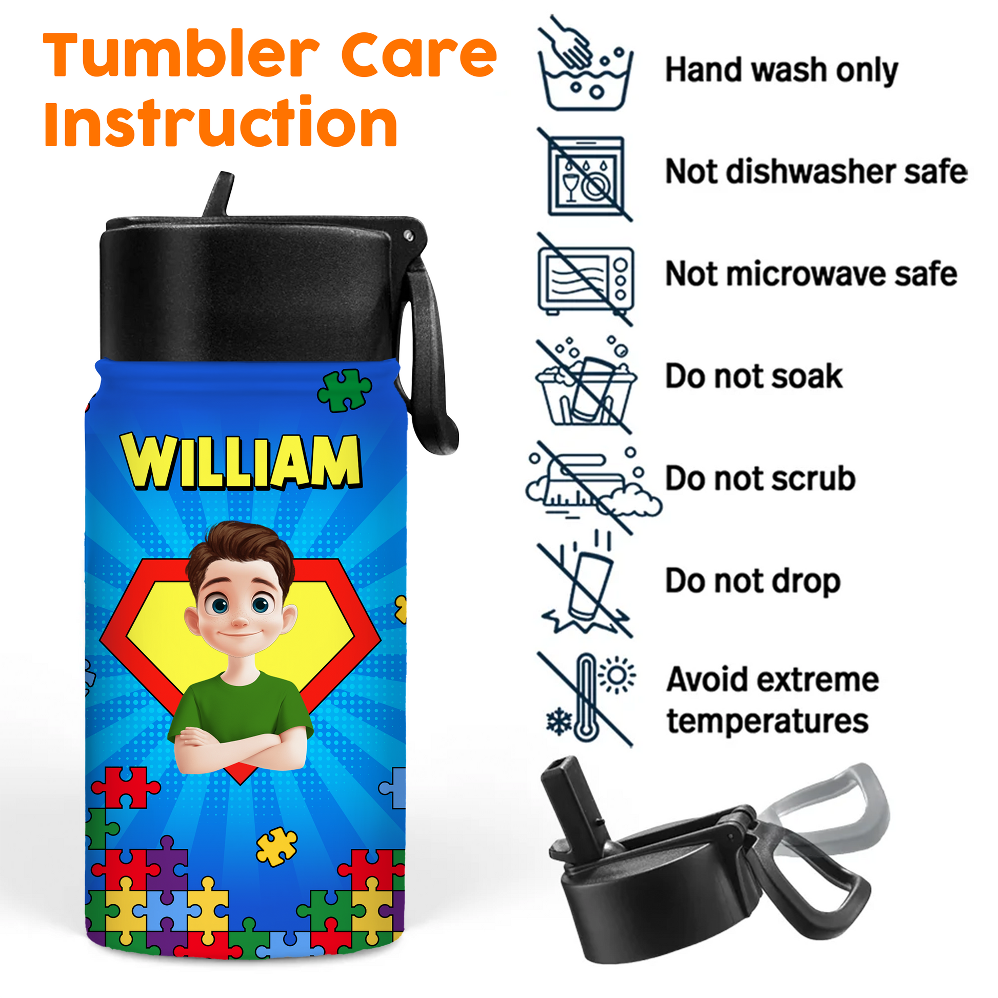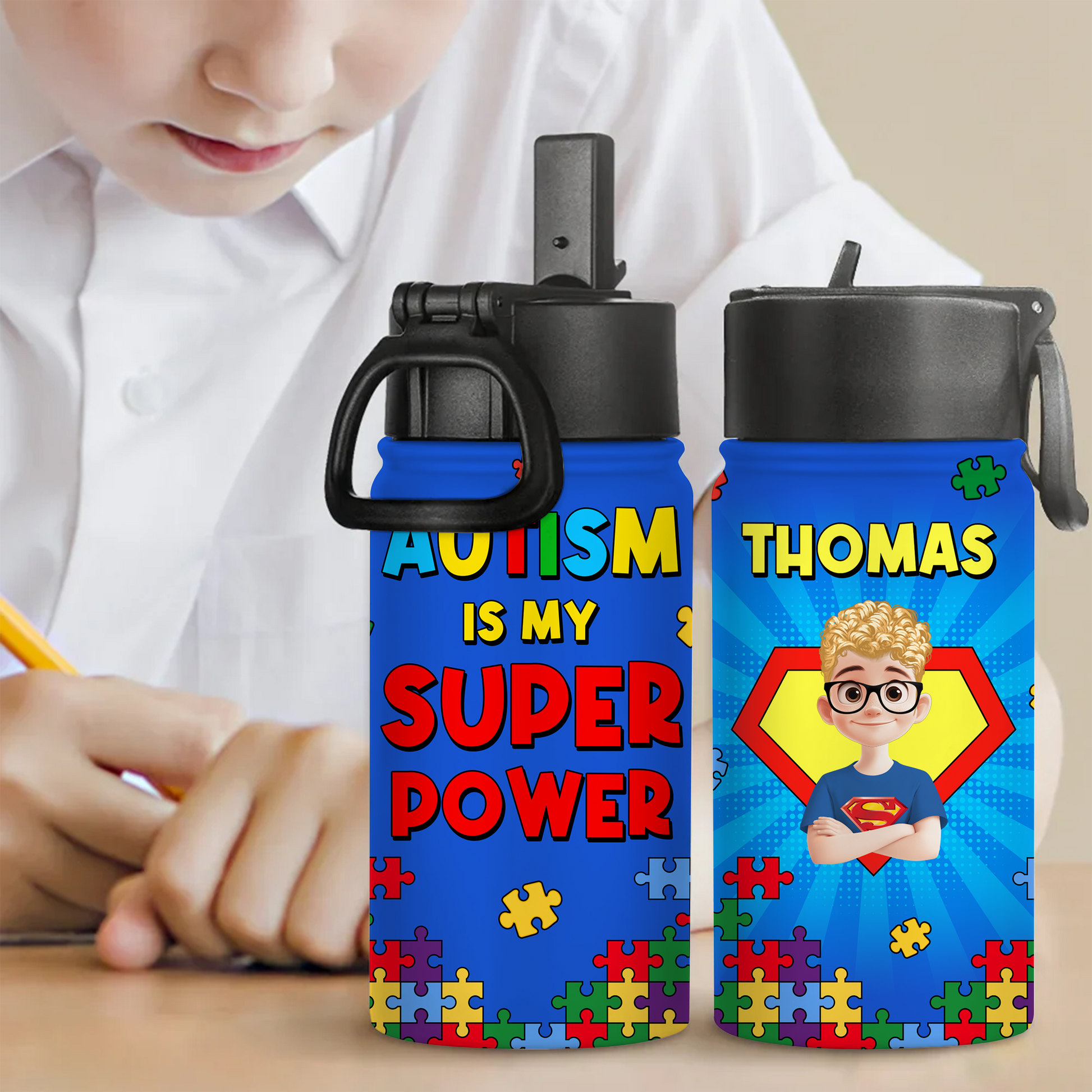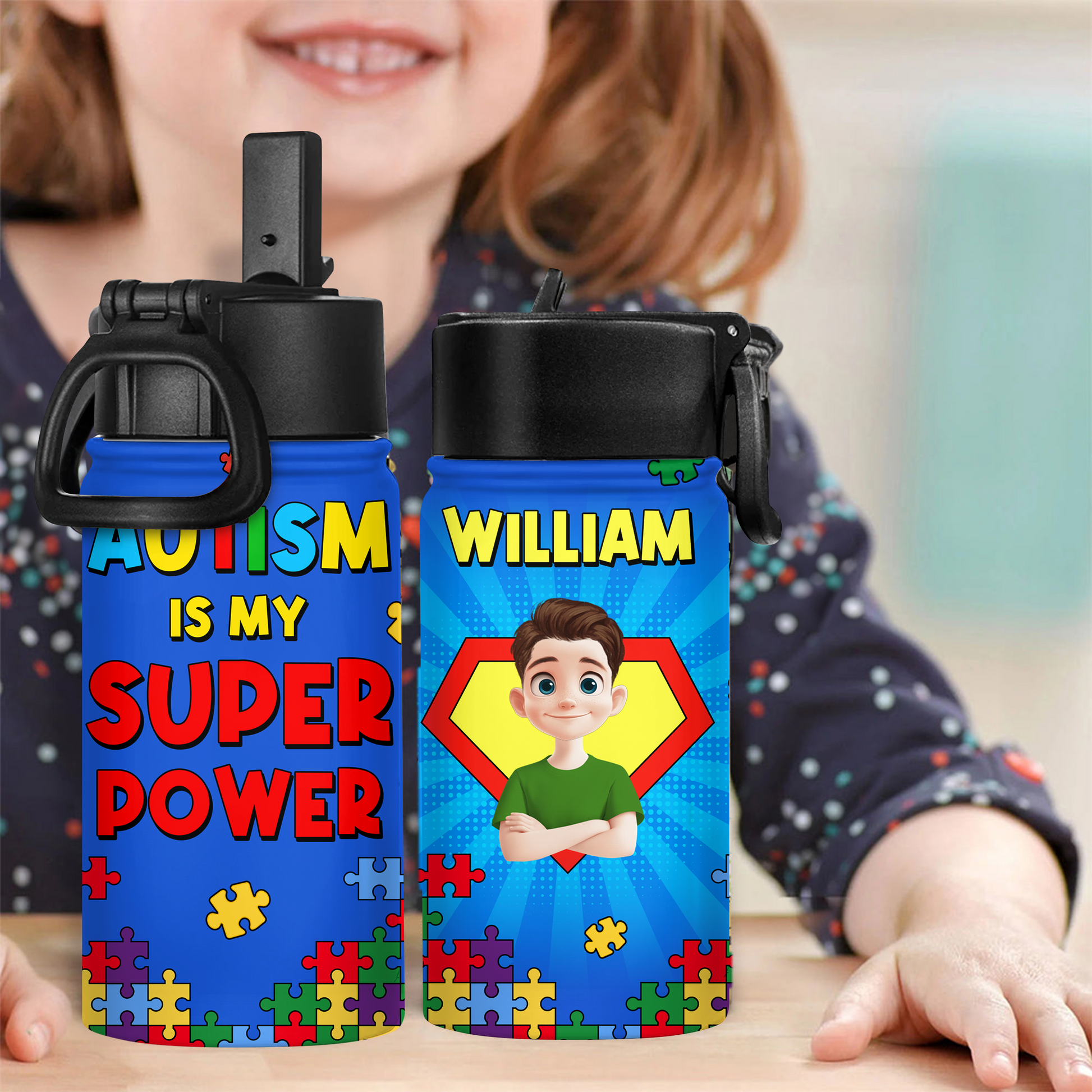 Bottle Kids Cups with Name - Back to School Water Bottle With Straw Lid - 12 oz Stainless Steel