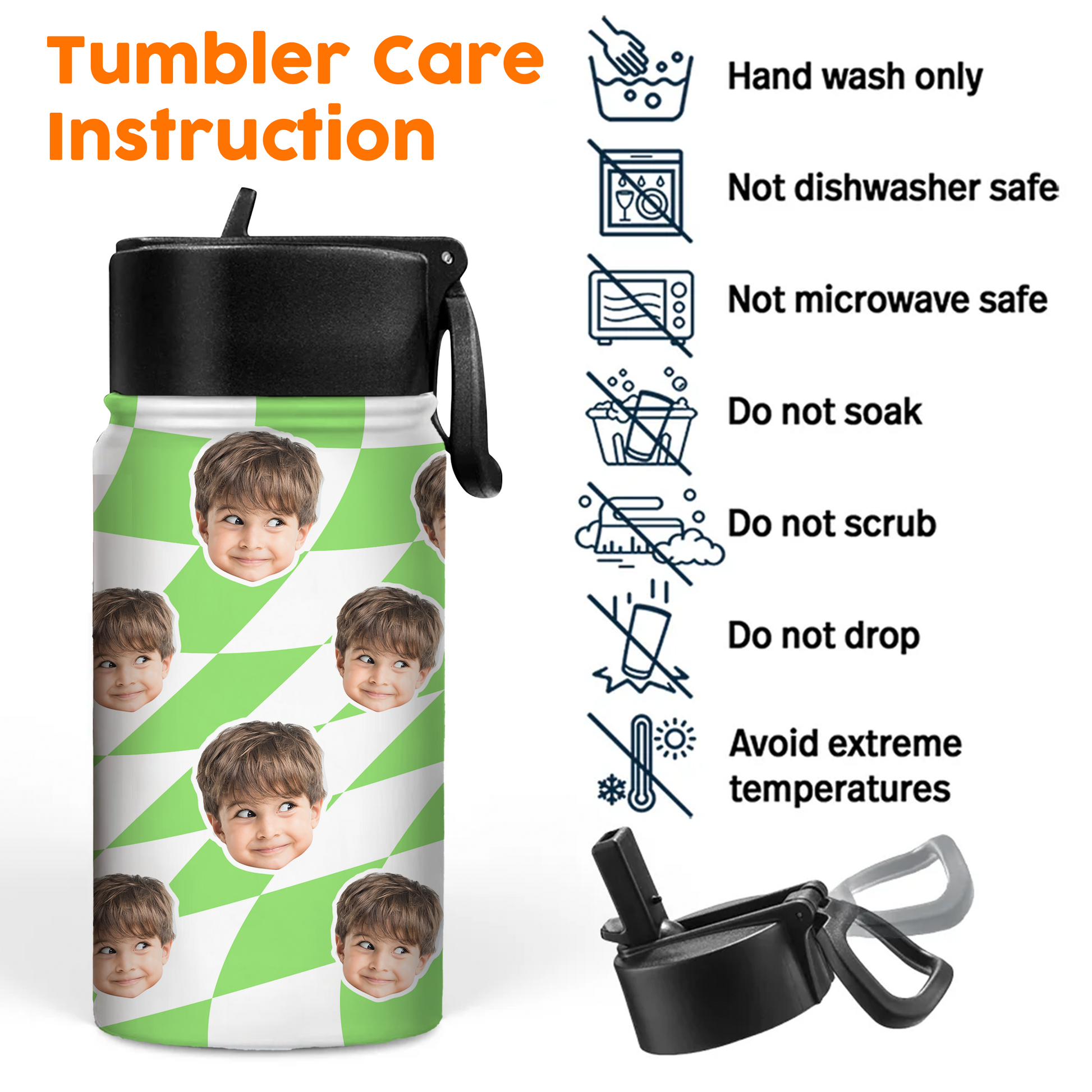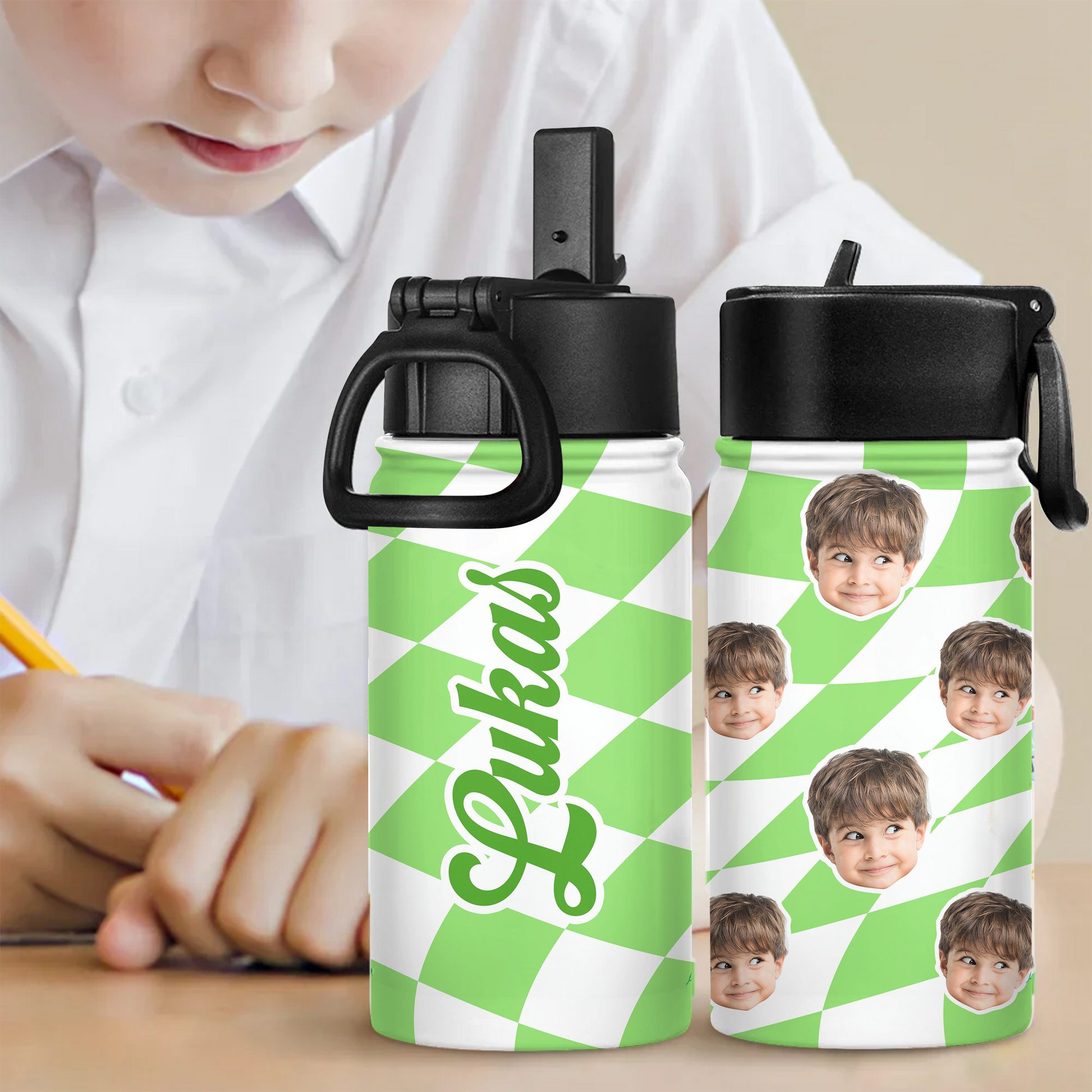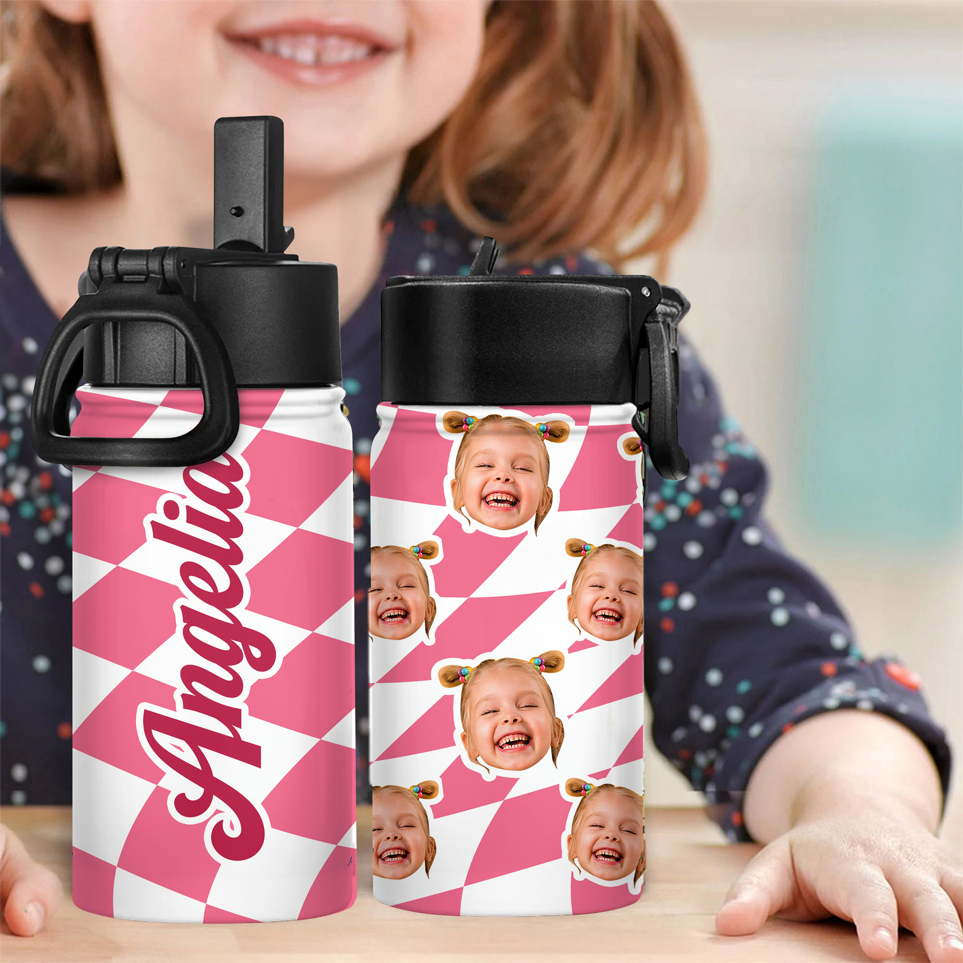 Bottle Kids Cups With Name Color - Back to School Water Bottle With Straw Lid - 12 oz Stainless Steel