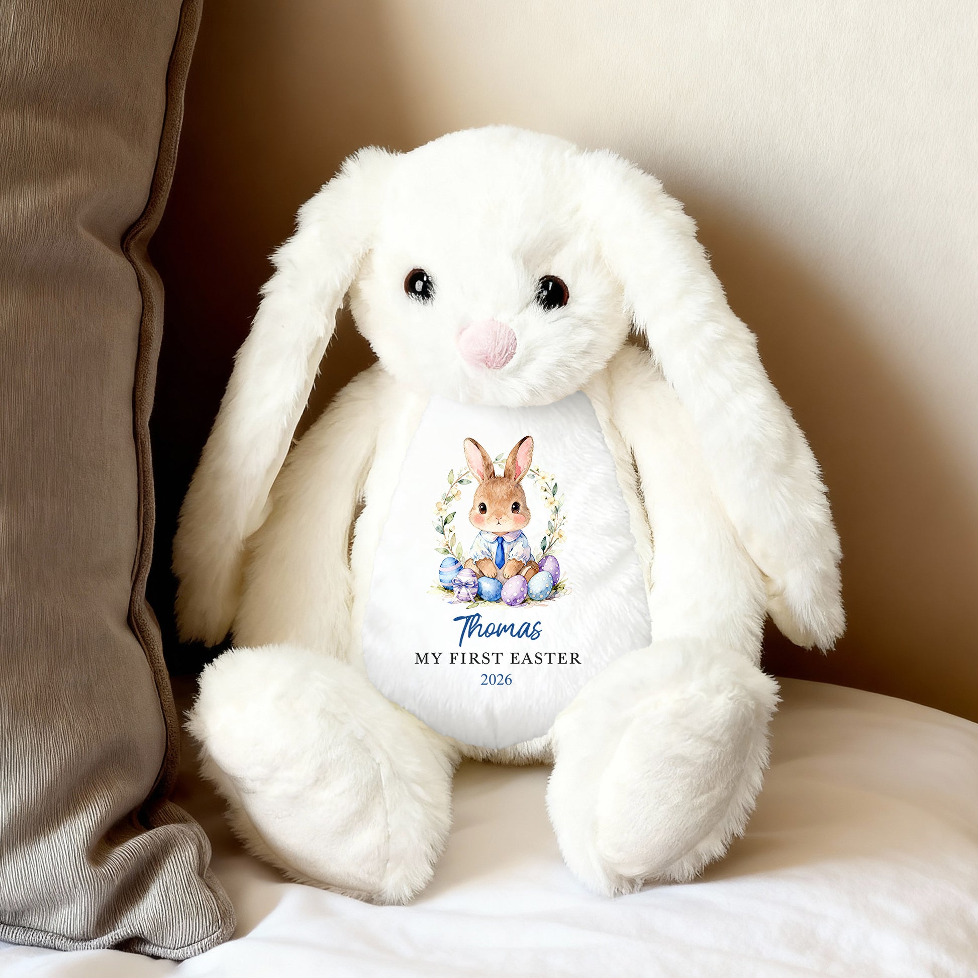 Make their Easter basket absolutely unforgettable. This incredibly soft, personalized bunny plush is ready to deliver "Bunny Kisses & Easter Wishes" to your little one.