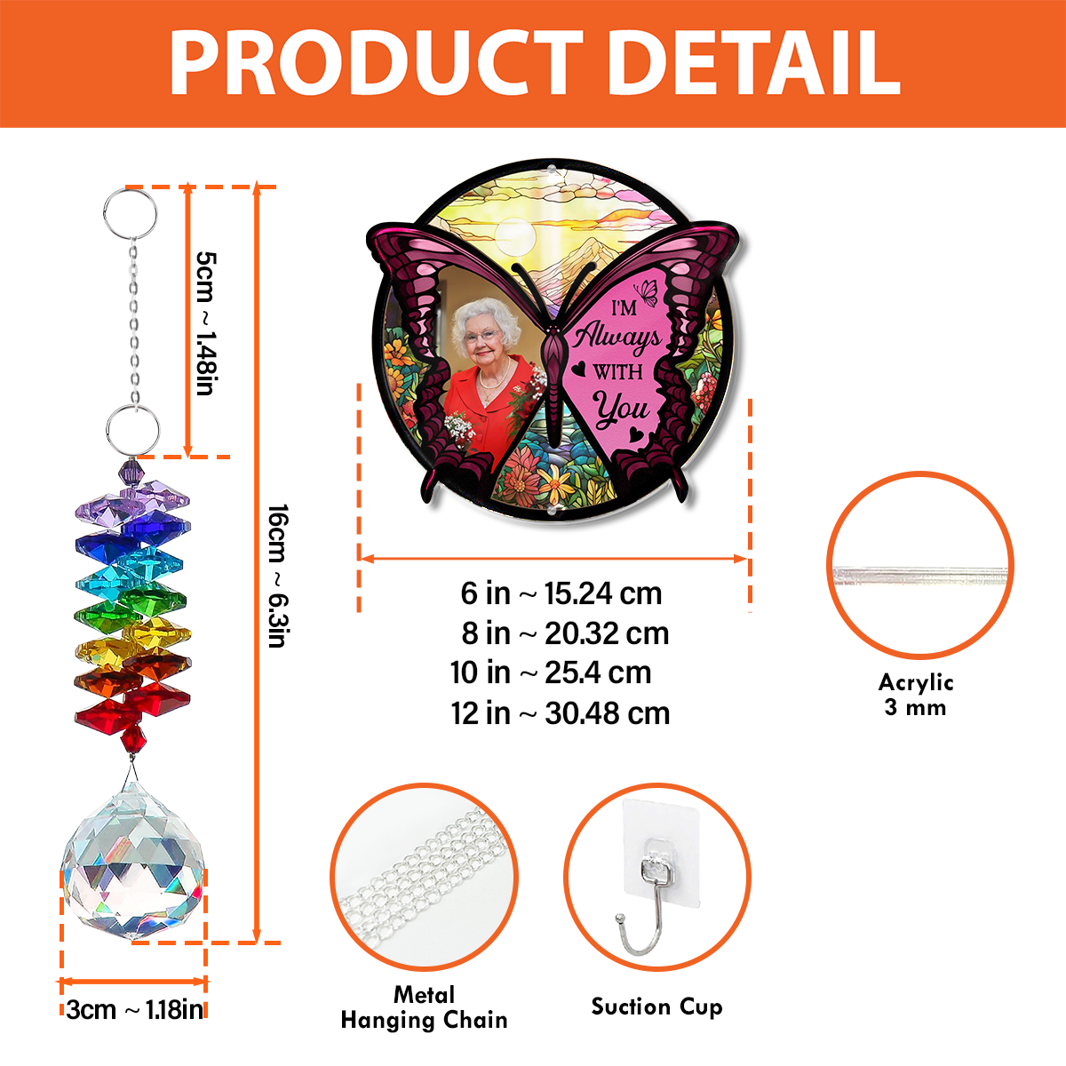 - Can be used as a memorial ornament, sun catcher, or decorative hanging piece in any indoor or outdoor space.