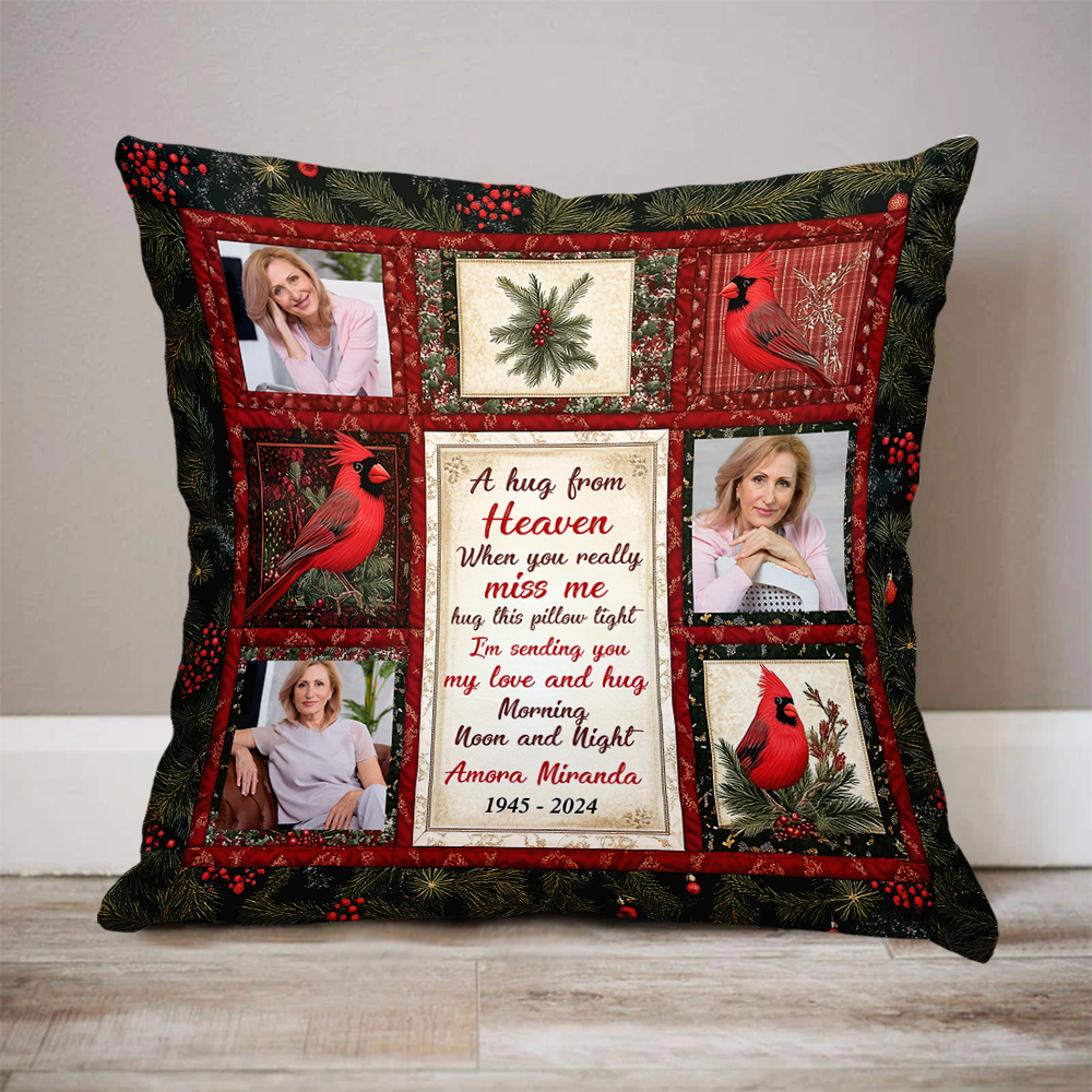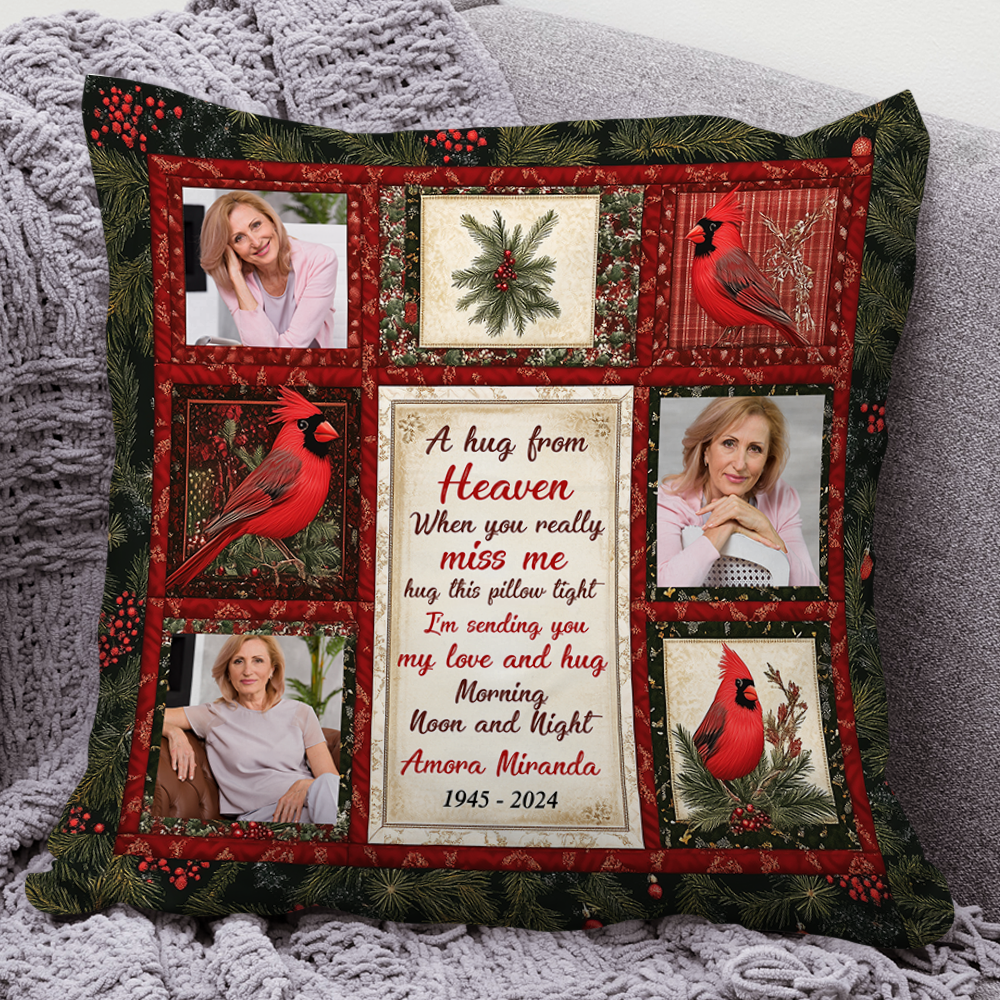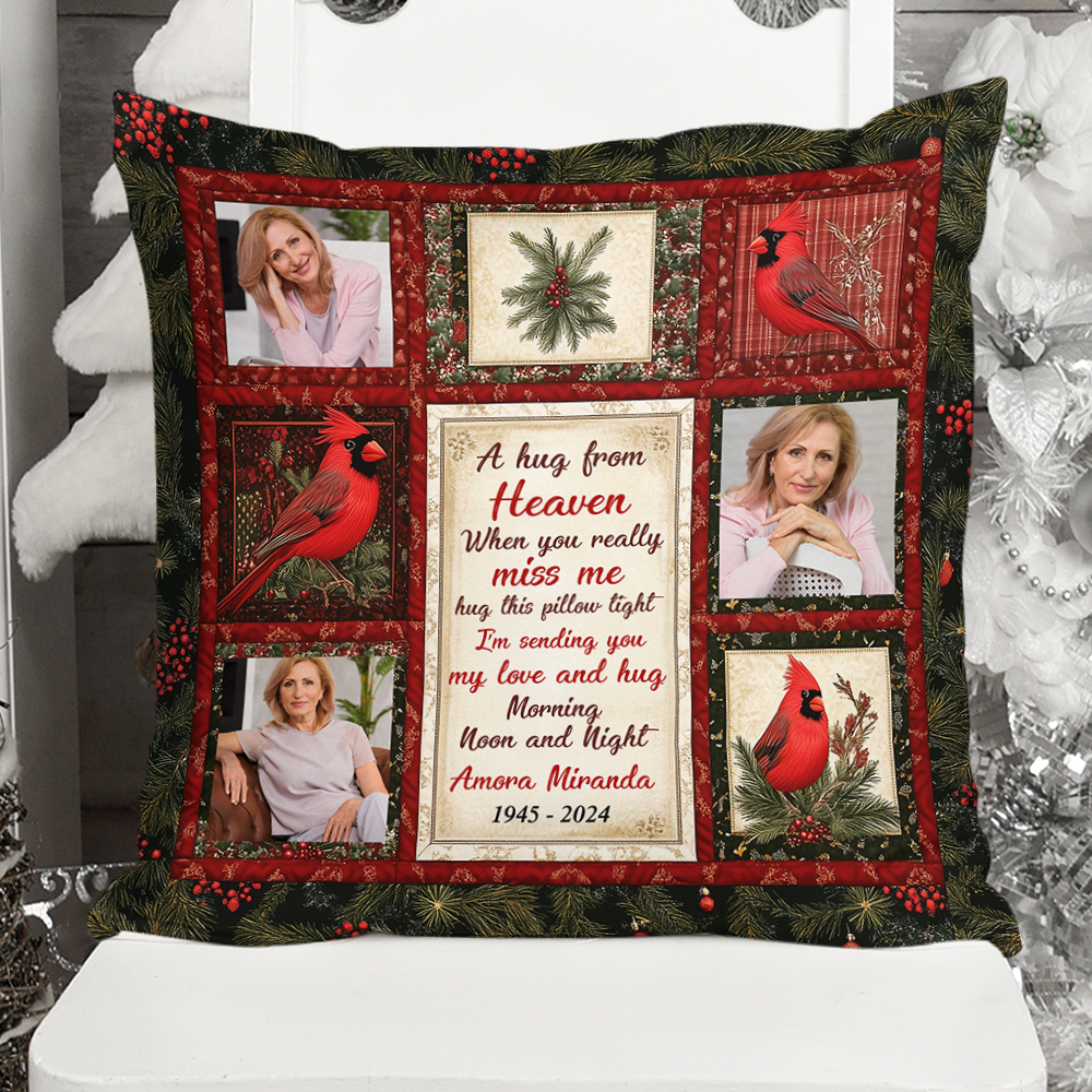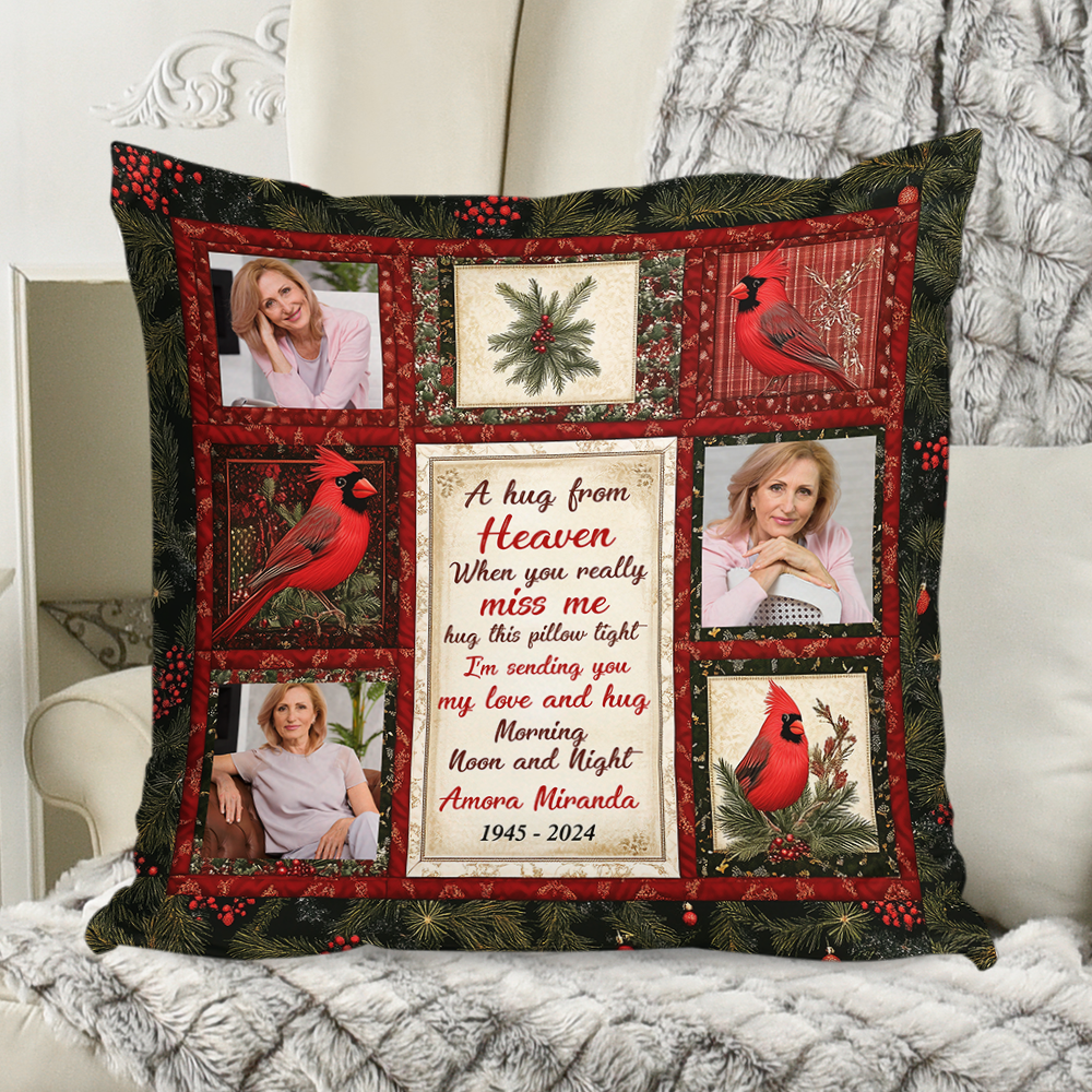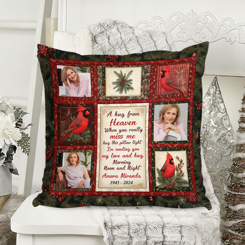Cardinal and Wreath Hug This Pillow - Memorial Personalized Custom Pillow - Sympathy Gift For Family Members