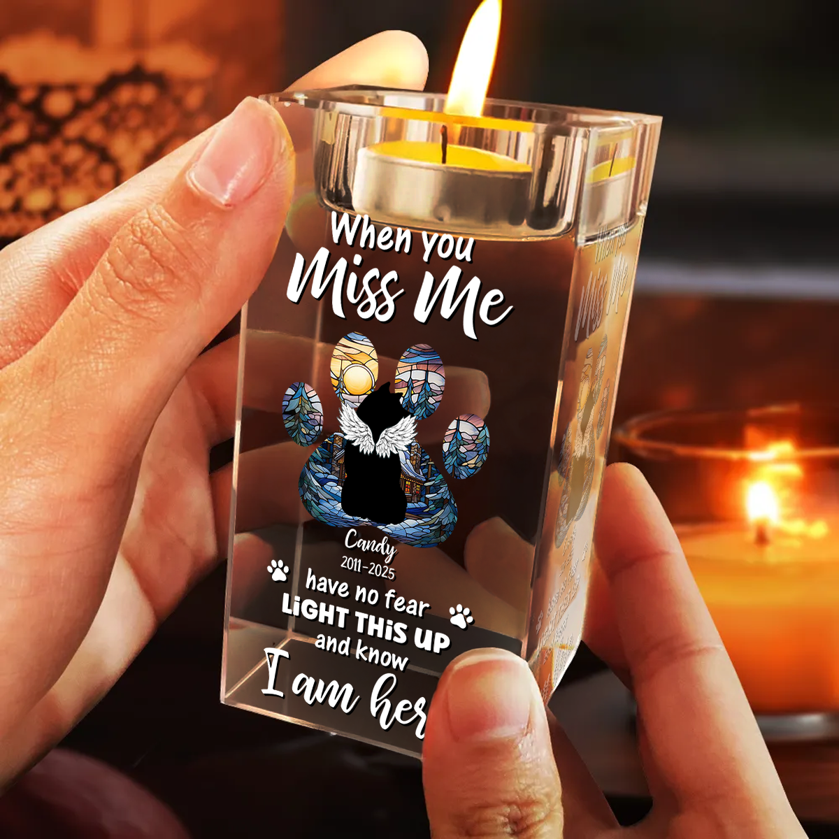Christmas Memorial Dog Loss Pet Paw - Personalized Crystal Candle Holder