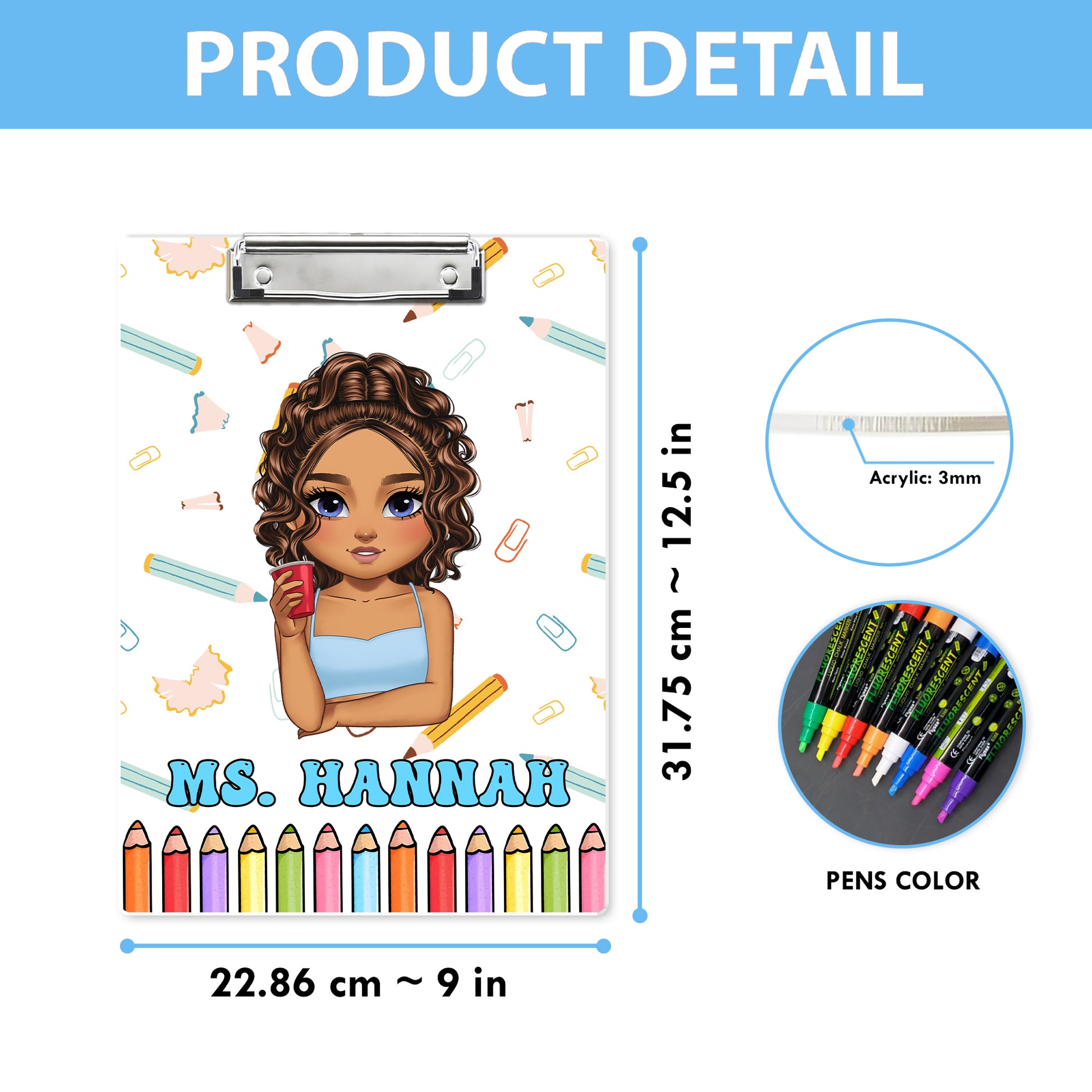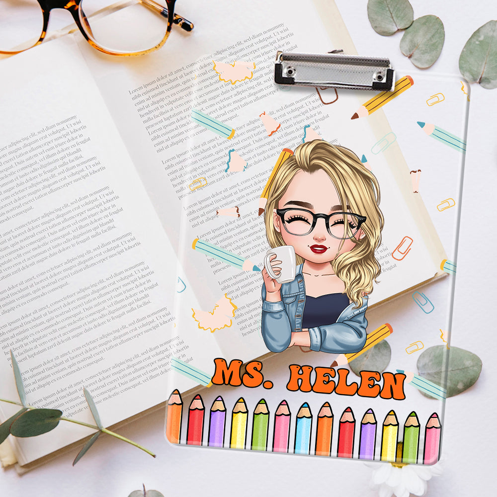 Color Back To School Teacher Gifts - Custom Acrylic Clipboard With Teacher Name