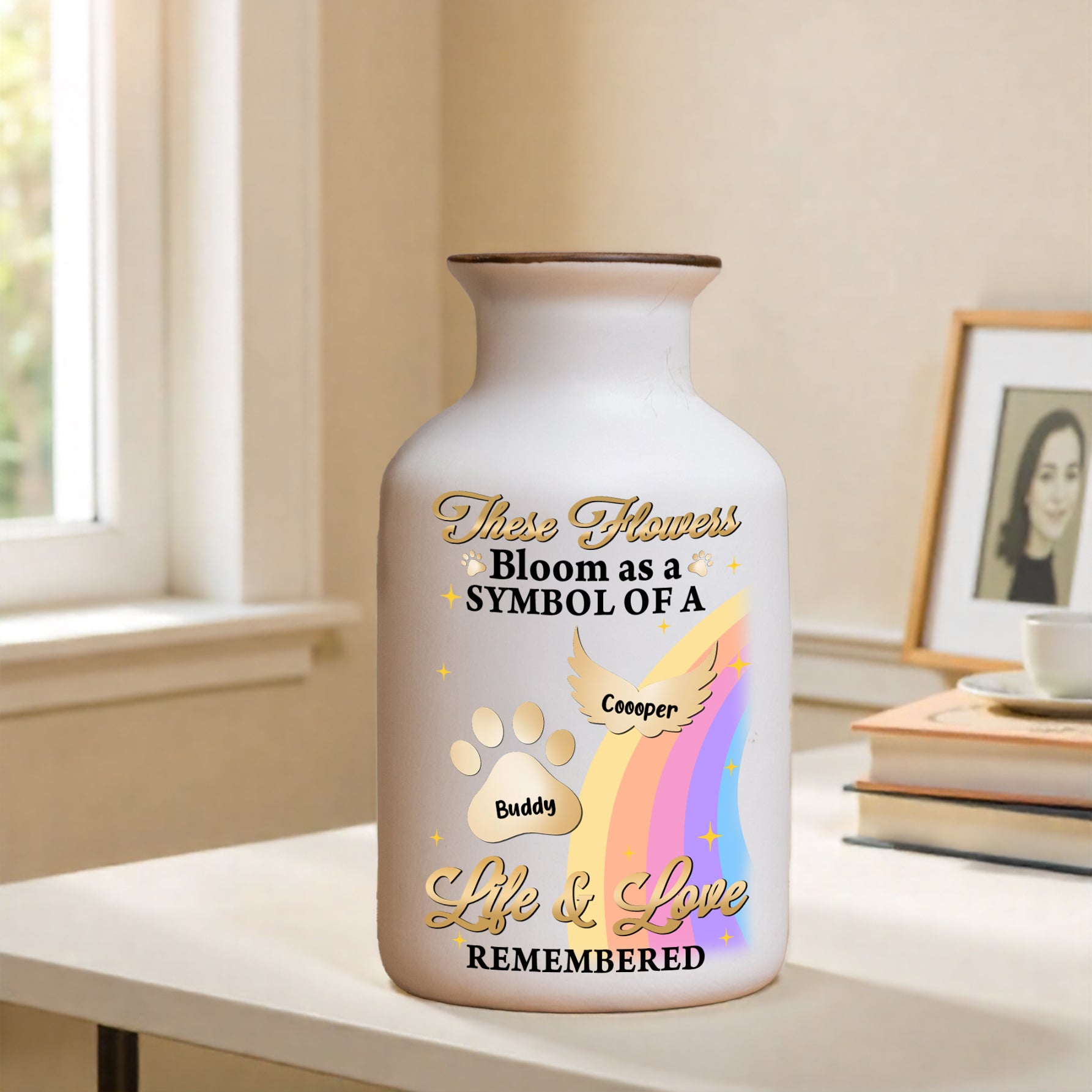 Crossed The Rainbow Bridge Memorial Pet - Elegant White Ceramic Flower Vase Minimalist