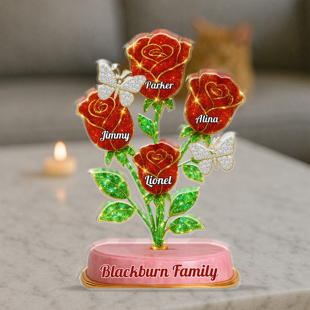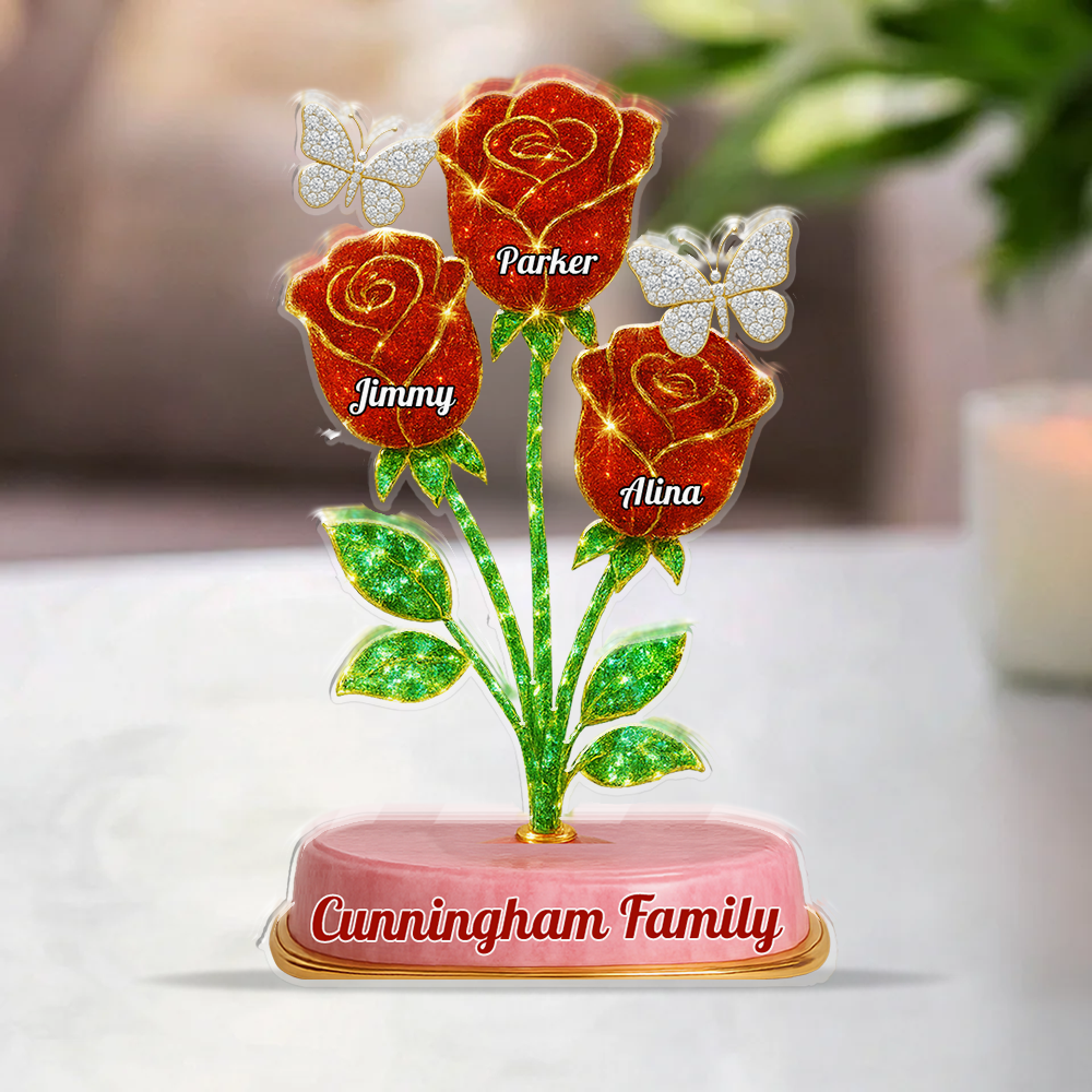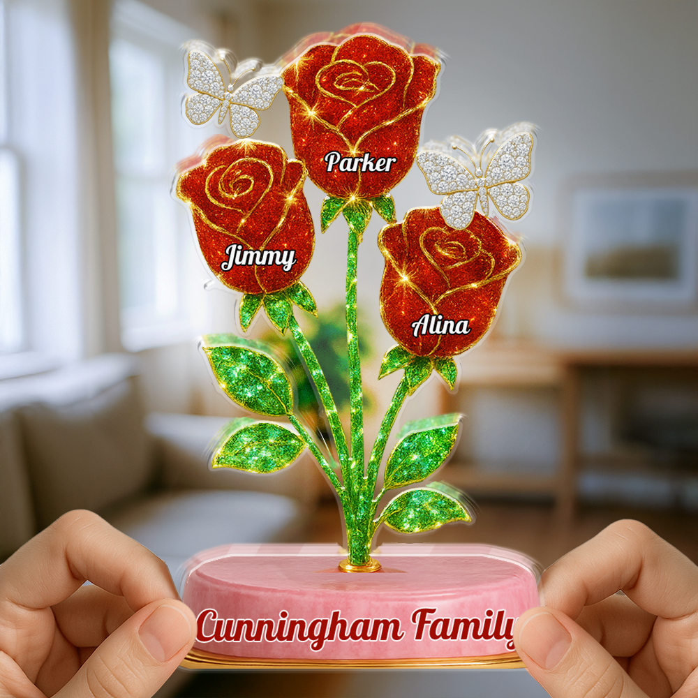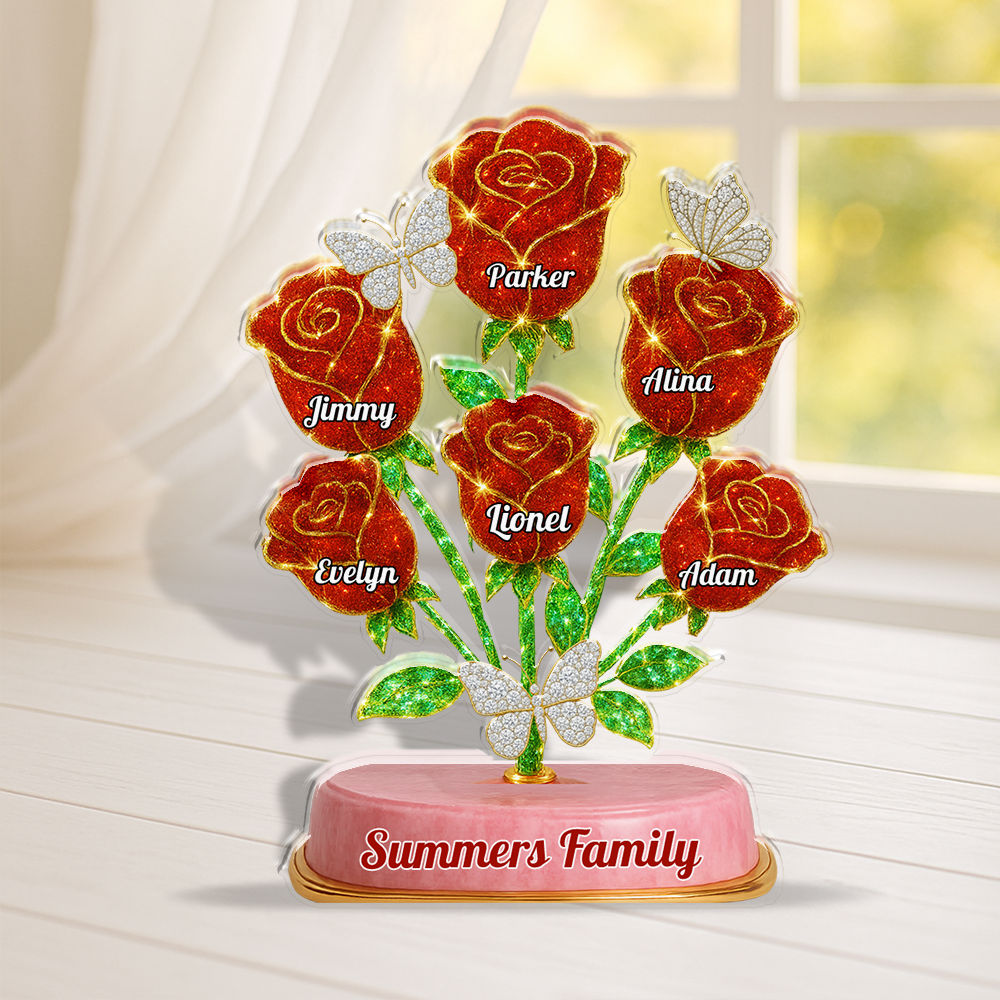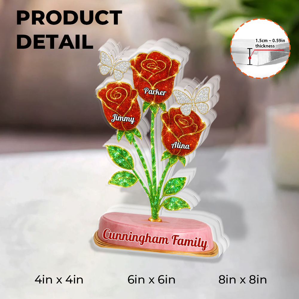 Custom Family Red Roses - Custom Figure Personalized Acrylic Block Plaque