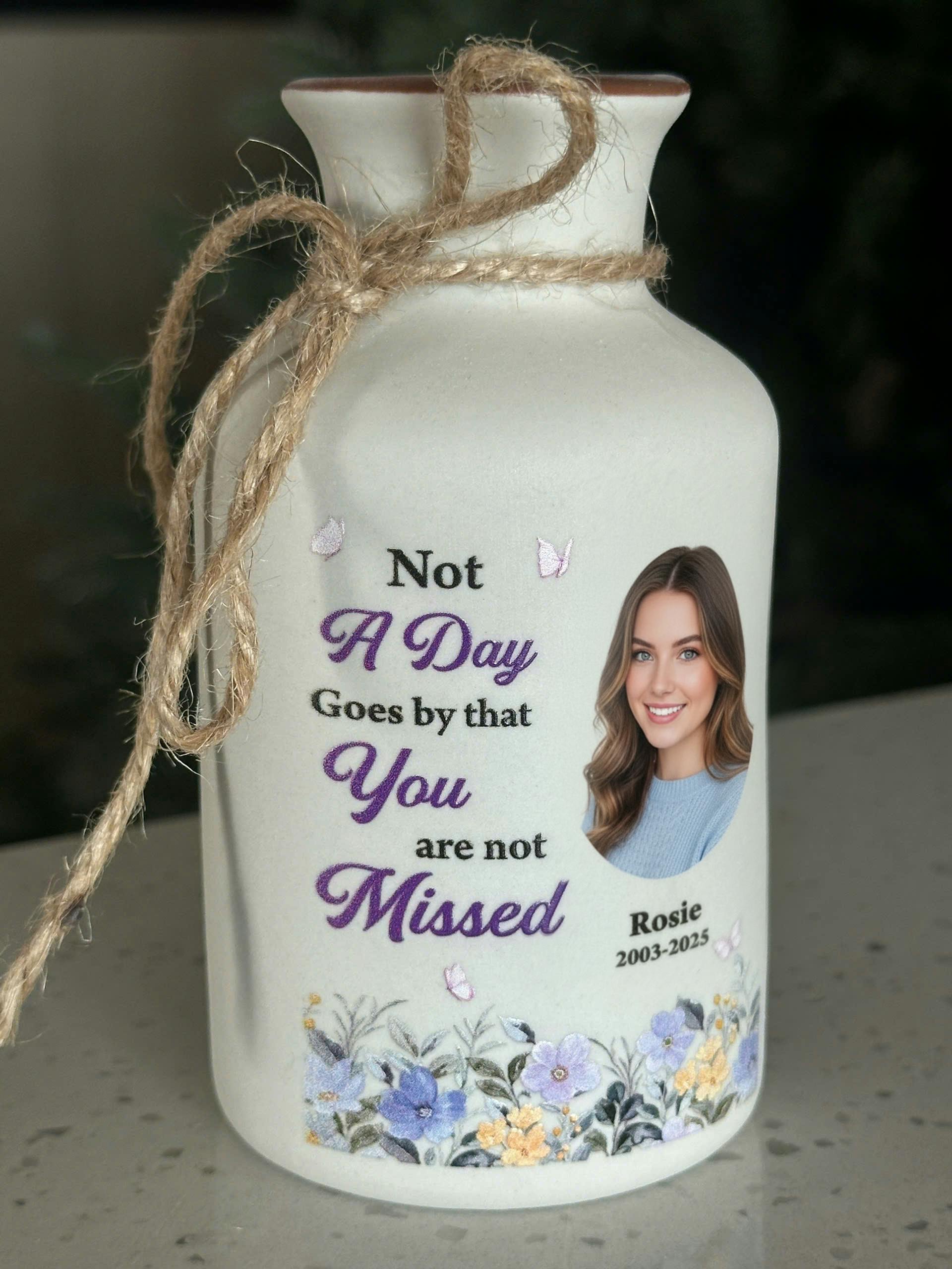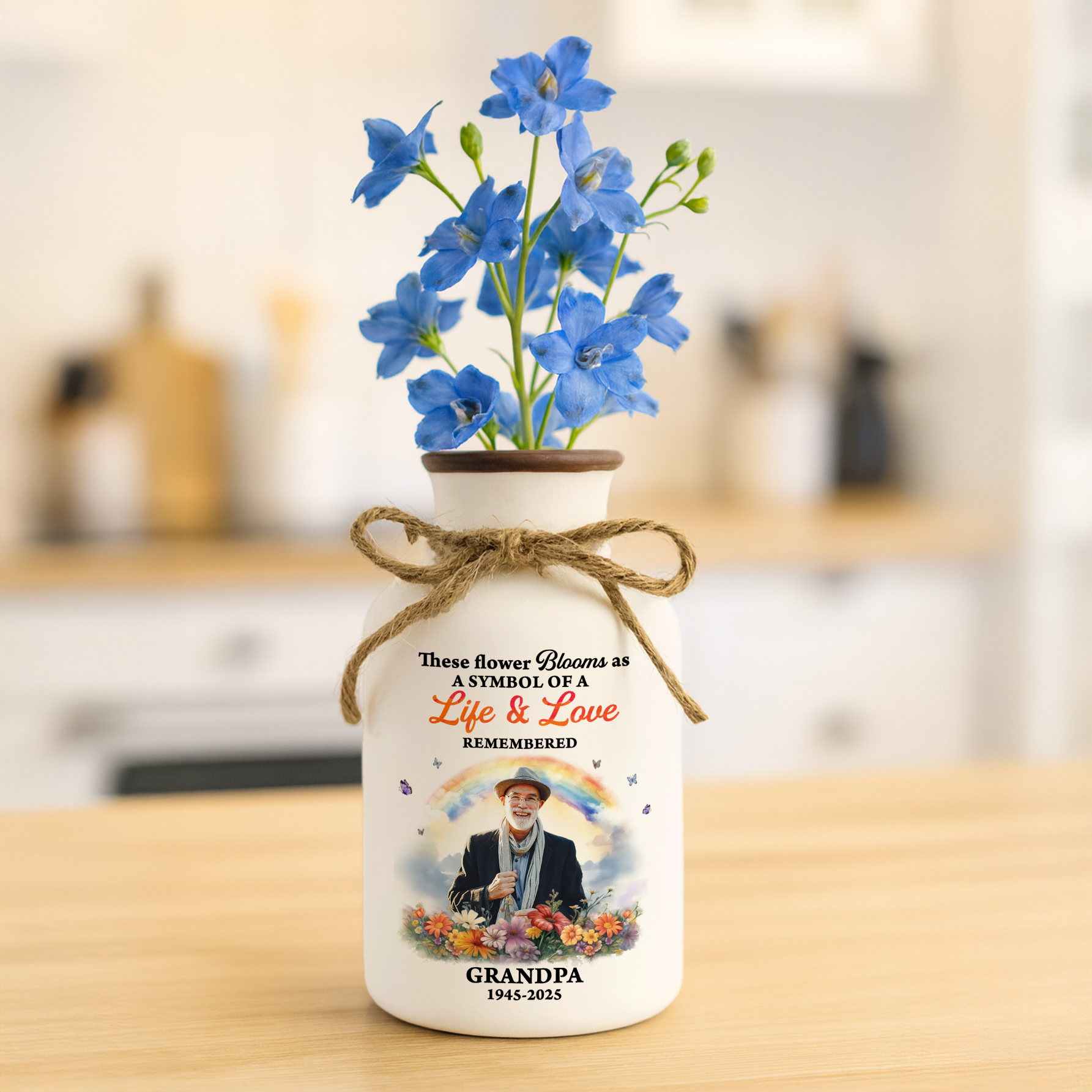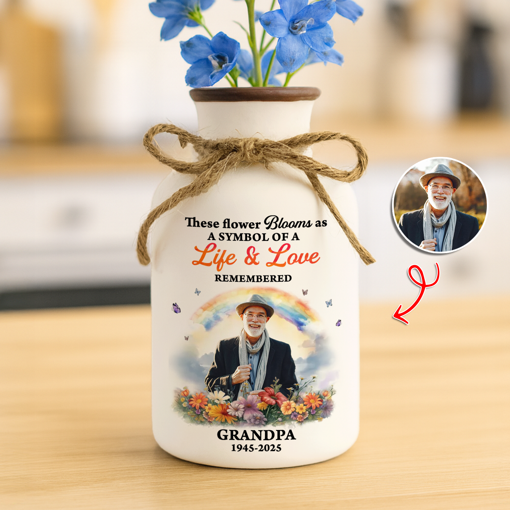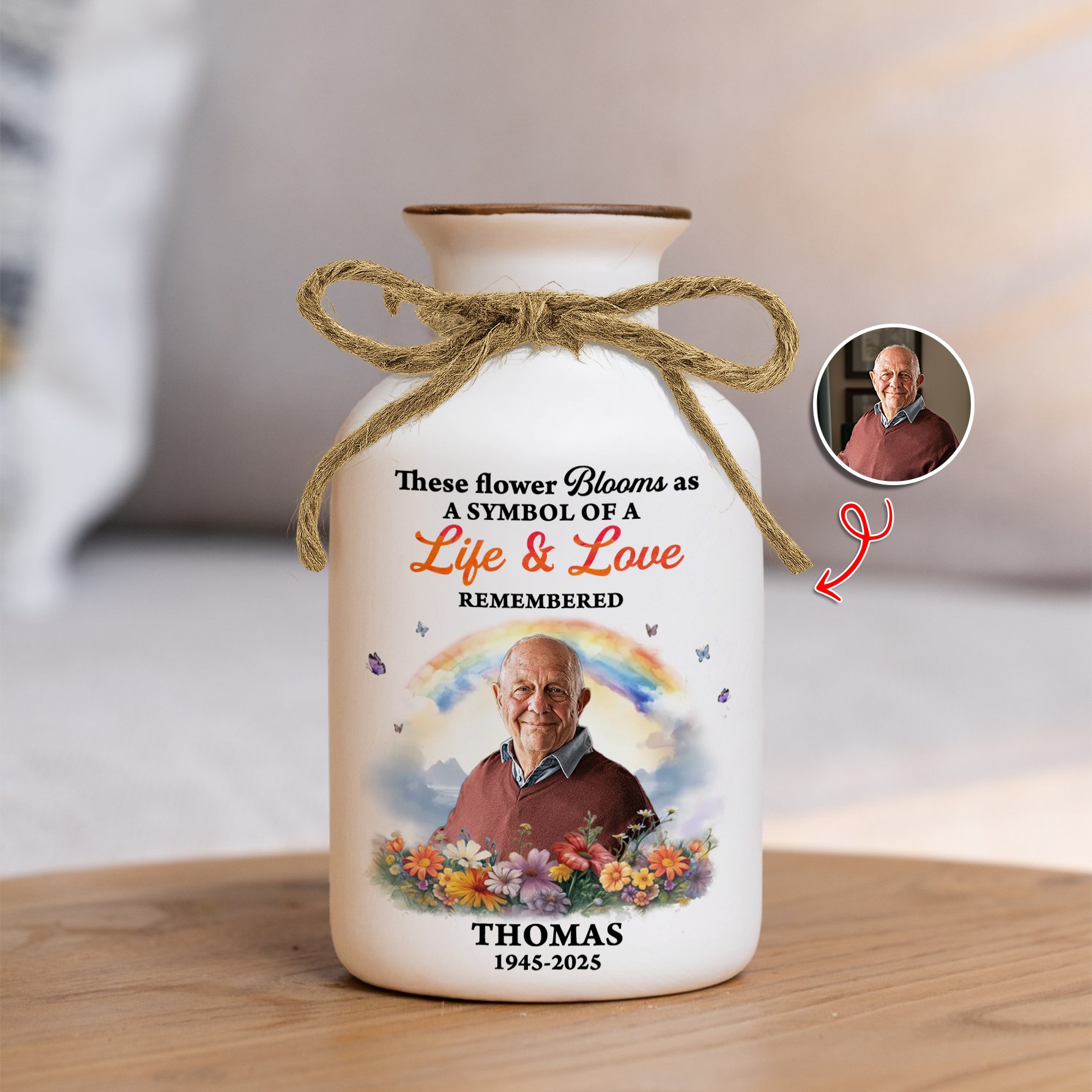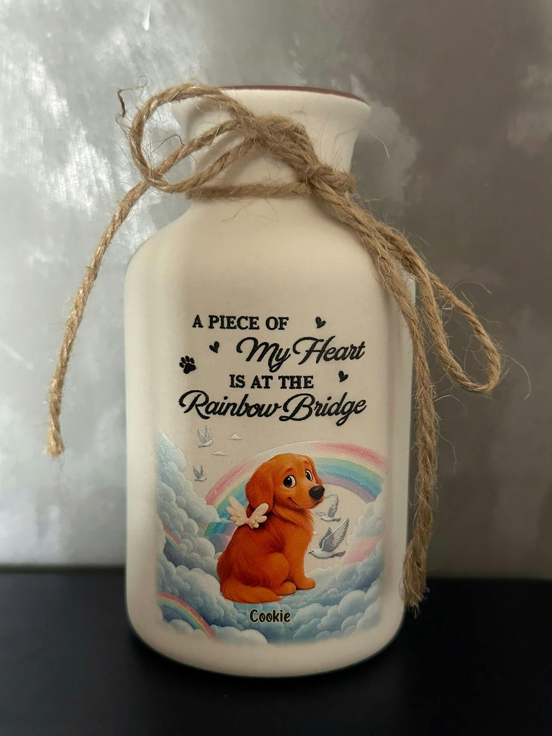 Custom Photo A Piece Of My Heart Is At The Rainbow Bridge - Personalized Custom Elegant White Ceramic Flower Vase Minimalist