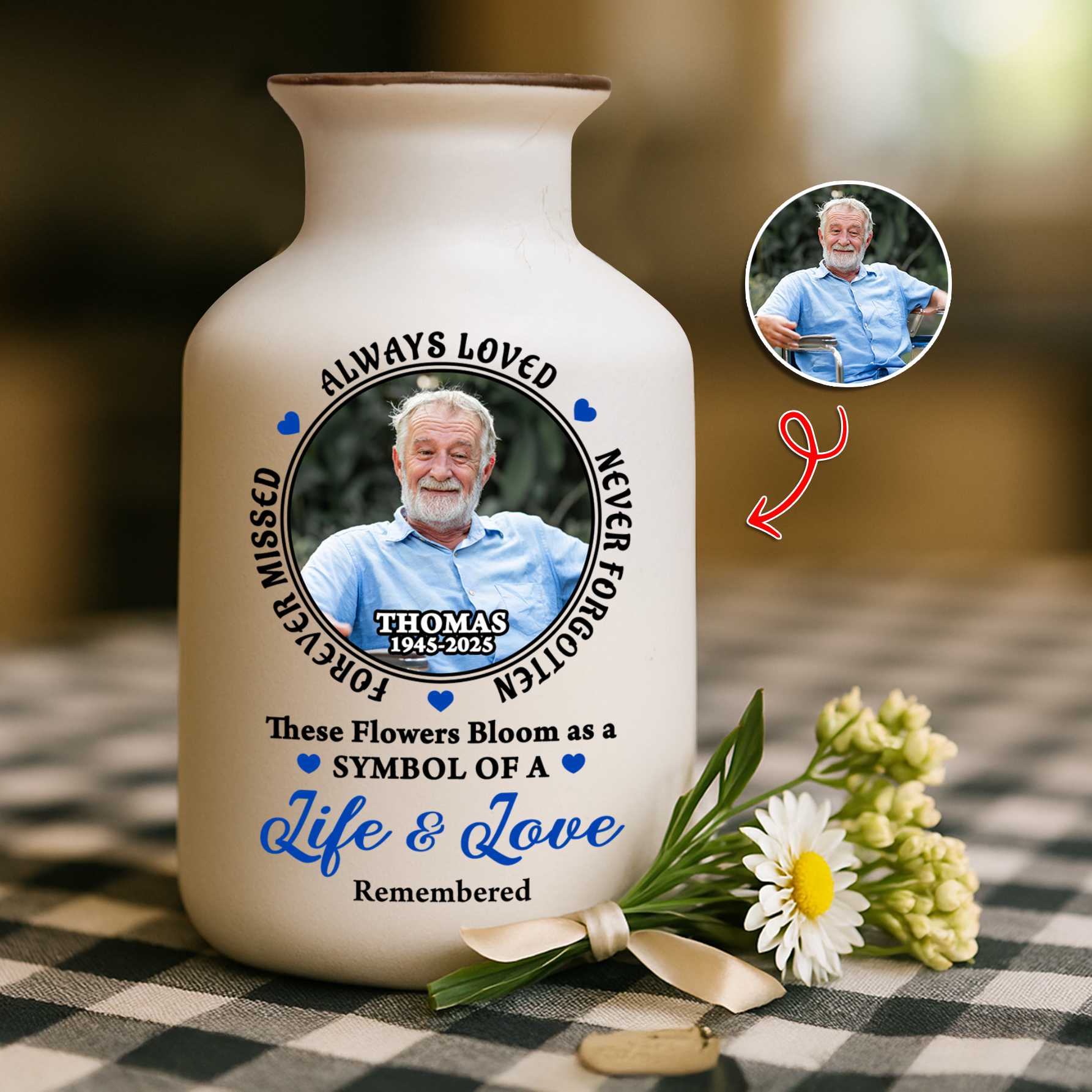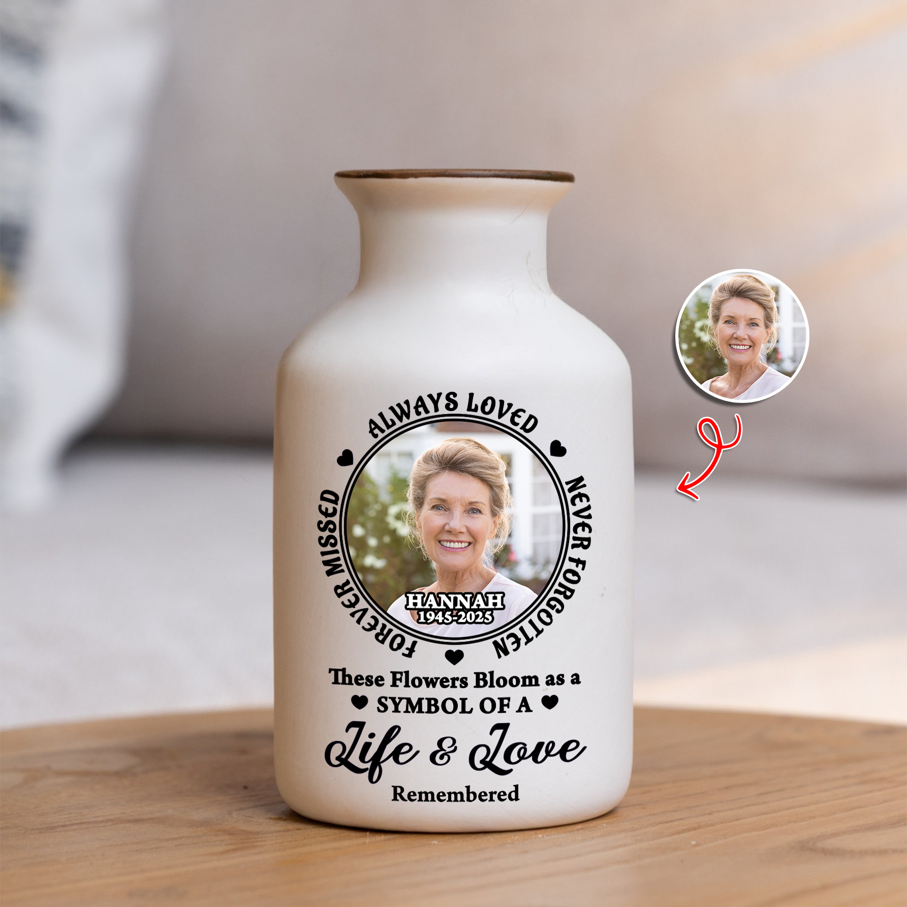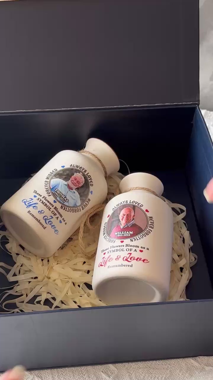Custom Photo Always In Our Thoughts - Elegant White Ceramic Flower Vase Minimalist