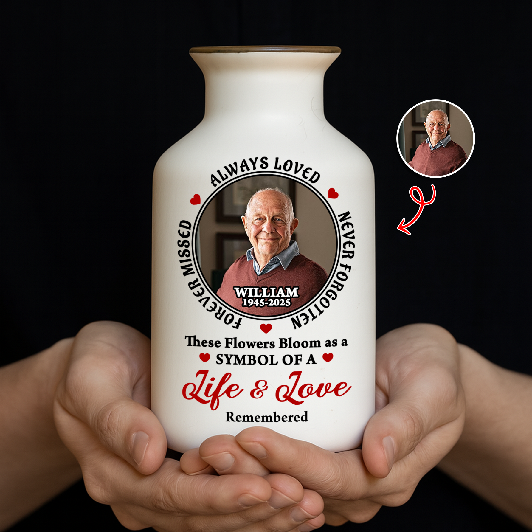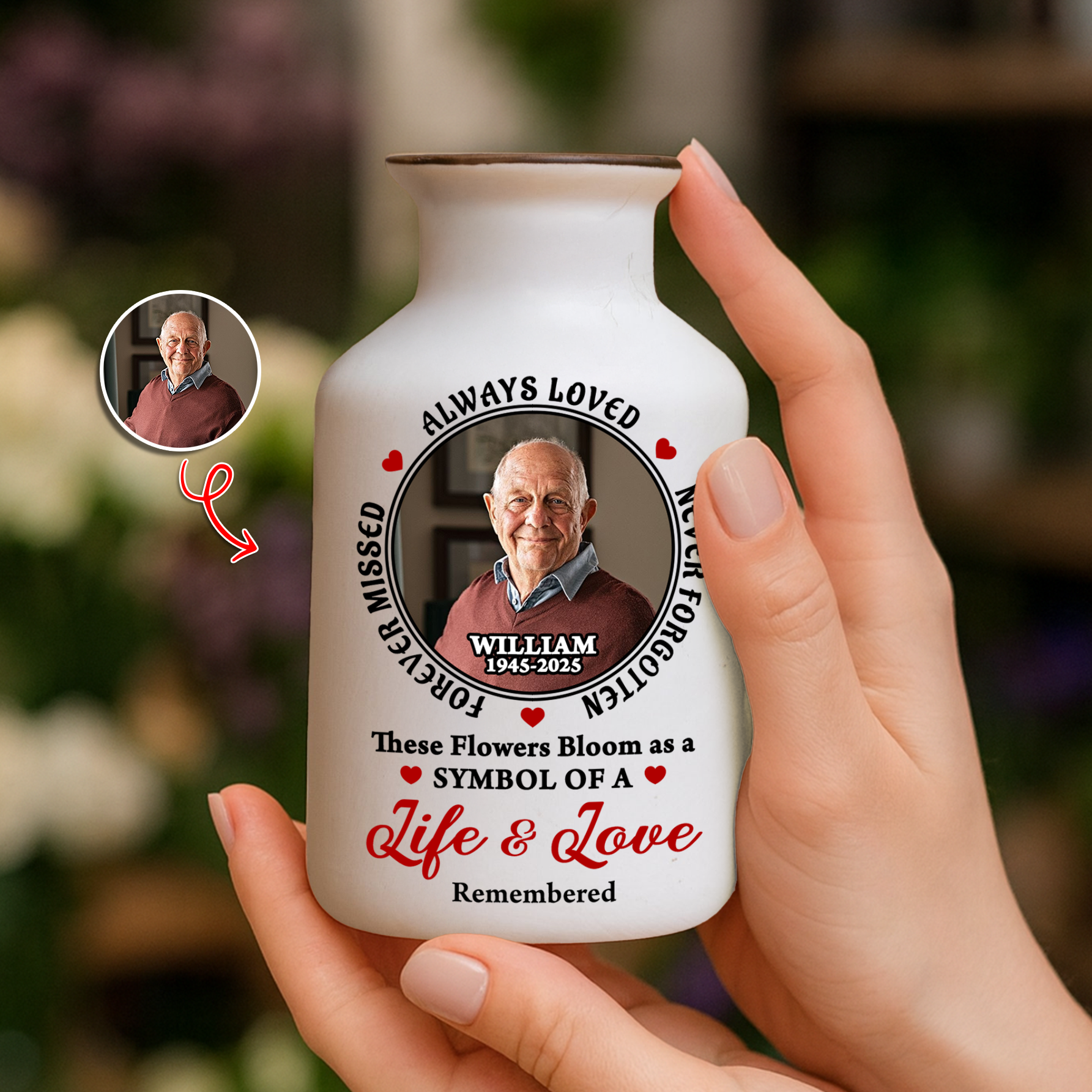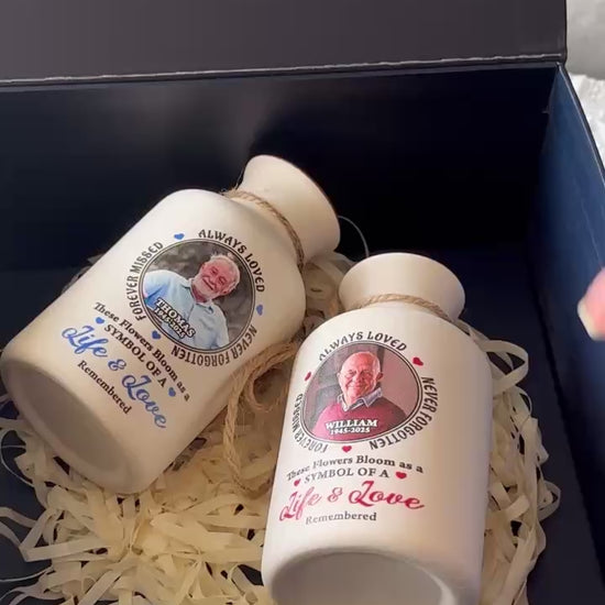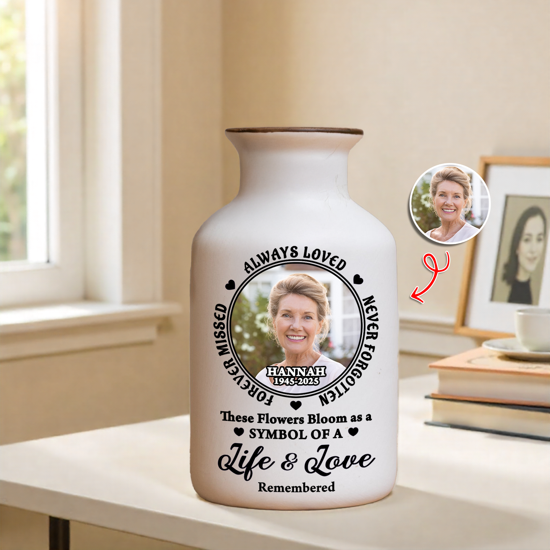 Custom Photo Always In Our Thoughts - Elegant White Ceramic Flower Vase Minimalist