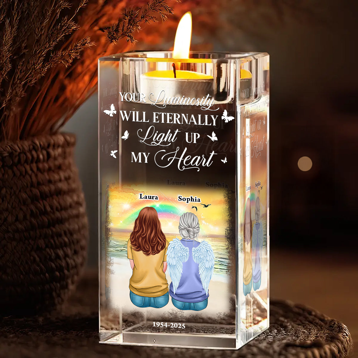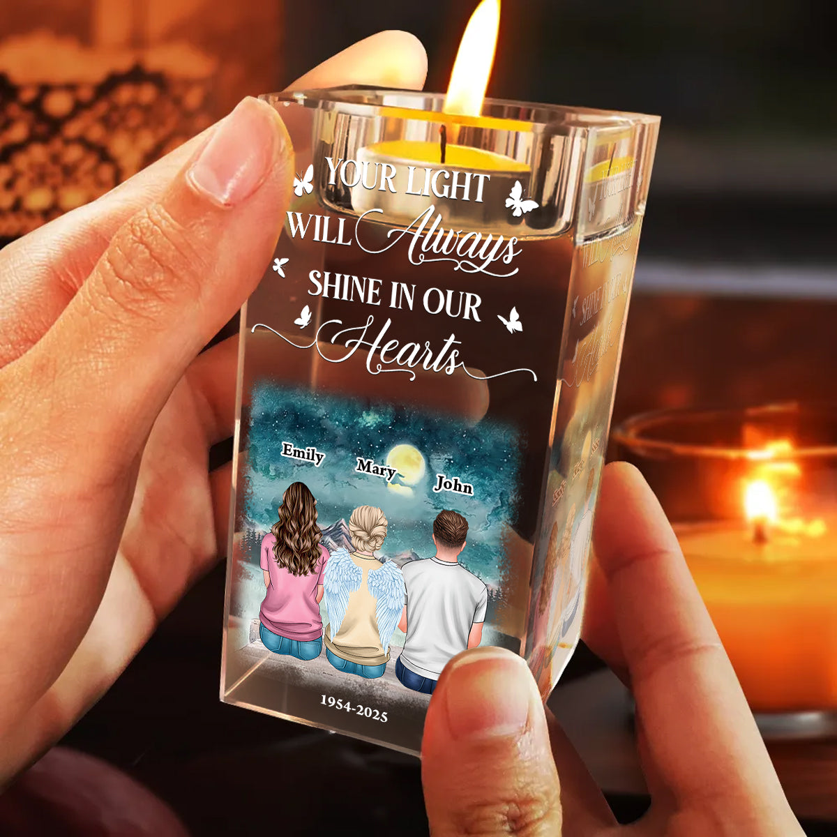 Custom Photo Blessing Family Memorial - Personalized Crystal Candle Holder