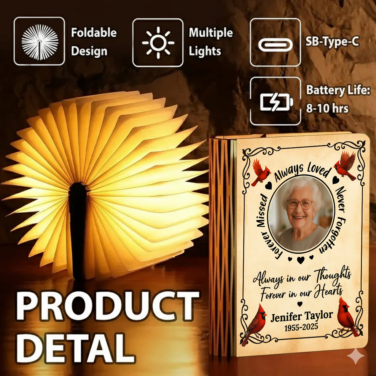 - Practical decor - Compact and portable, this product fits seamlessly into bedrooms, offices, or reading nooks. Its artistic design and customizable cover make it both a decorative accent and a meaningful keepsake.