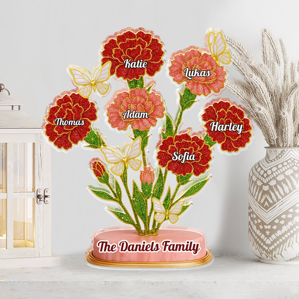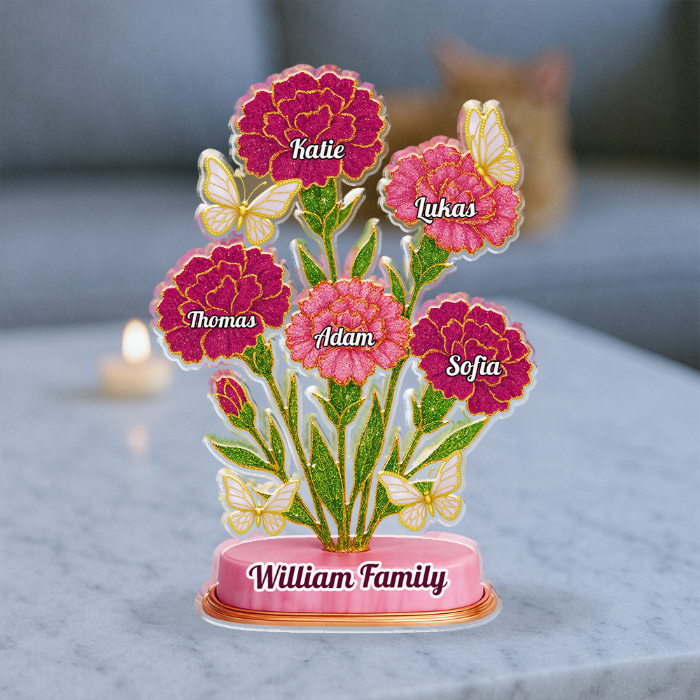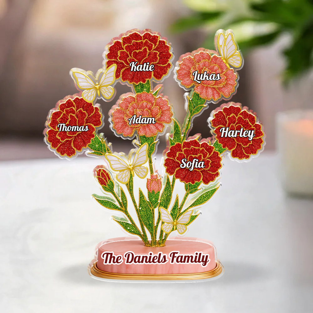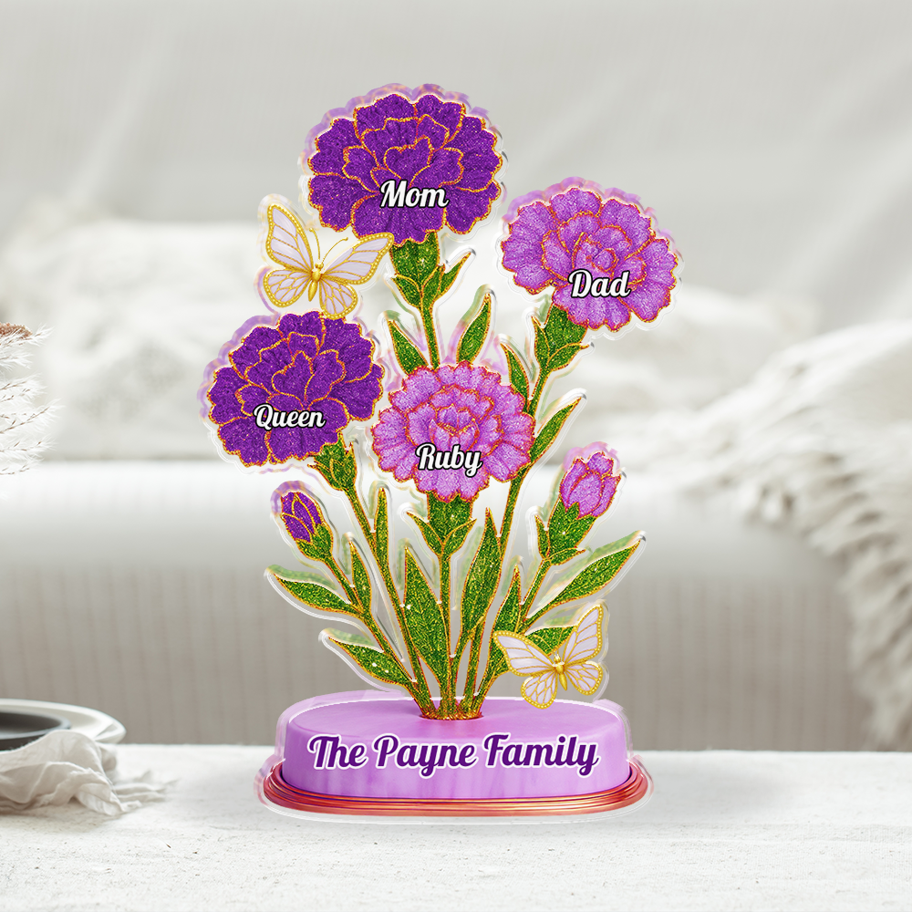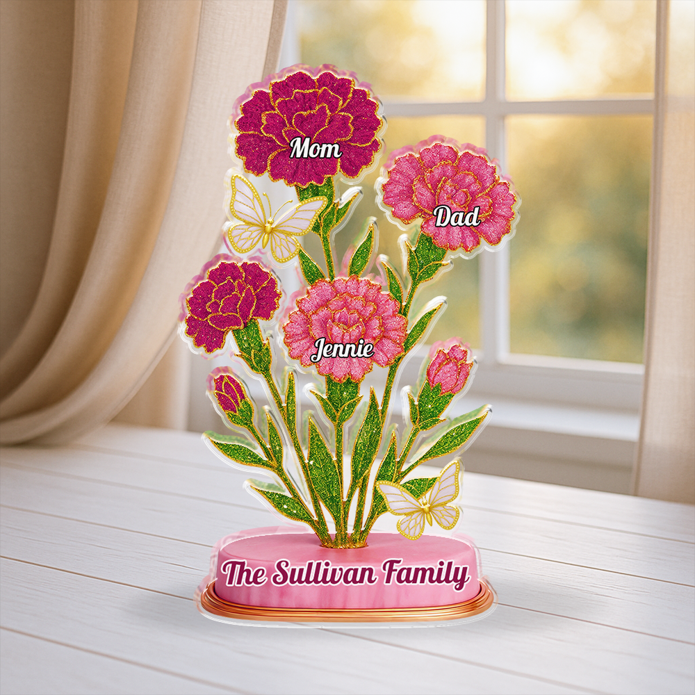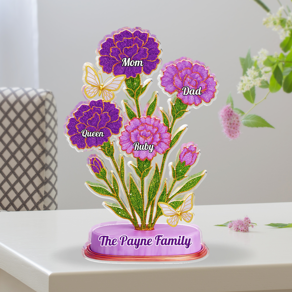Looking for a meaningful gift that shines as brightly as your loved ones? This Personalized Family Flower Acrylic Plaque is the perfect choice! With vivid glitter flowers, sparkling butterflies, and the names of your family members, it's a joyful celebration of love, unity, and lasting memories.