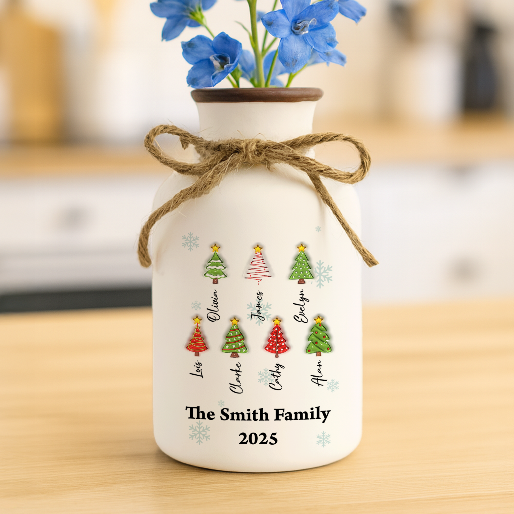 Family Christmas Tree - Personalized Custom Elegant White Ceramic Flower Vase Minimalist