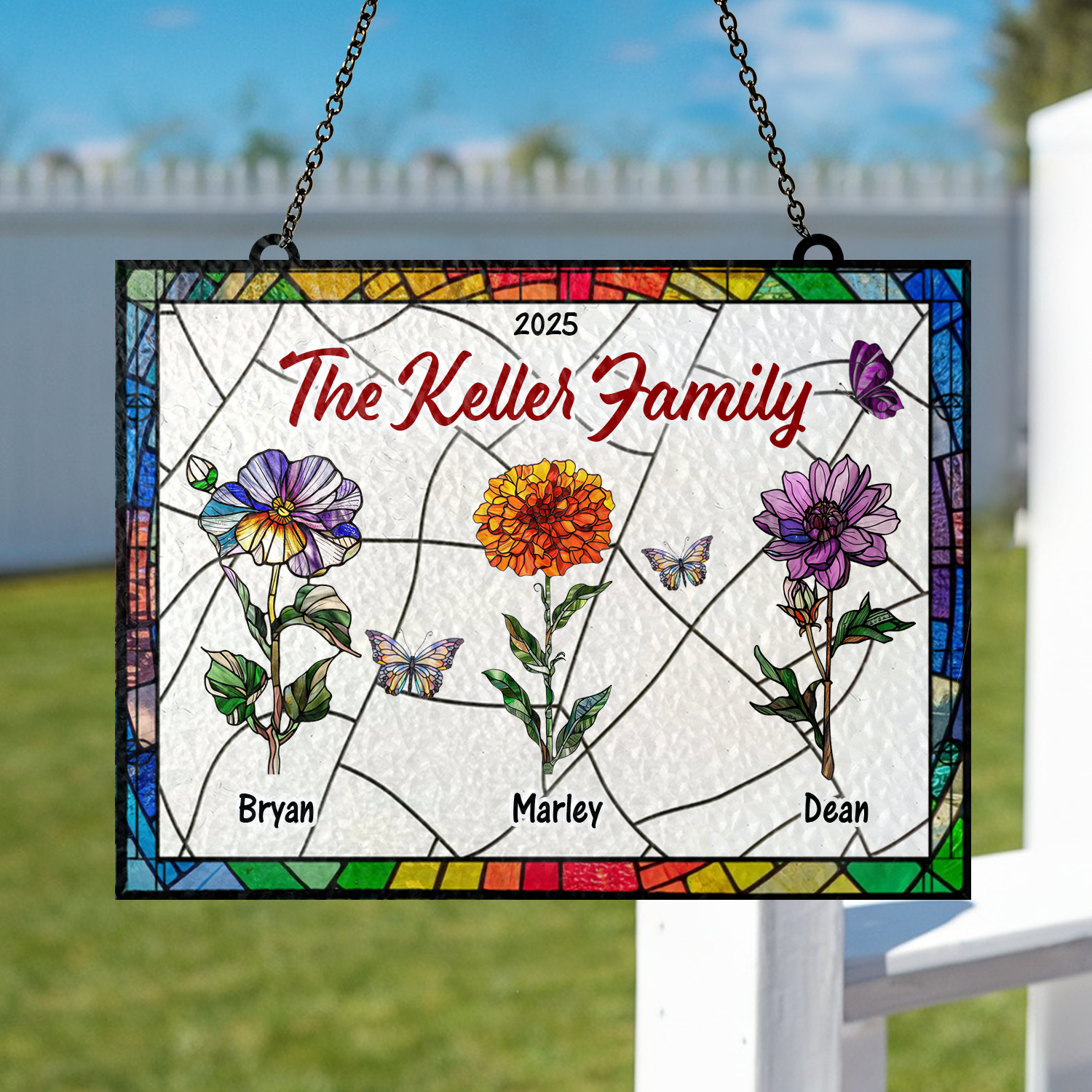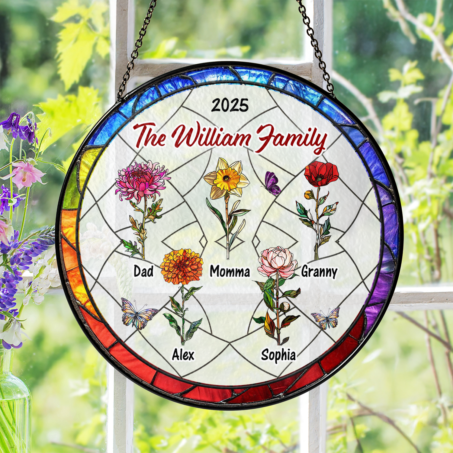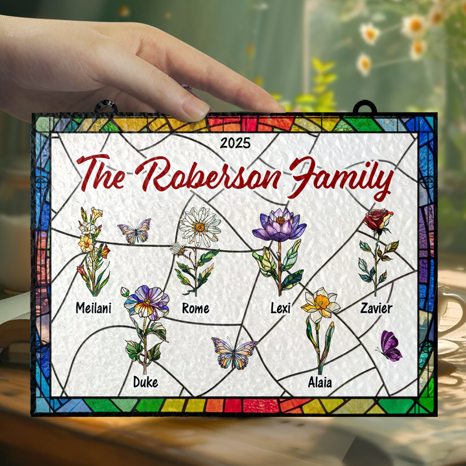 Family Flowers - Personalized Photo Stained Glass Window Hanging Suncatcher