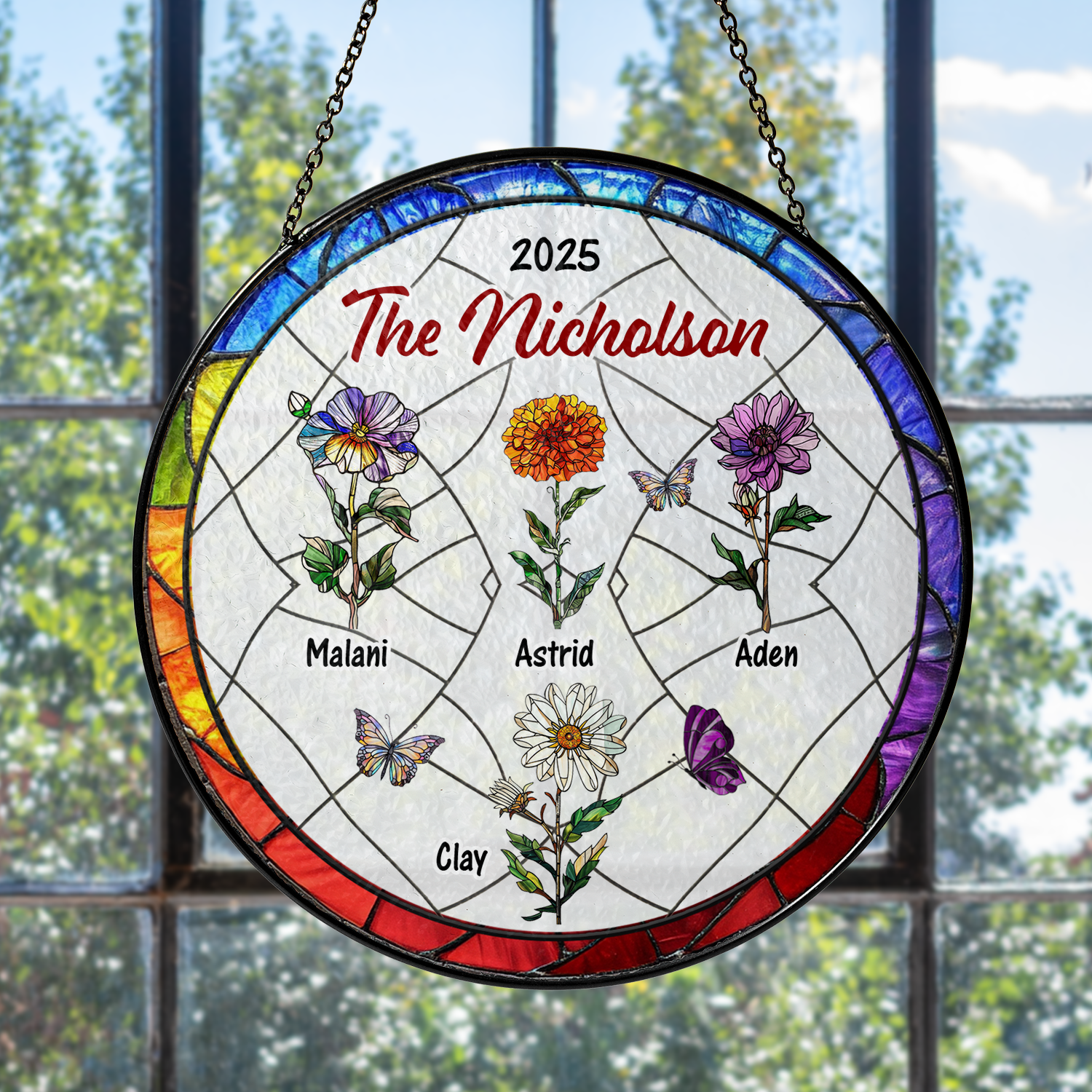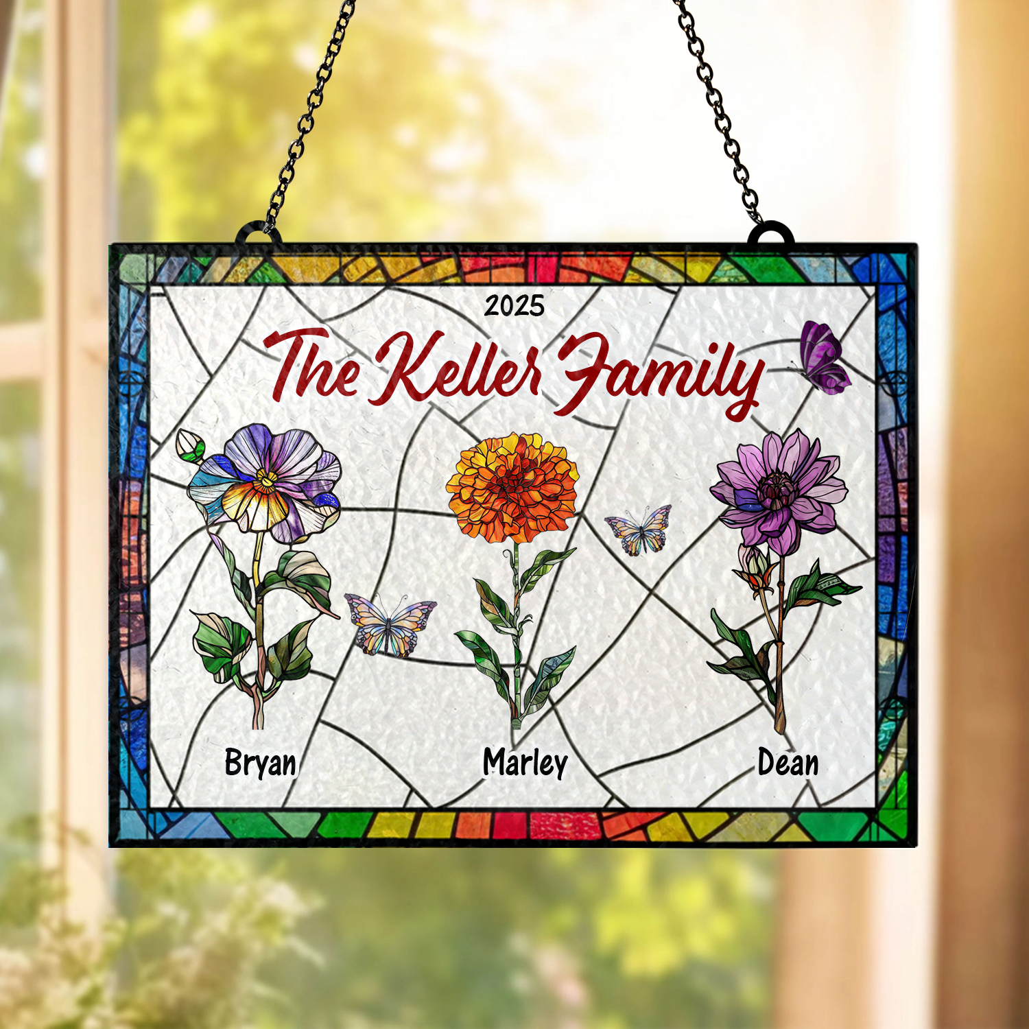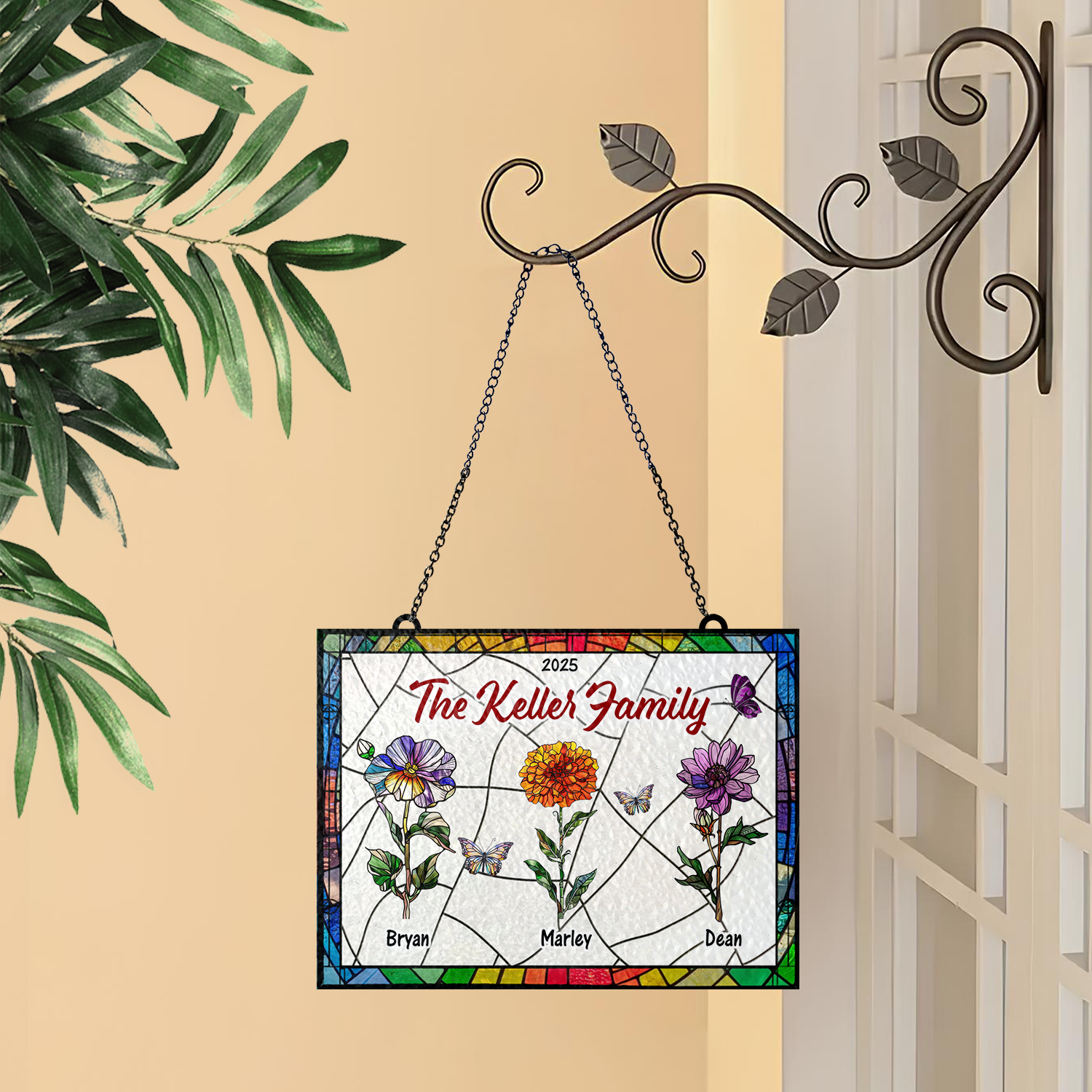 Family Flowers - Personalized Photo Stained Glass Window Hanging Suncatcher