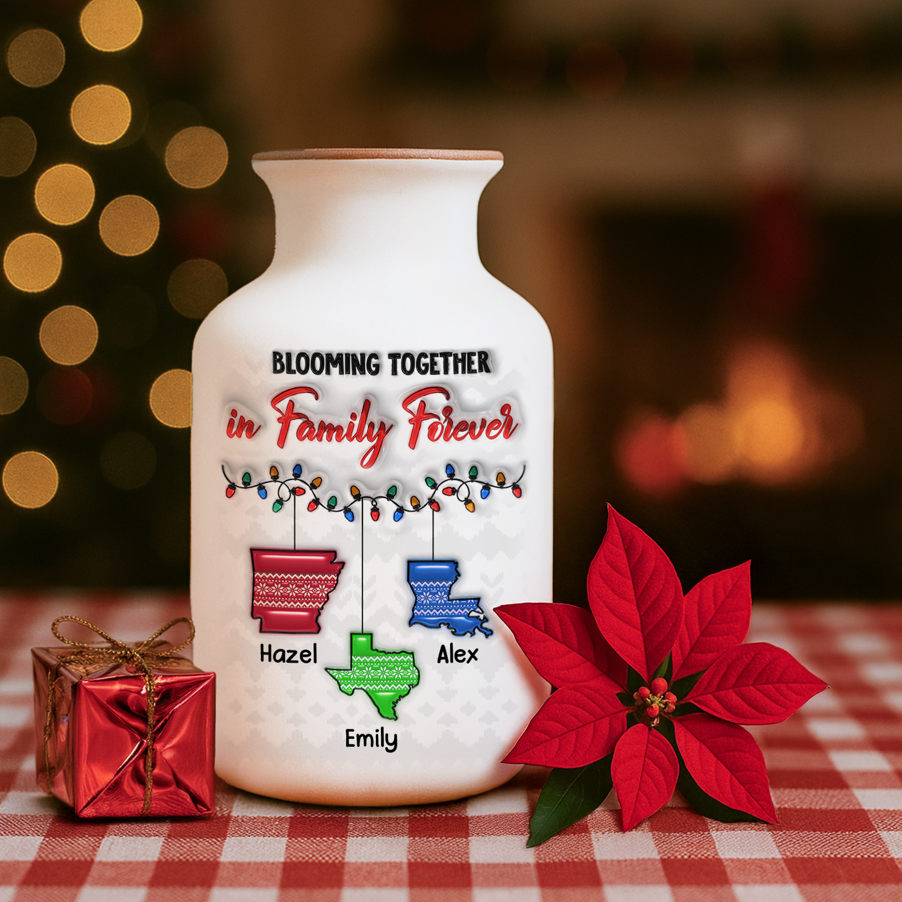 Family Love Knows No Distance - Personalized Custom Elegant White Ceramic Flower Vase Minimalist