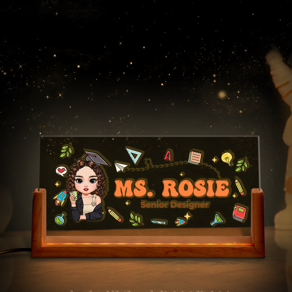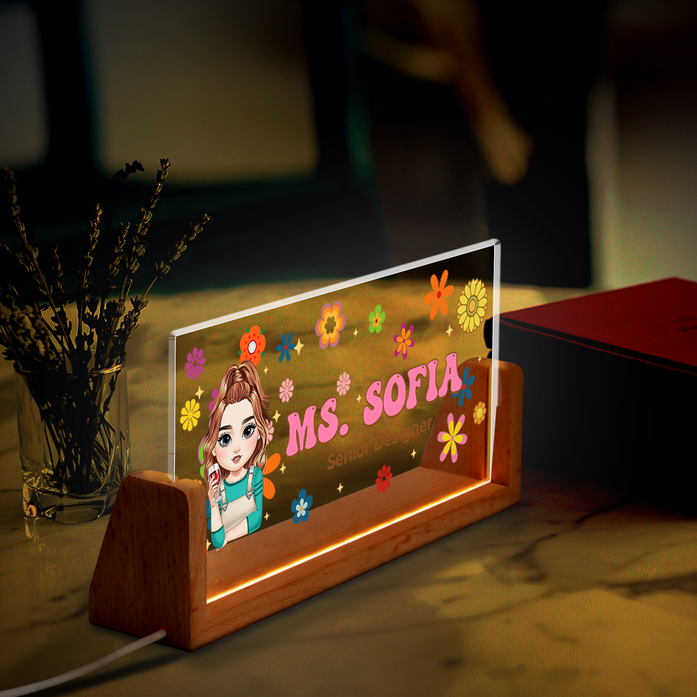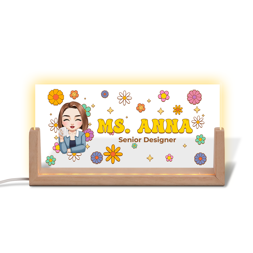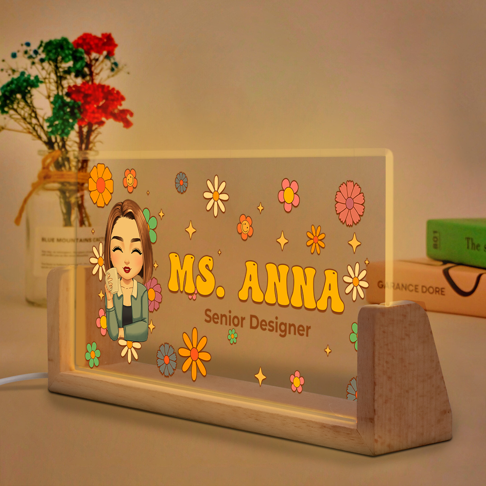 Flowers Teacher Name - Personalized Teacher Name Sign for Desk - Desk Name Plate Night Light