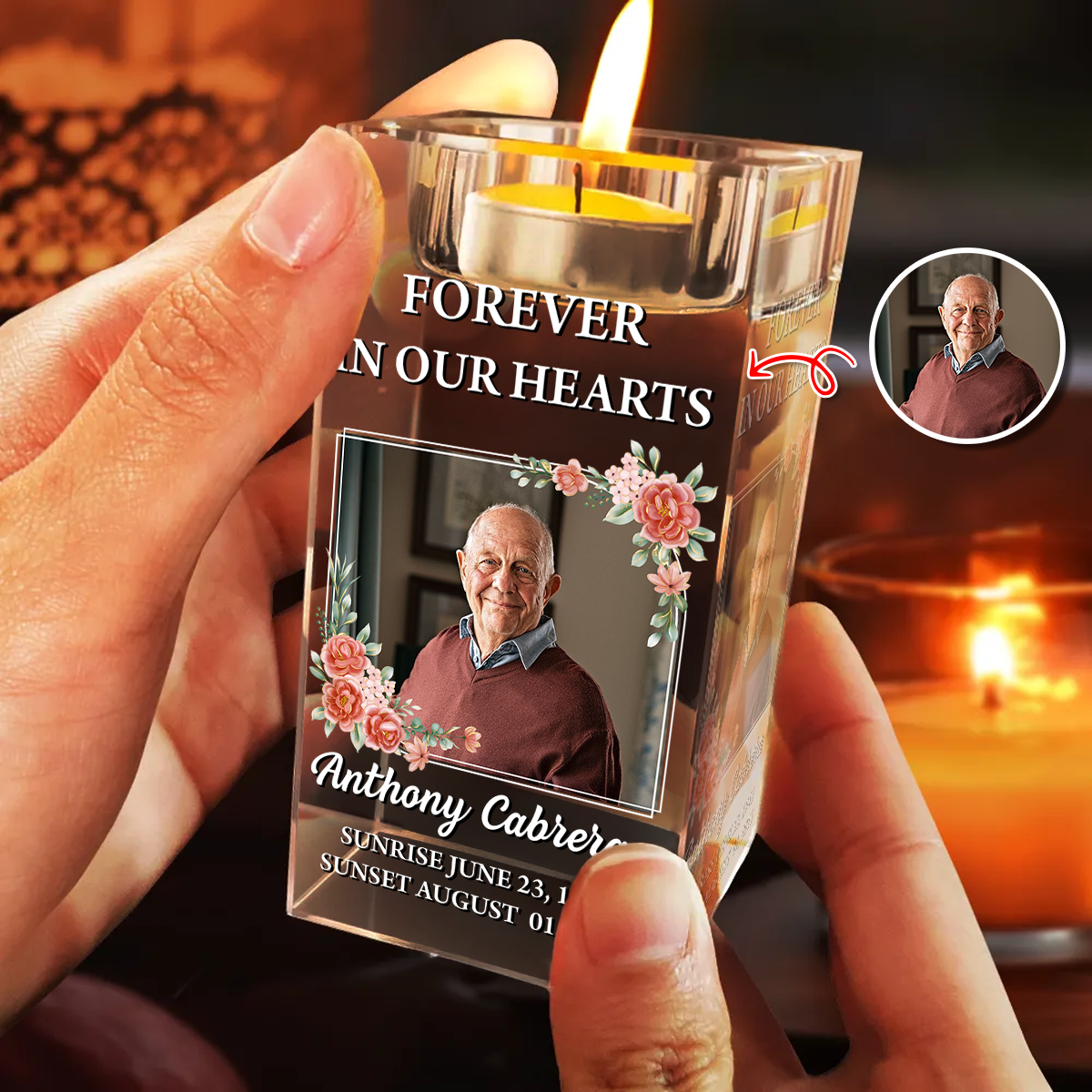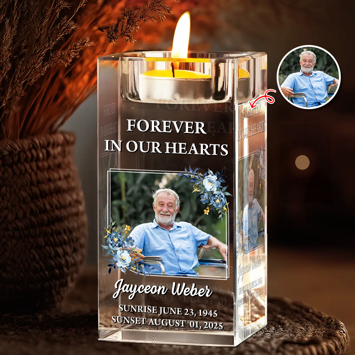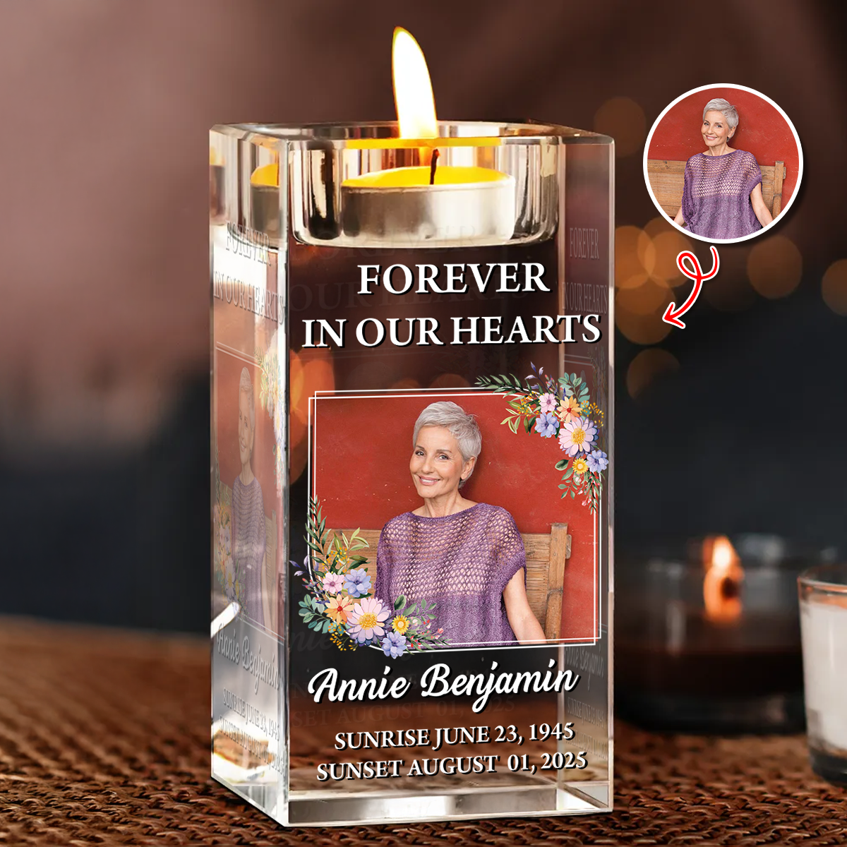 Forever In Our Hearts - Personalized Crystal Candle Holder