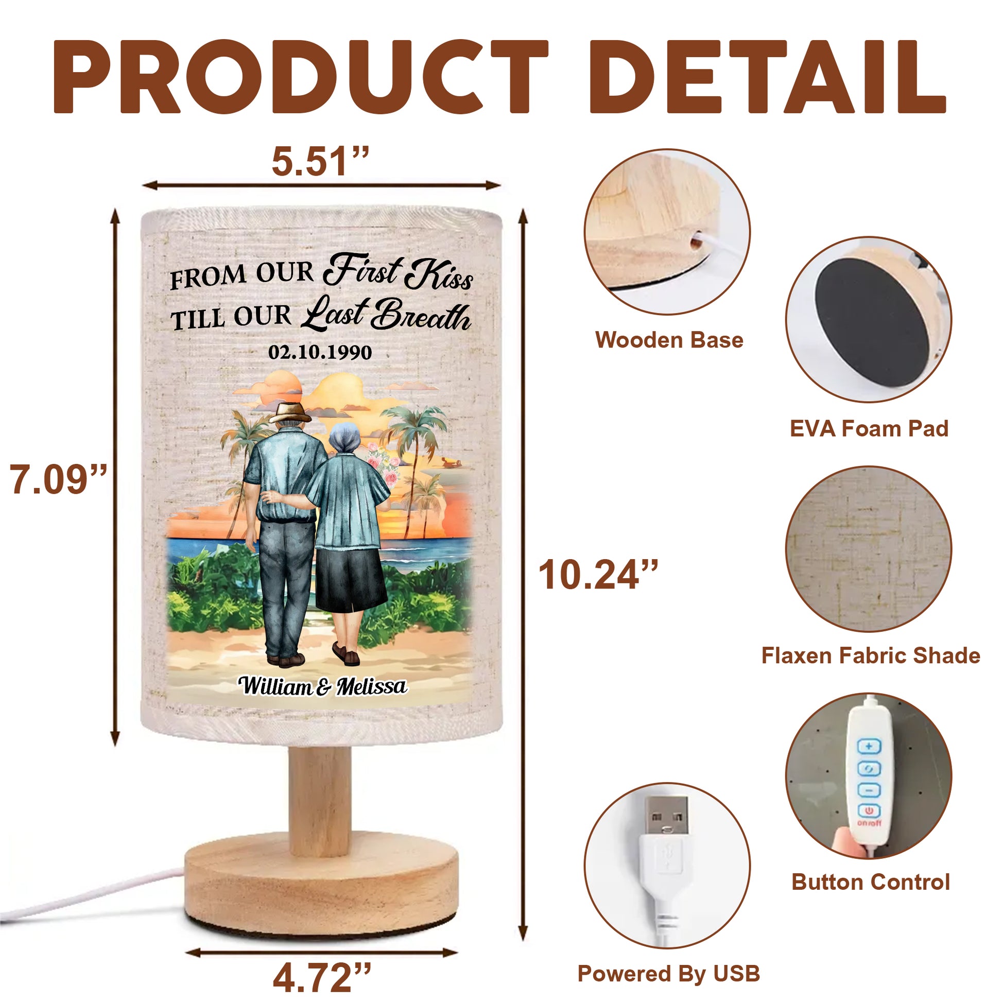 • Features a beige linen shade atop a compact wooden base, adding a refined touch to any space.