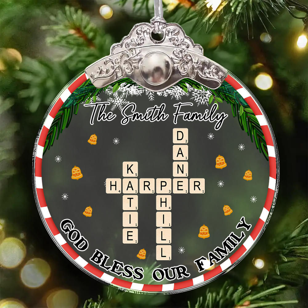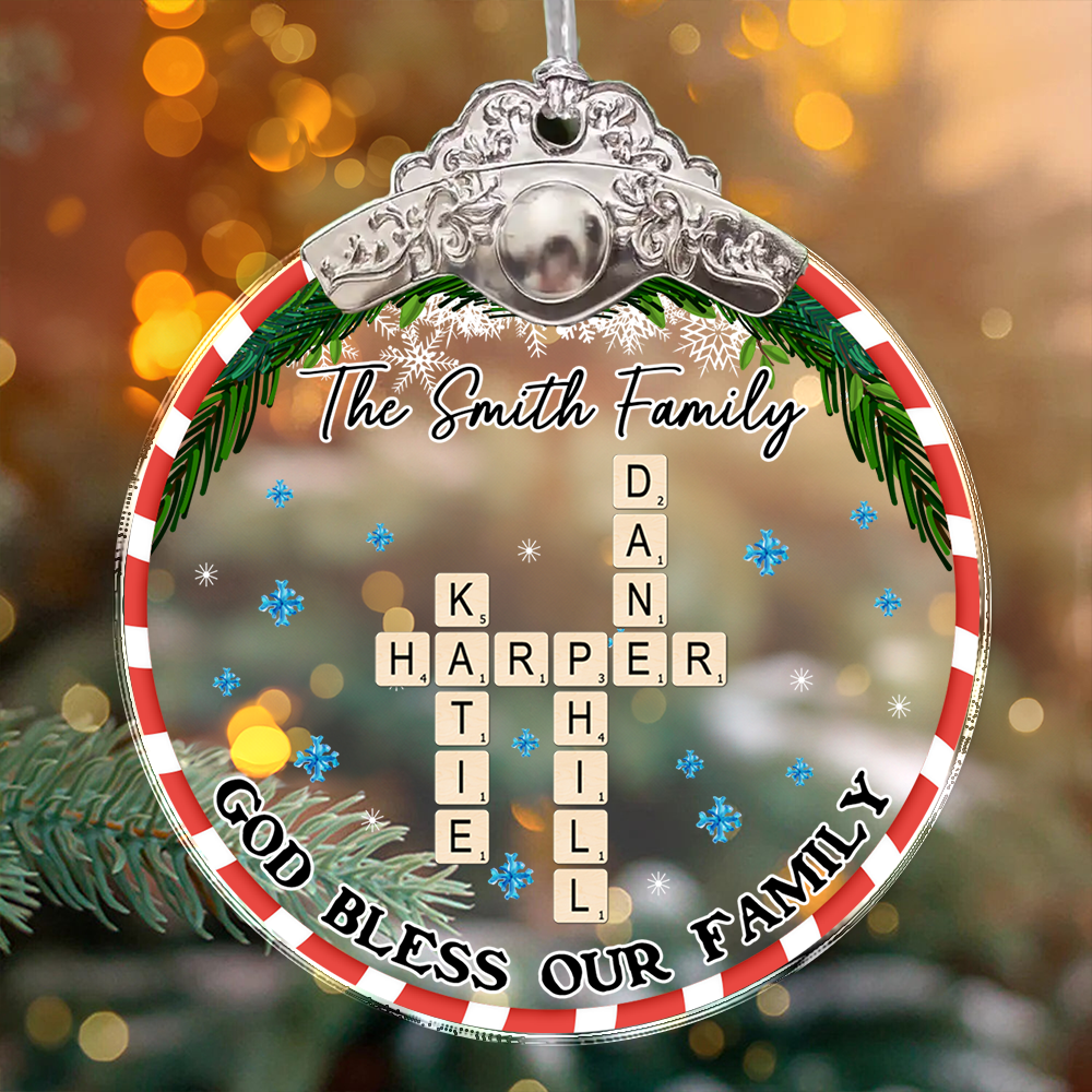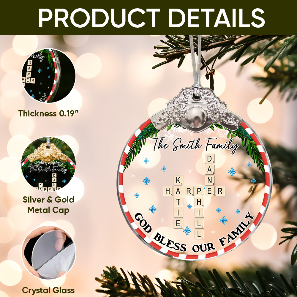 God Bless Our Family Flower - Personalized Glass Ornament With Silver and Gold Cap