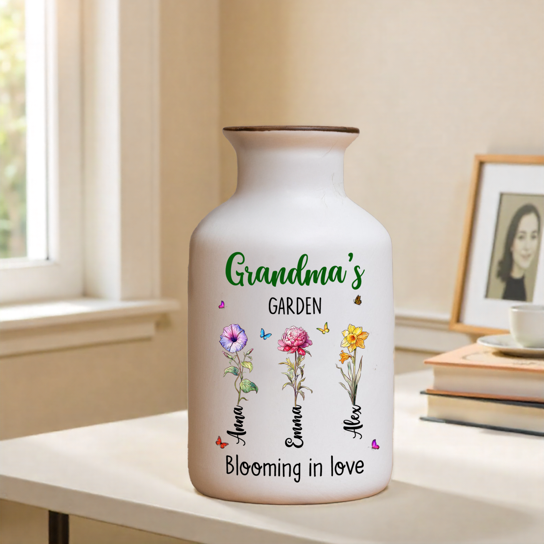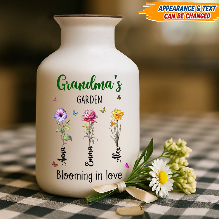 Grandma Garden Is Grown With Seeds Of Love - Elegant White Ceramic Flower Vase Minimalist