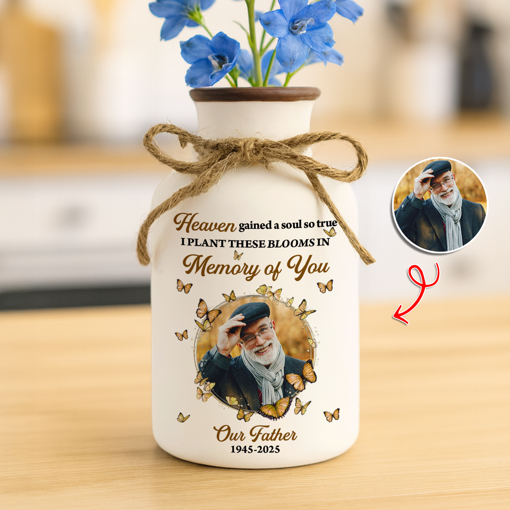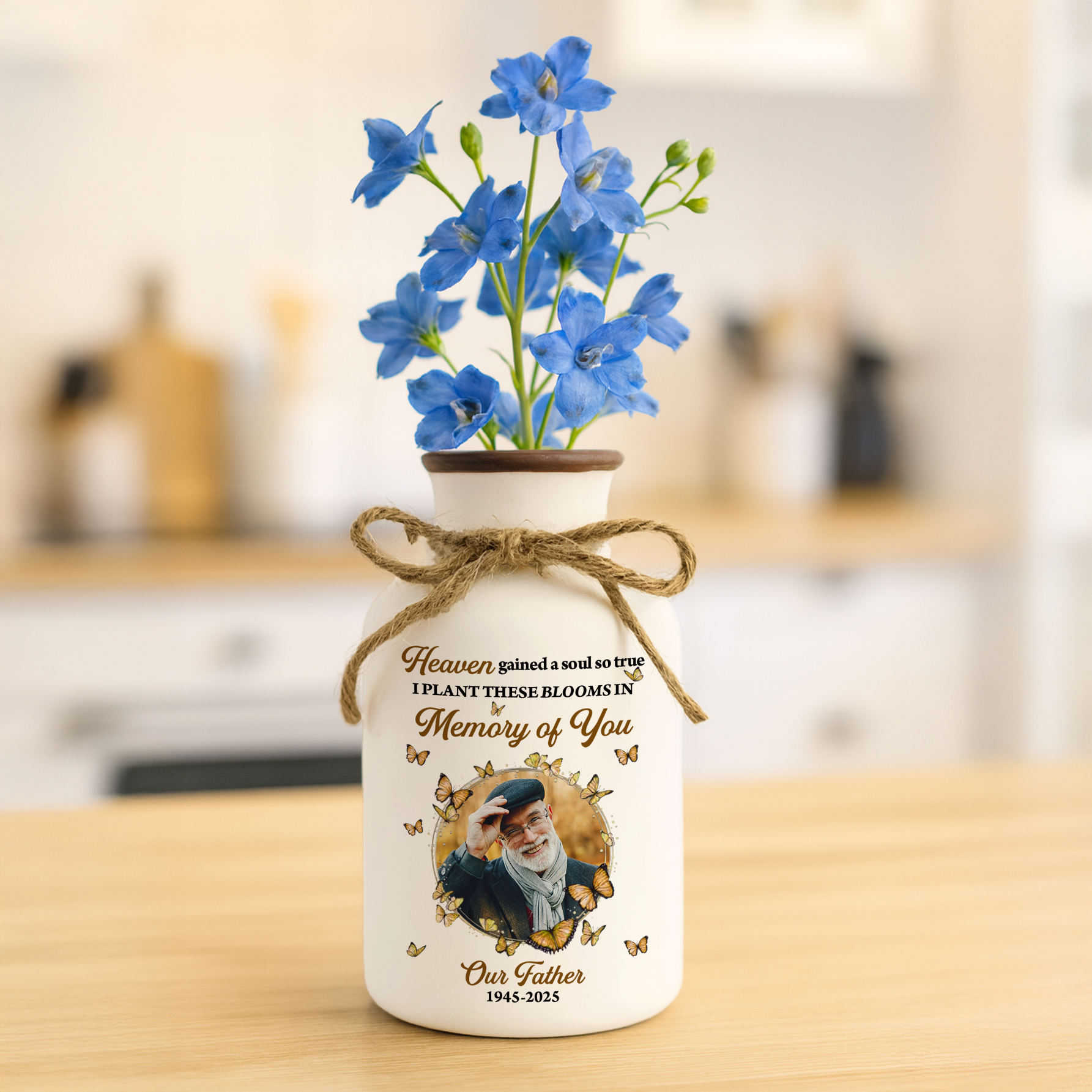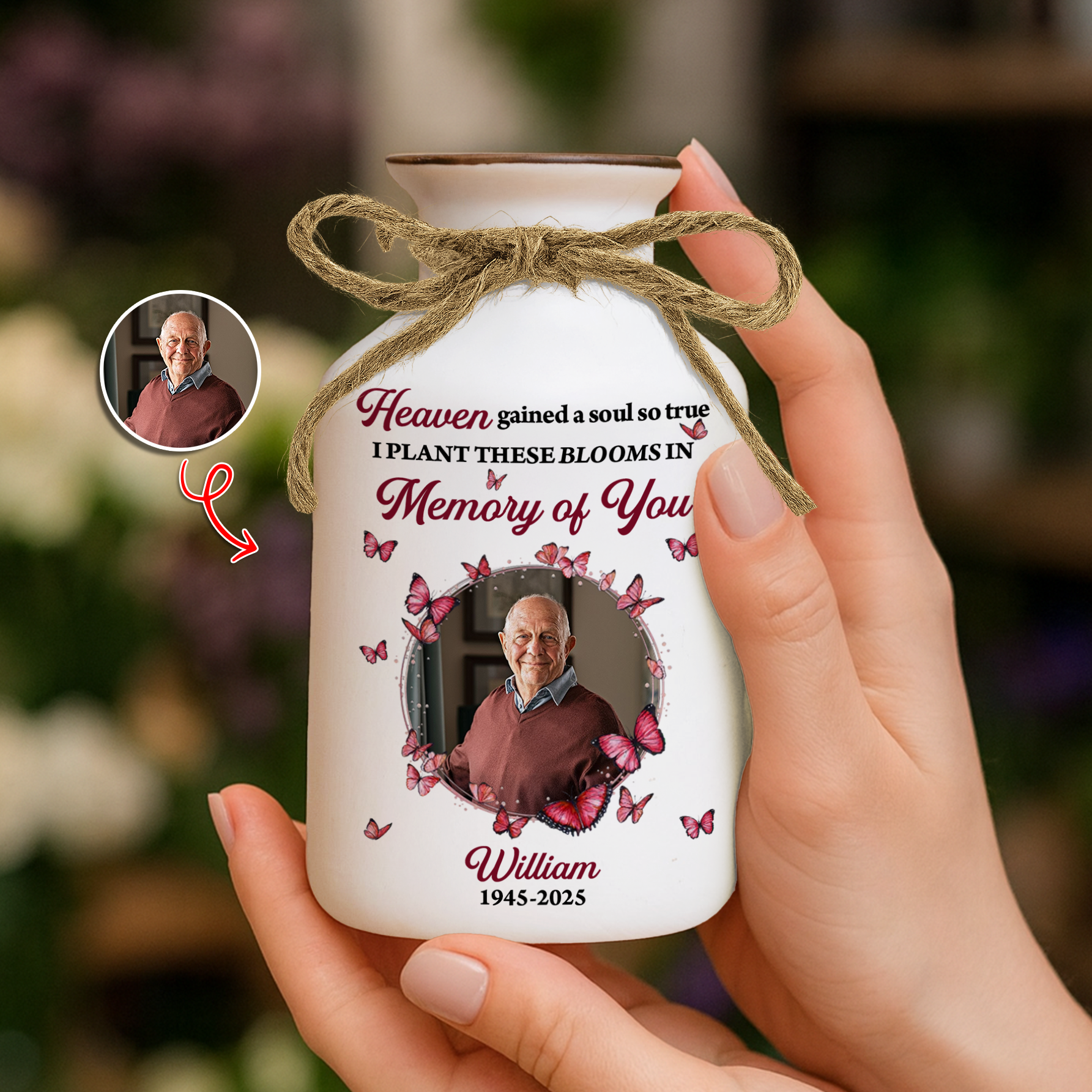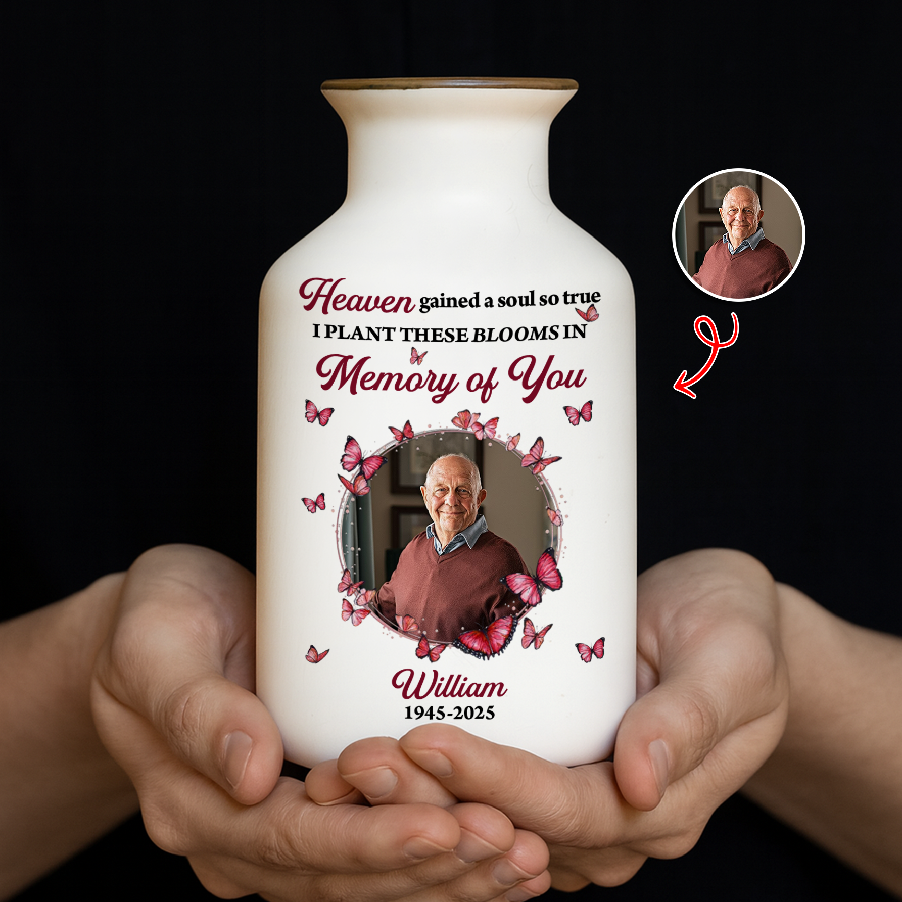 Heaven Gained A Soul So True - Personalized Custom Elegant White Ceramic Flower Vase Minimalist