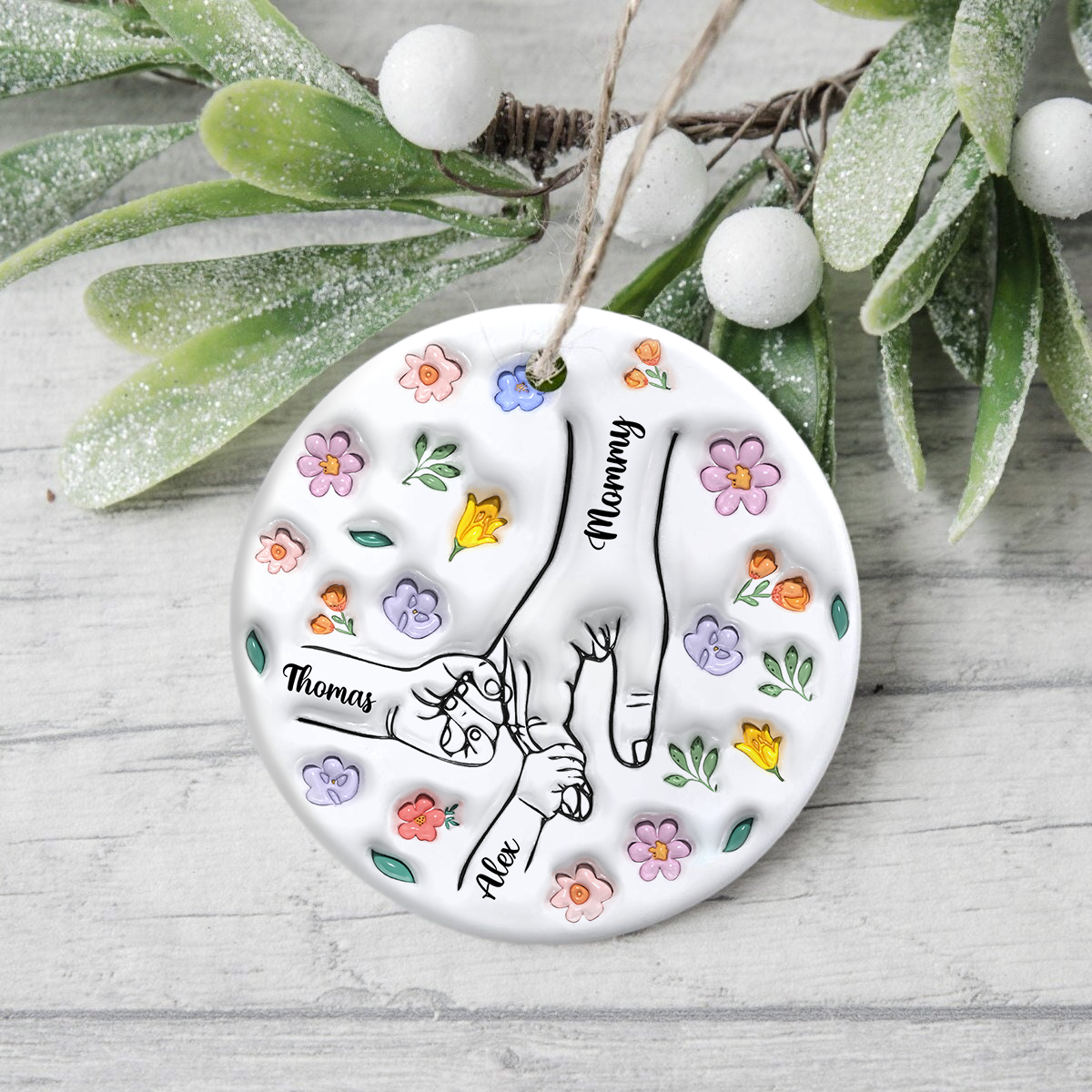 Holding Hand Family - Personalized Custom Ceramic Ornament 3D Effect