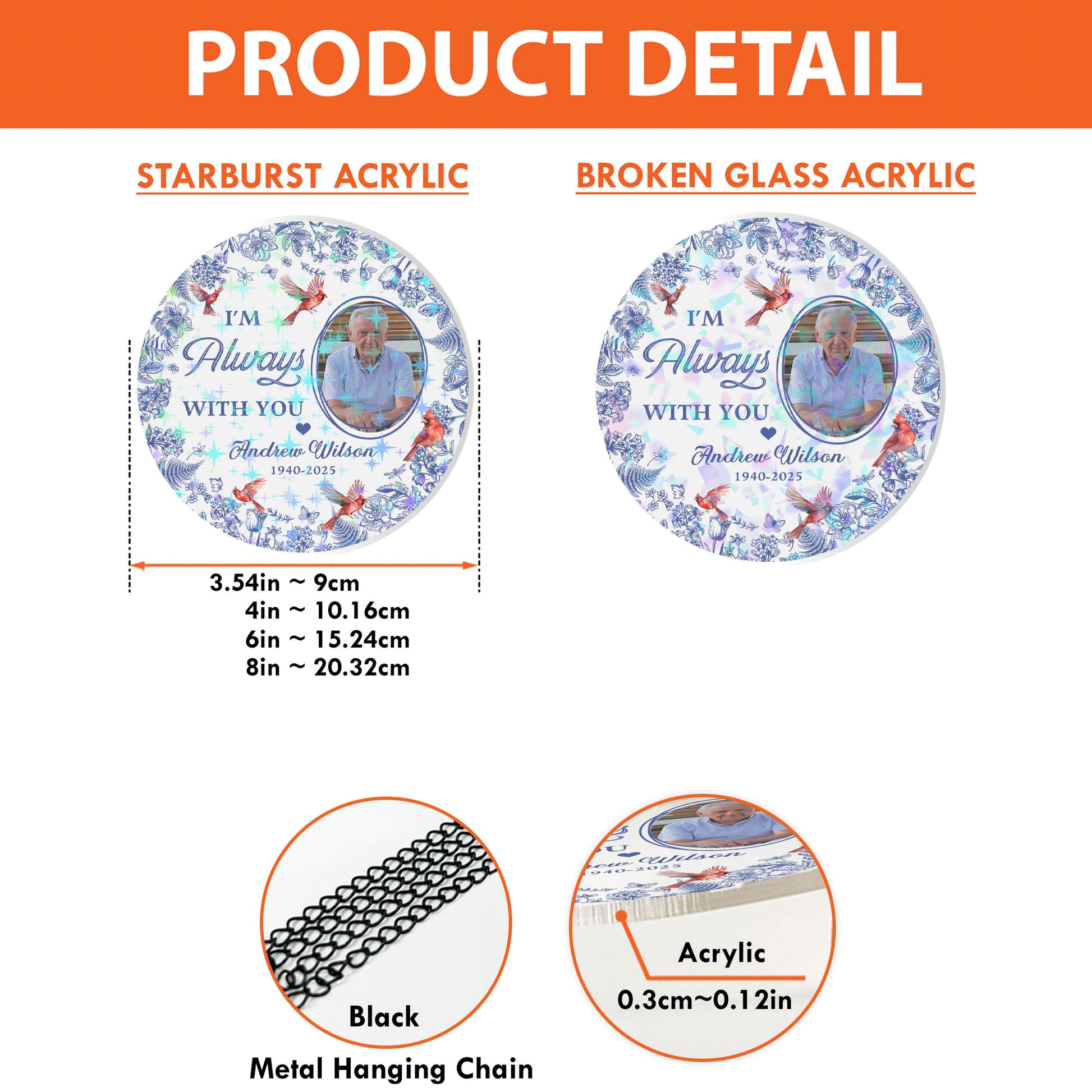 - Two Sizes (3.5in and 6in) : Choose from a variety of sizes to match different display needs. Smaller sizes are perfect for tree decorations, gift tags, or car charms, while larger sizes work beautifully as window hangings, wall art, or statement pieces.