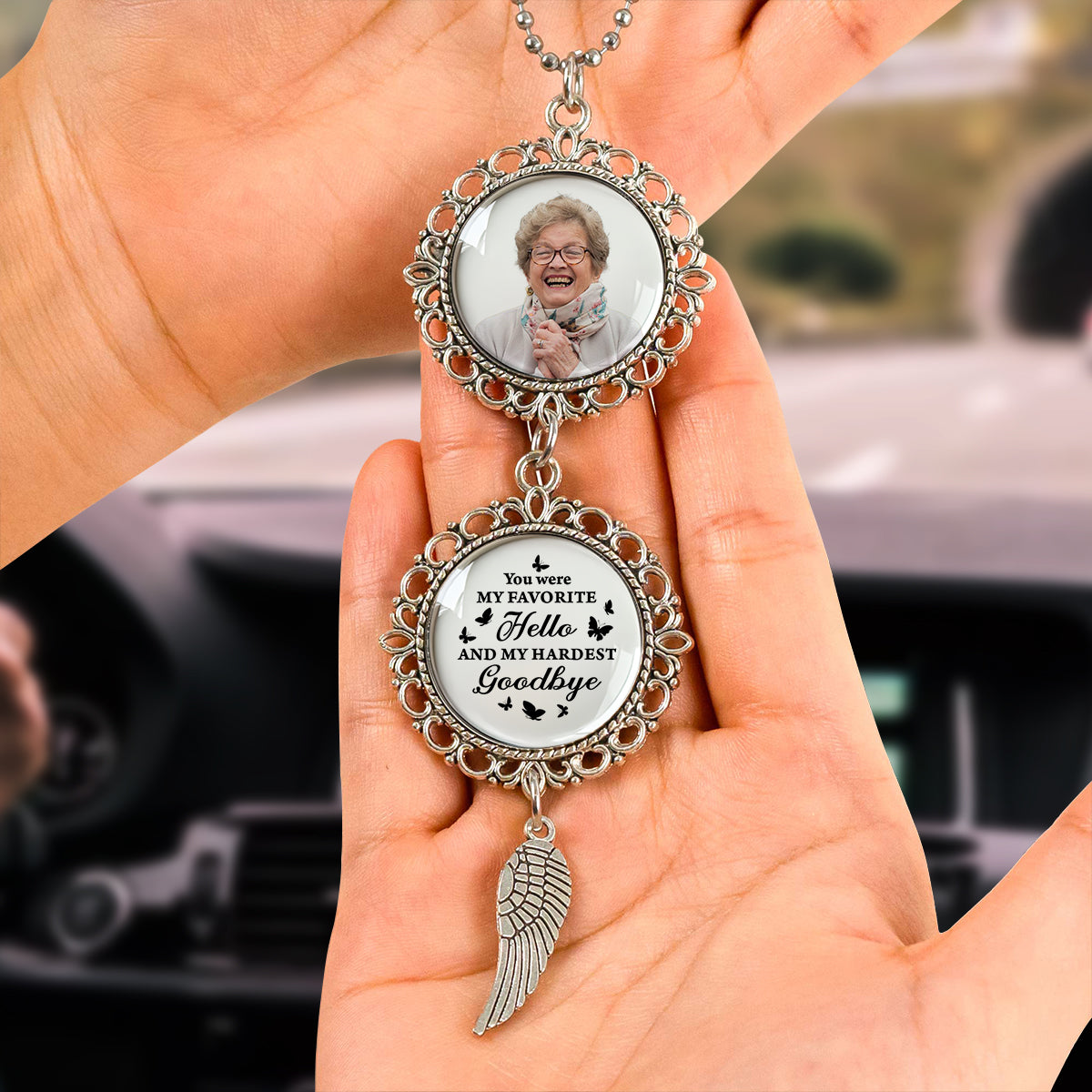 My Favorite Hello - Personalized Photo Car Ornament With Charm