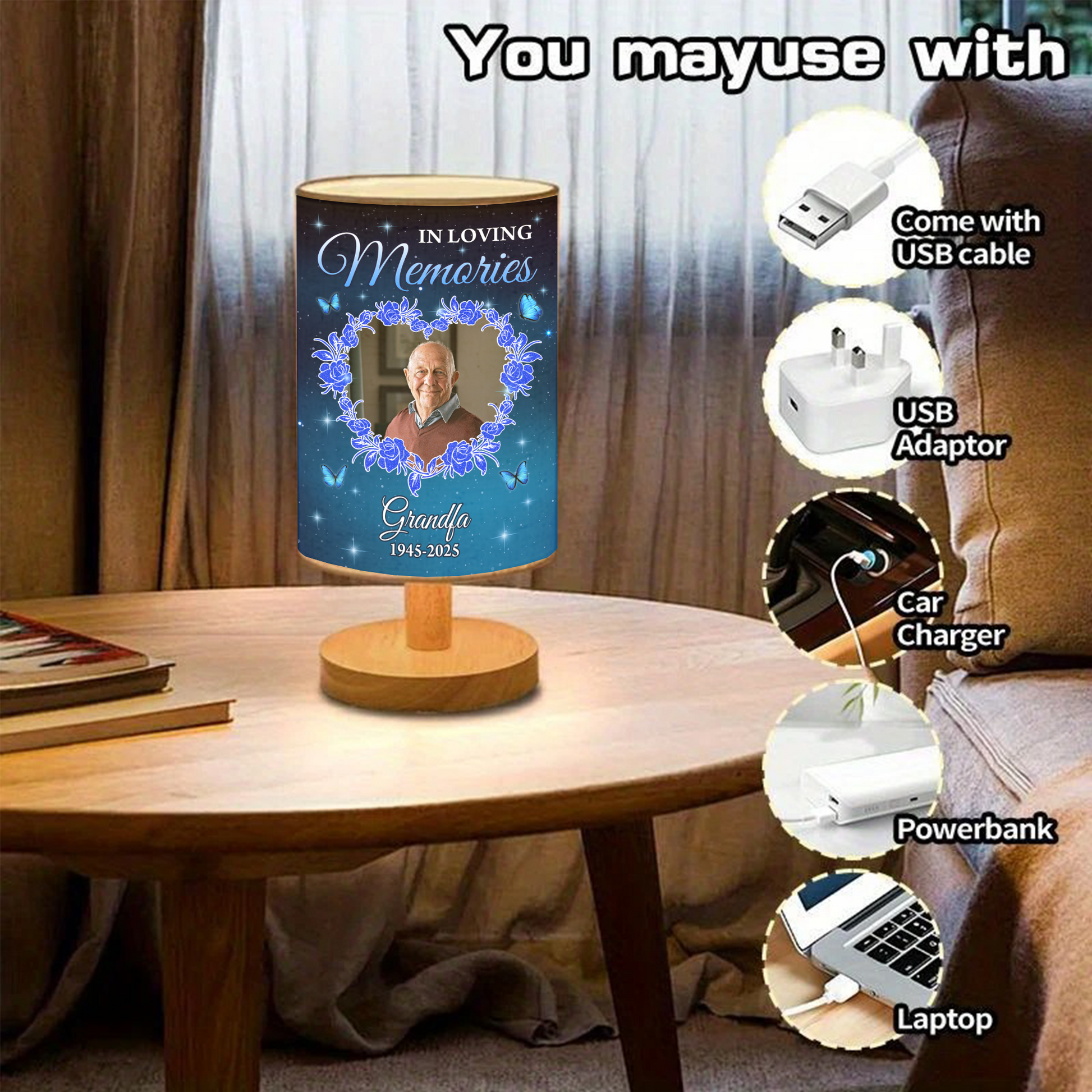 • Package includes: 01 fabric lamp x 01 USB Type A (A wall charger is NOT included).