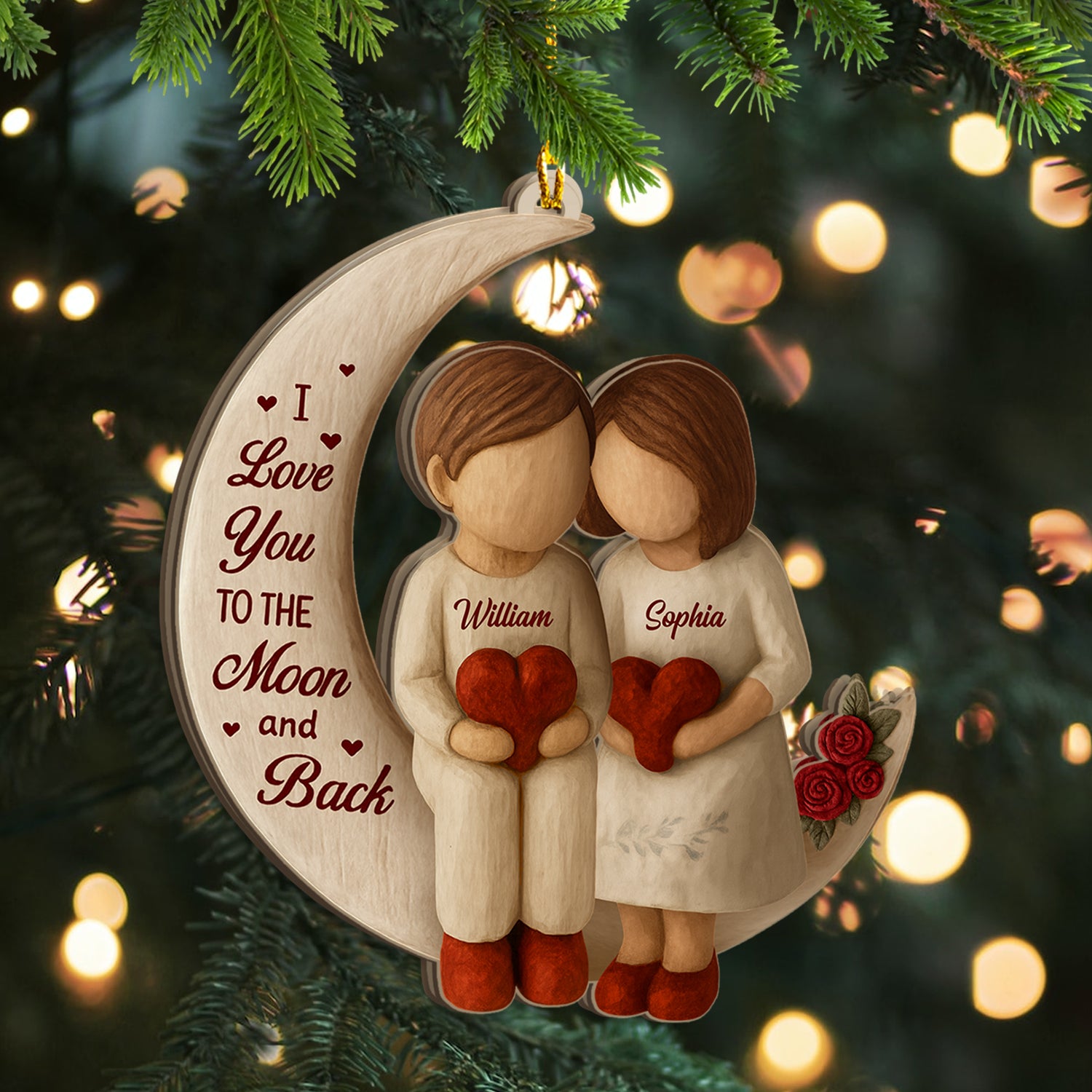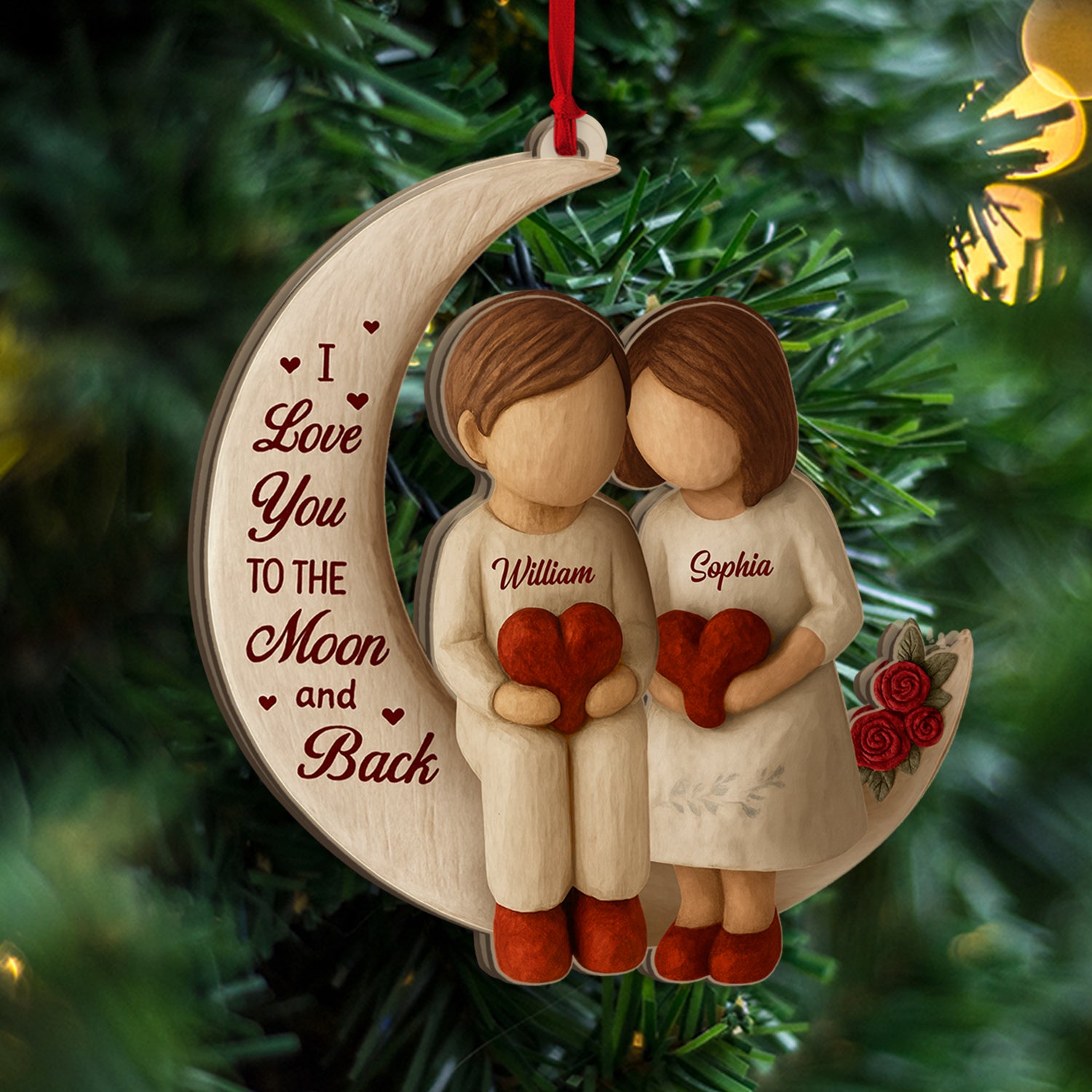 Love You To The Moon and Back Christmas Ornament - Personalized Acrylic Ornament