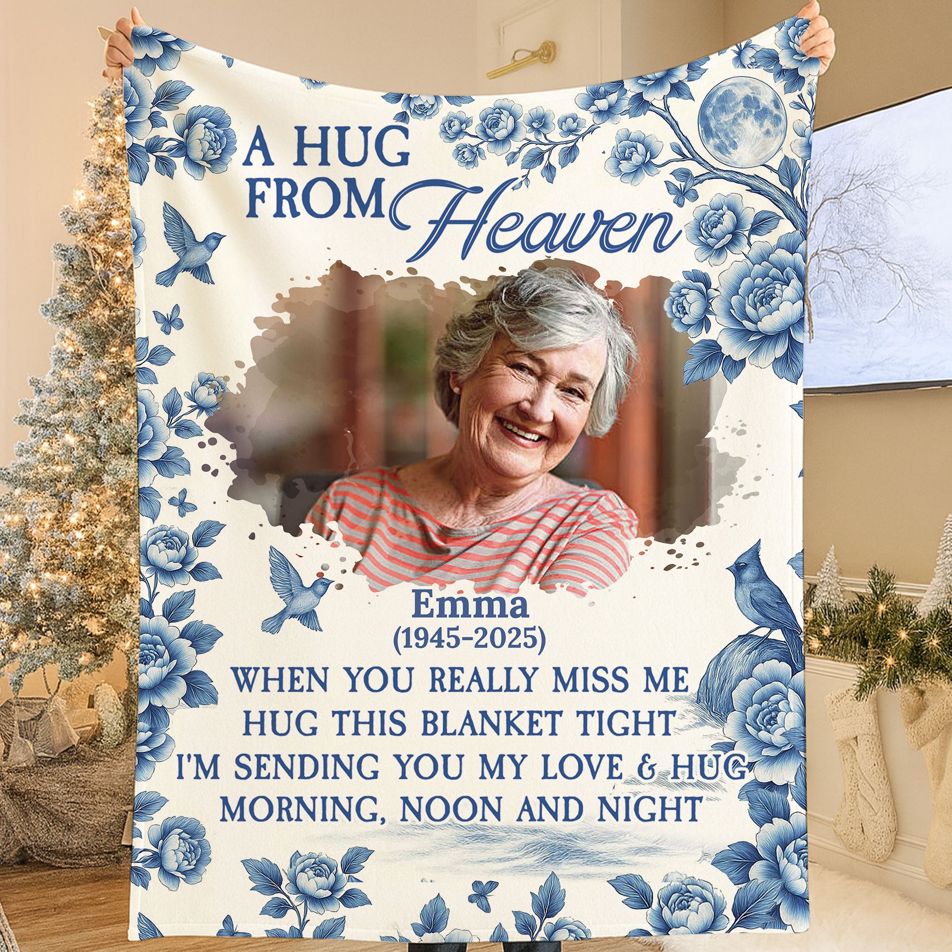 Memorial Blue Flowers - Memorial Personalized Custom Blanket - Sympathy Gift