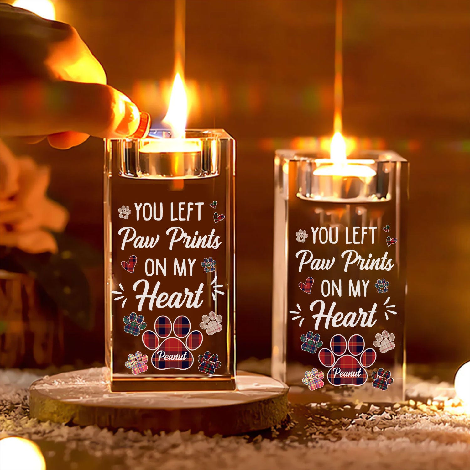 Memorial Dog Cat You Left Paw Prints On My Heart - Personalized Crystal Candle Holder