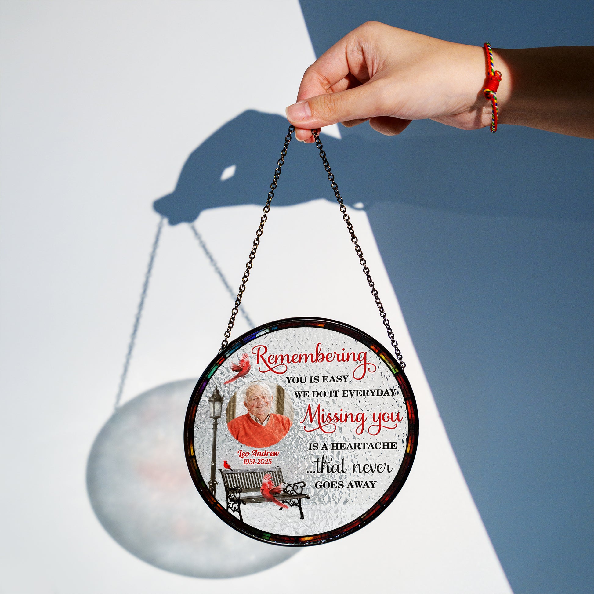 Missing You - Personalized Photo Stained Glass Window Hanging Suncatcher
