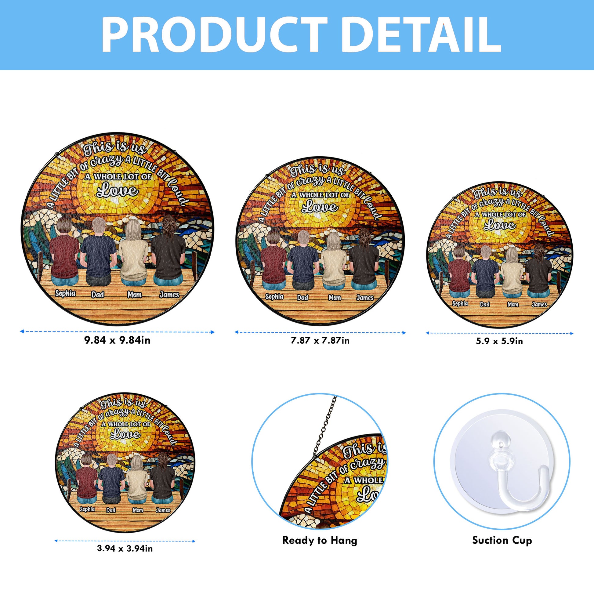 Our Family Glass - Personalized Photo Stained Glass Window Hanging Suncatcher