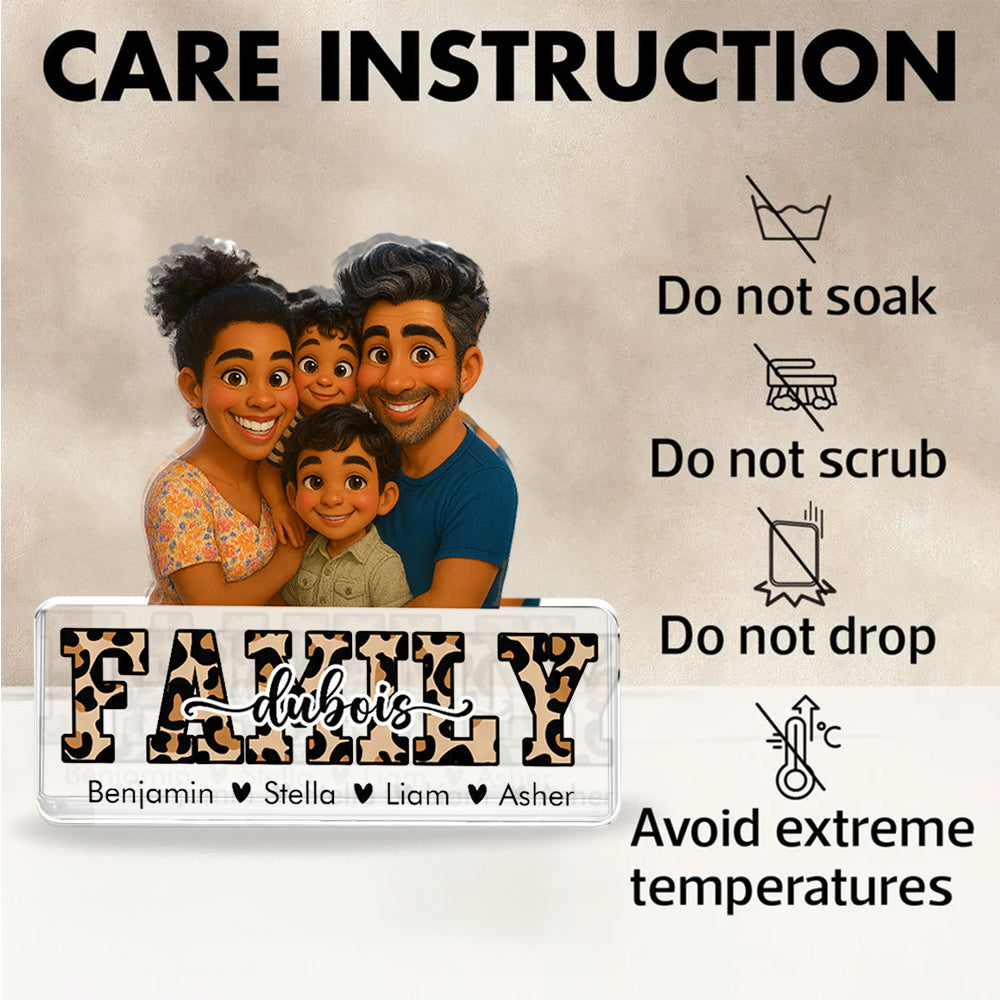Our Family Name Cartoon - Custom Figure Personalized Acrylic Block Plaque