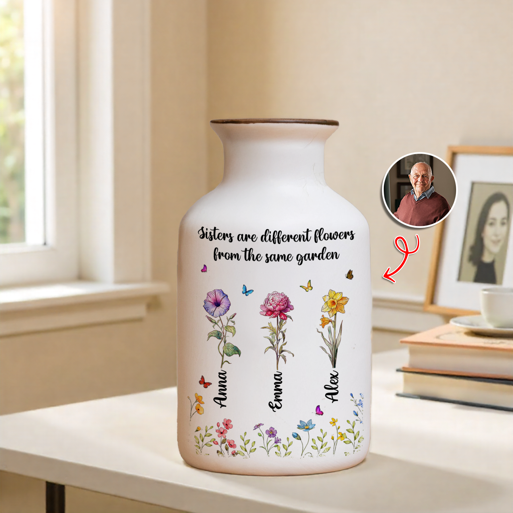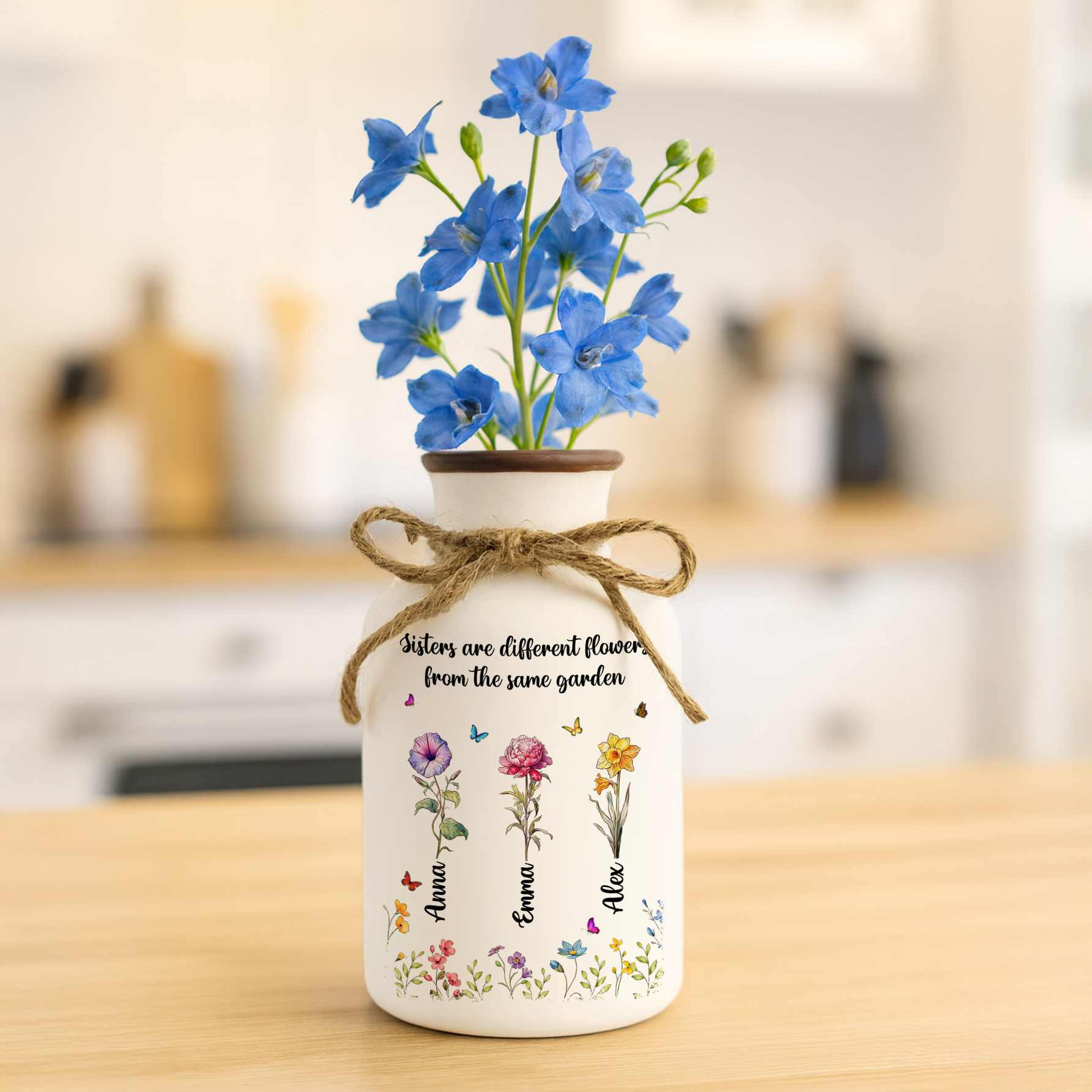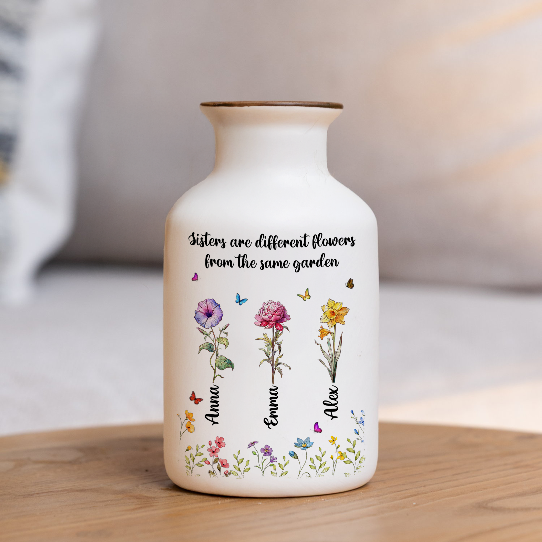 Sisters Garden - Personalized Custom Elegant White Ceramic Flower Vase Minimalist