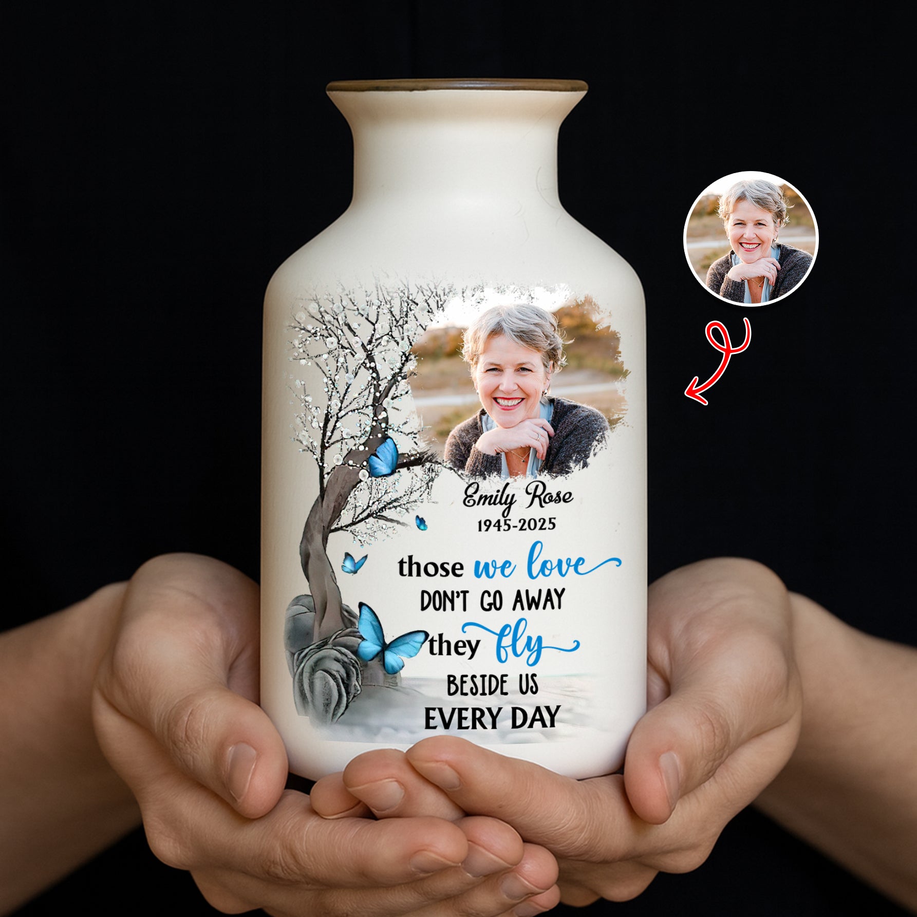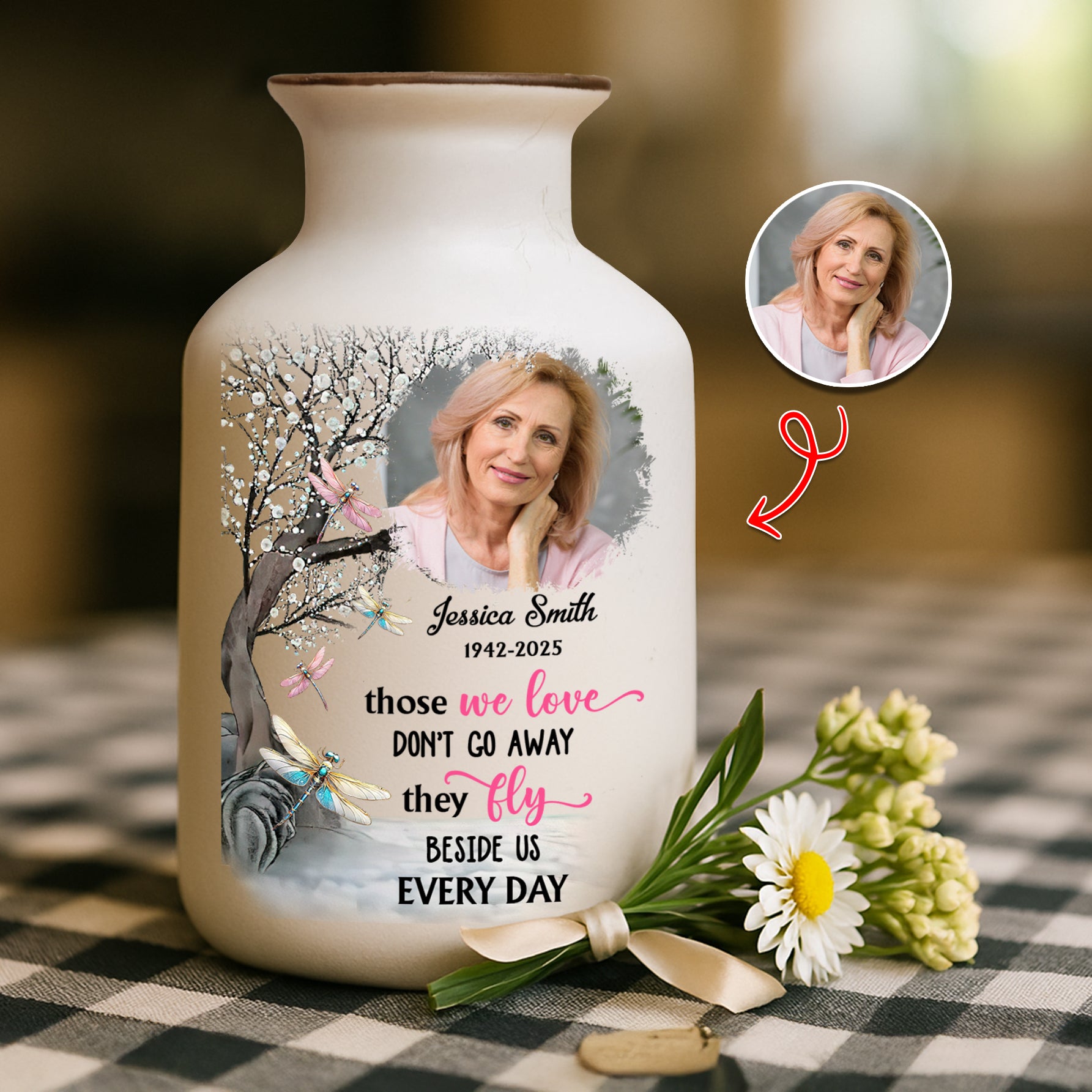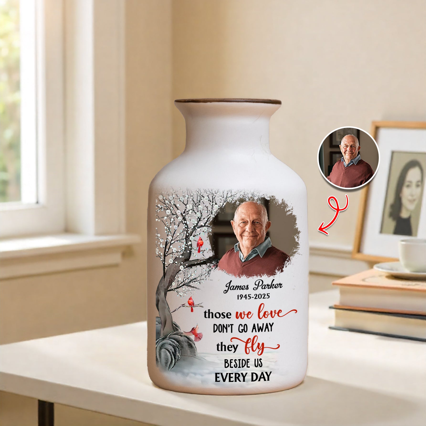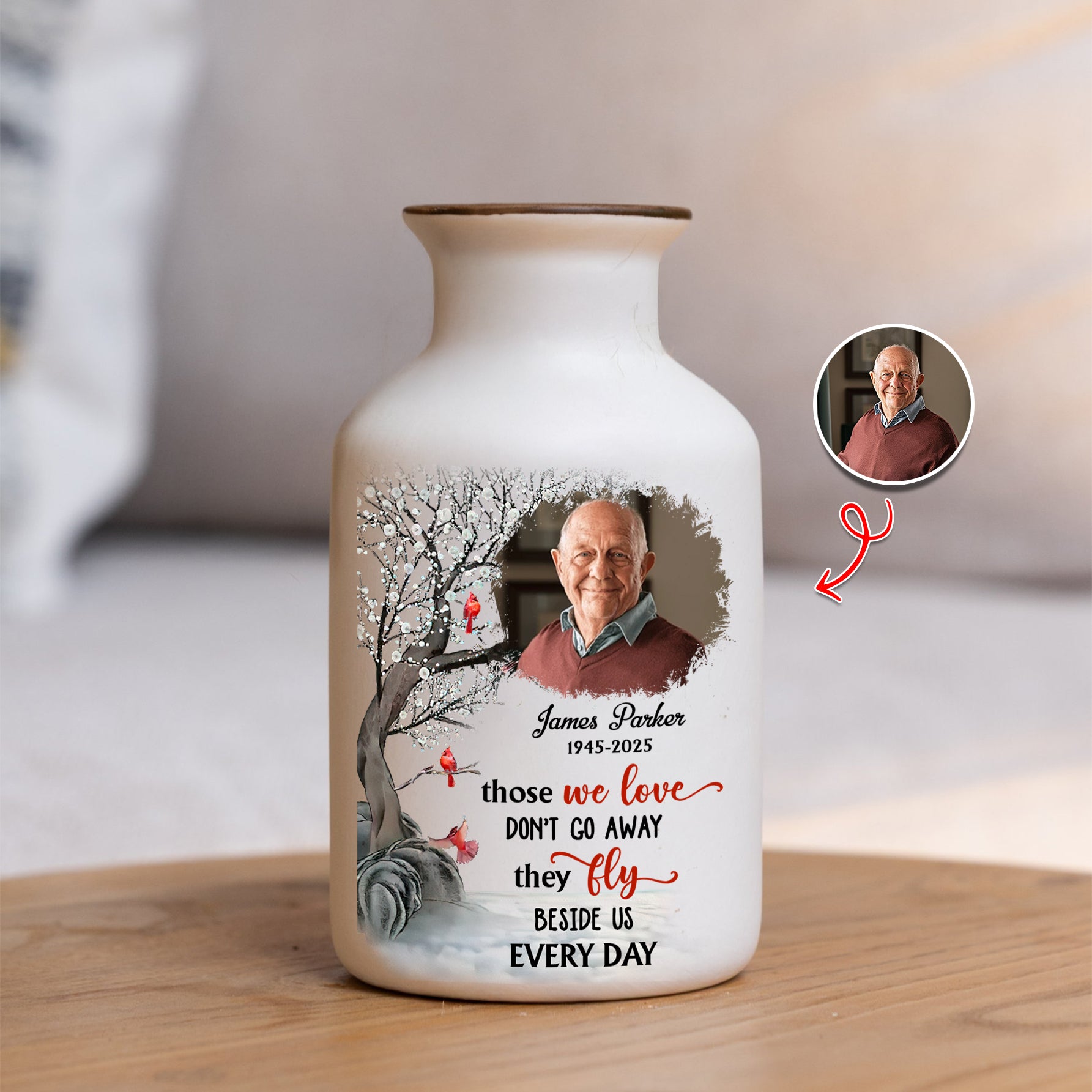 They Fly Beside Us Everyday - Elegant White Ceramic Flower Vase Minimalist