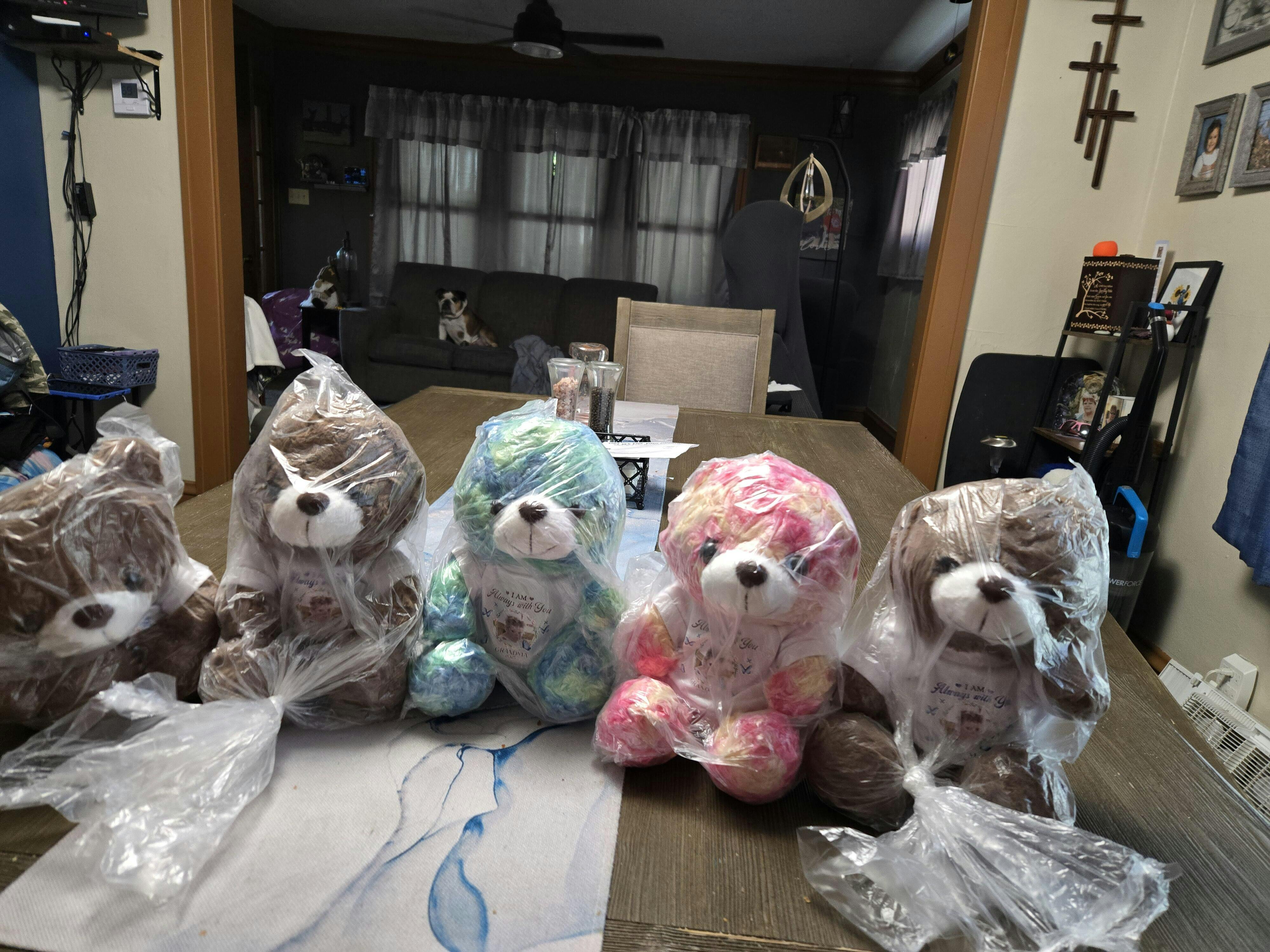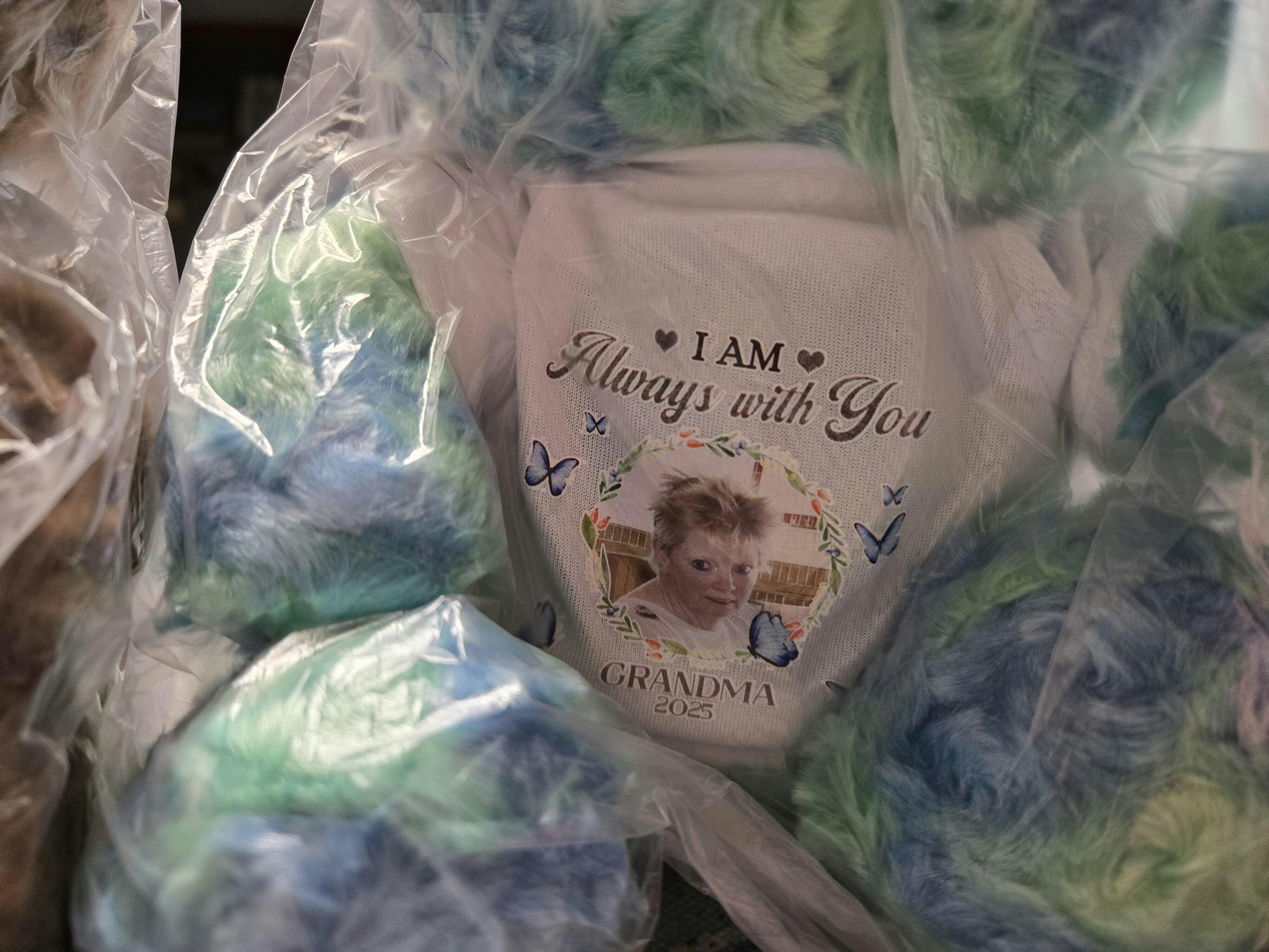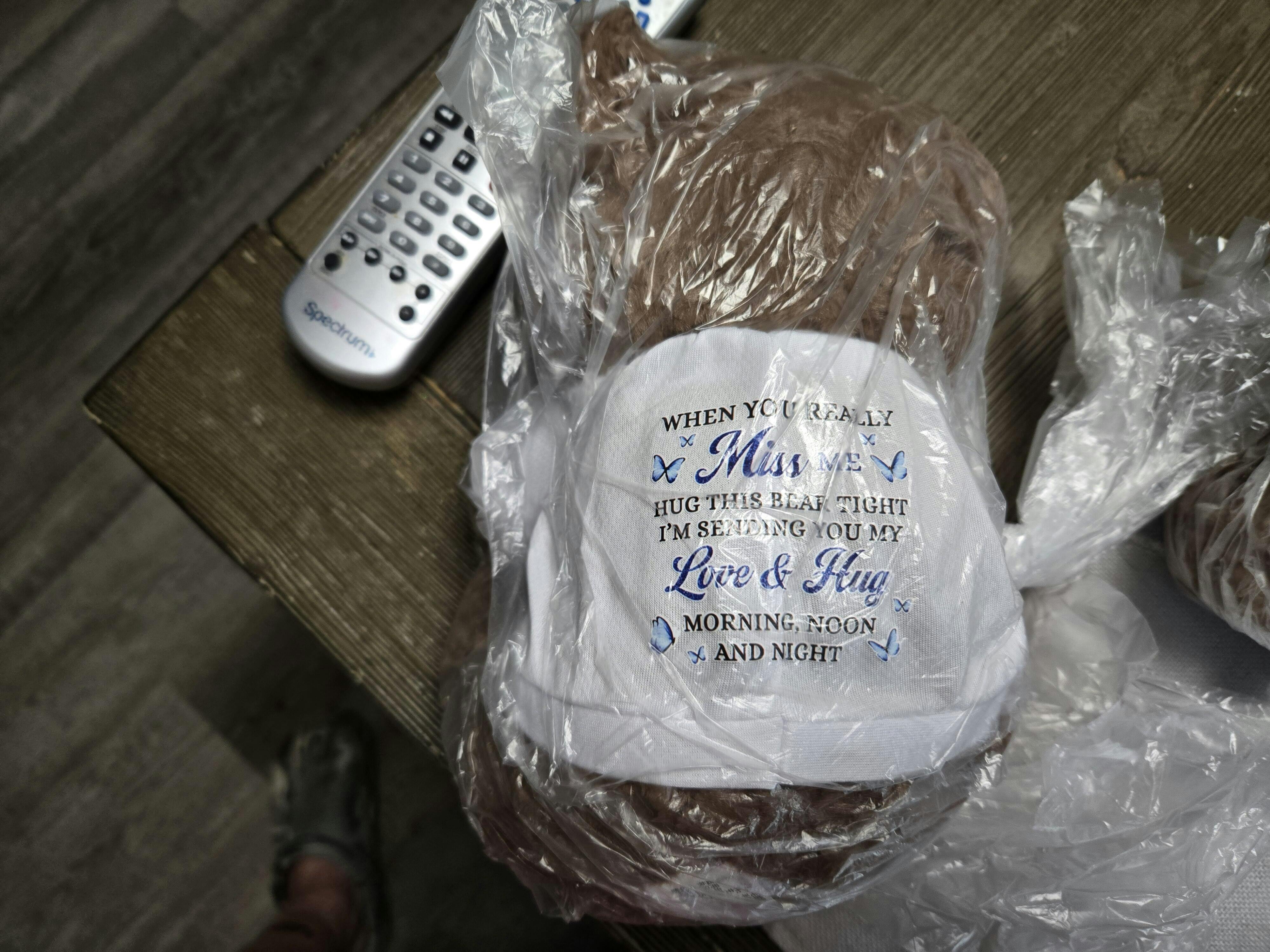This teddy bear is a cozy blend of comfort and sentiment, perfect for snuggles and lasting memories. With its plush softness and personalized T-shirt, this bear is more than just a toy, it is a cherished keepsake full of sentiment