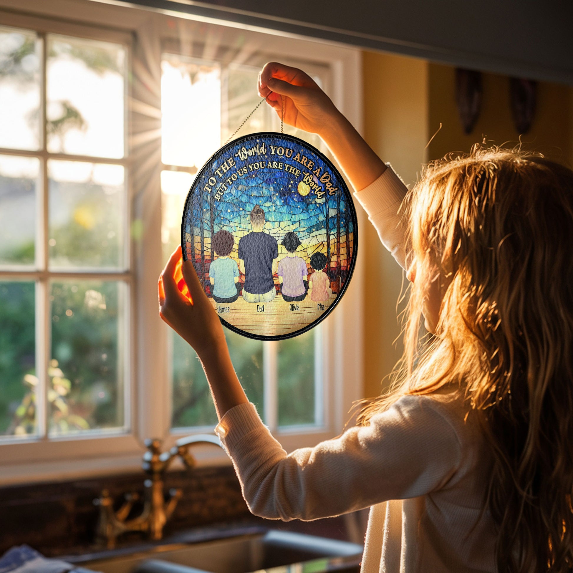 You Are Our World - Personalized Photo Stained Glass Window Hanging Suncatcher
