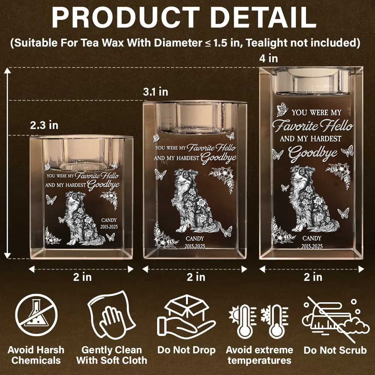 - Care Instructions: Gently clean with a soft, dry cloth to maintain its shine and clarity. Avoid harsh chemicals and abrasive materials.